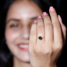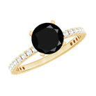 Sweep your one and only off her feet with a Black Diamond Solitaire Engagement Ring that oozes sheer romance. The Single Stone of Round Black Diamond sits majestically at the center on a straight shank that complements its royal allure with a contemporary feel. The sparkly accents of Round Shape Moissanites adorn it on the sides, exuding a one of a kind brilliance. All the gemstone have undergone a strict quality check, so your beloved can treasure this Certified Black Diamond Solitaire Ring for a lifetime.