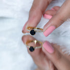 Real Black Diamond Solitaire Engagement Ring with Moissanites