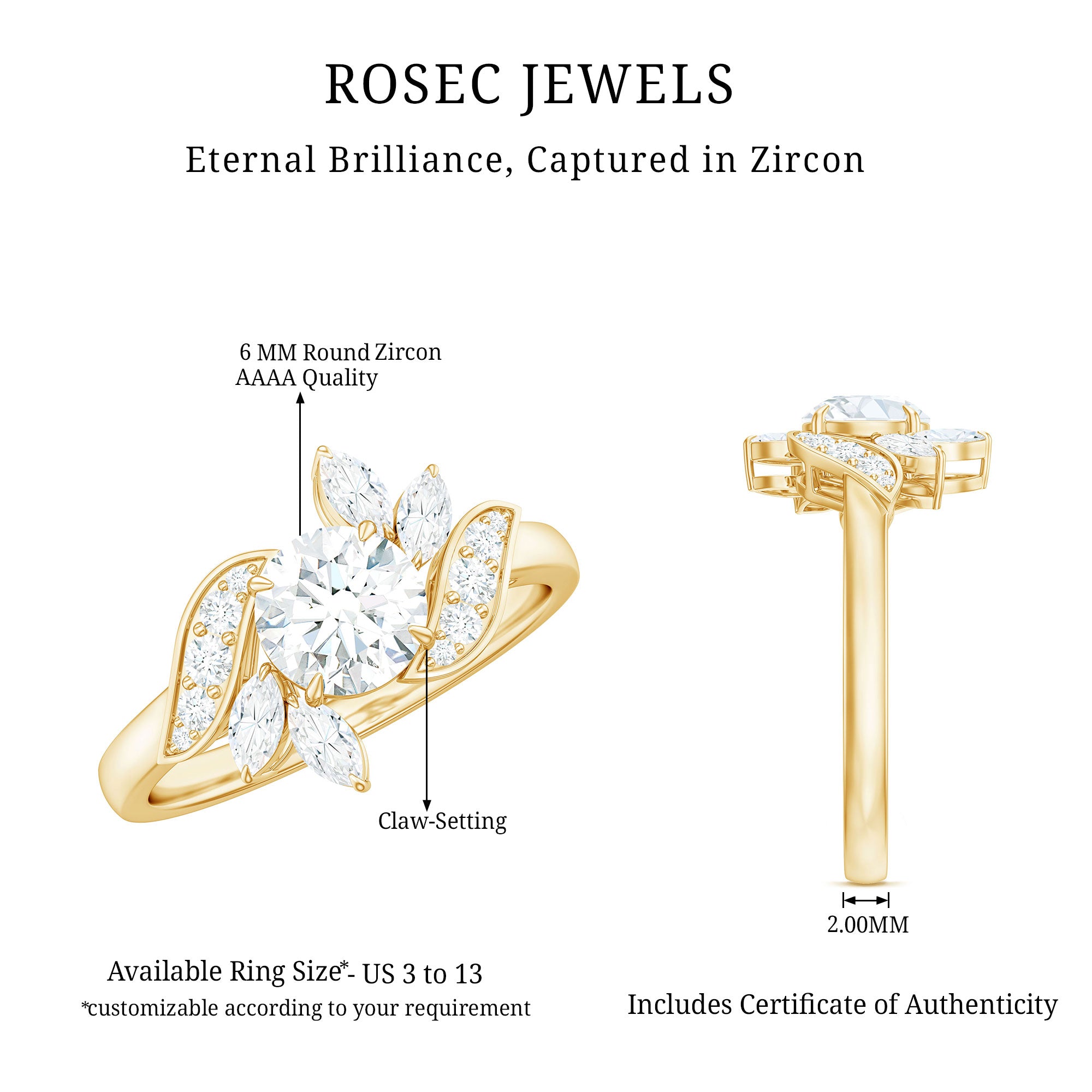 This charming Flower Engagement Ring is expertly crafted from high-quality gold, making it the perfect choice for your beloved. Its centerpiece is a round-cut zircon stone, which is accentuated by smaller round and marquise-cut zircons, arranged in a floral pattern. Made with solid gold, this Zircon Engagement Ring is not only beautiful but also a timeless keepsake.