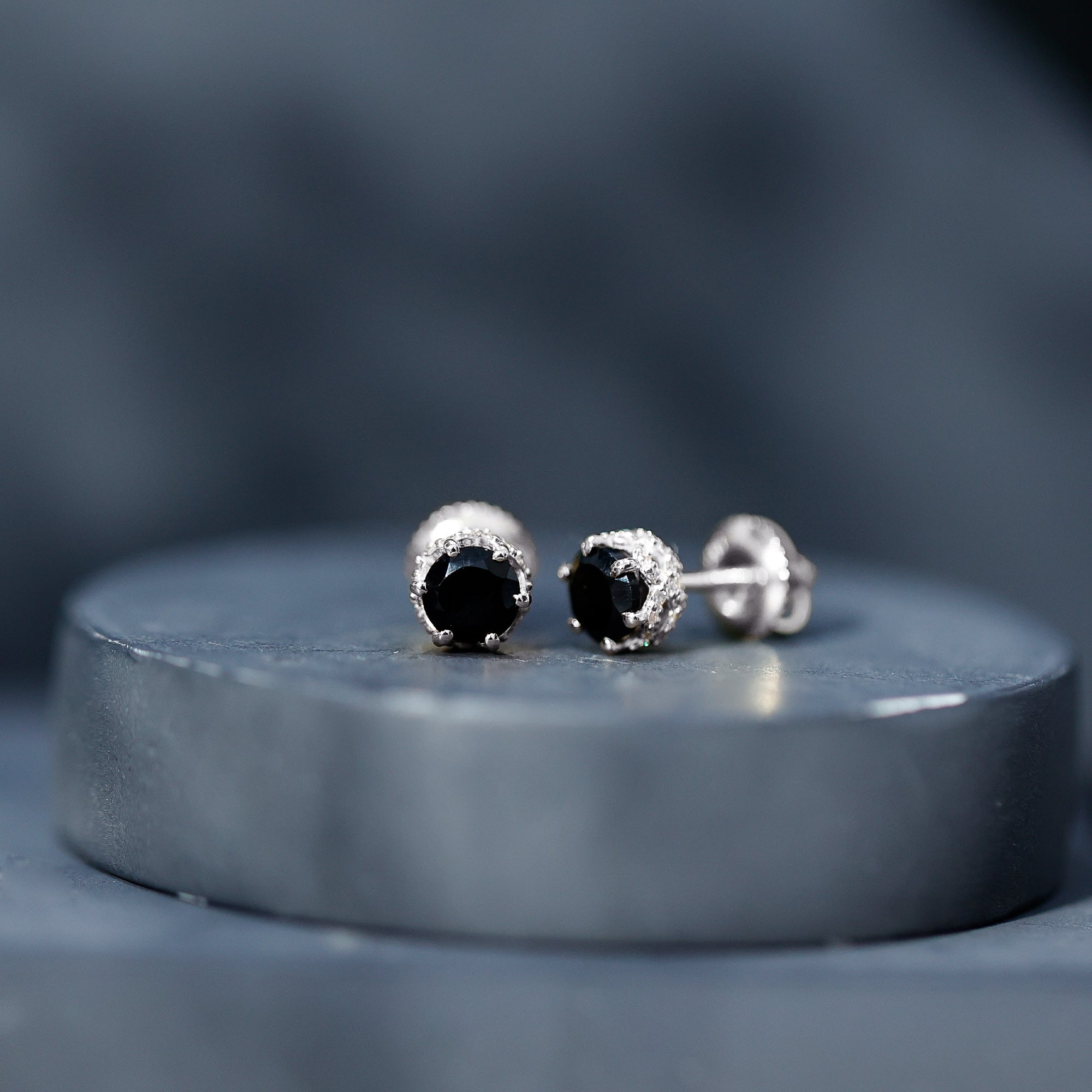 1 Carat Black Spinel Stud Earrings with Diamond Accent