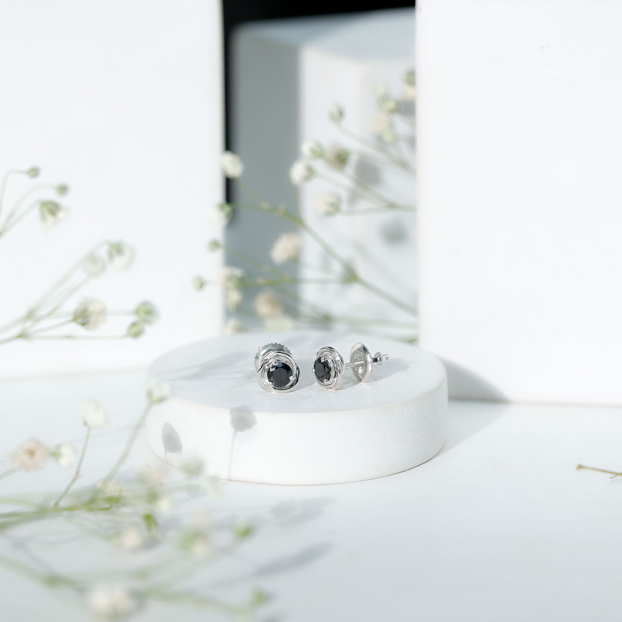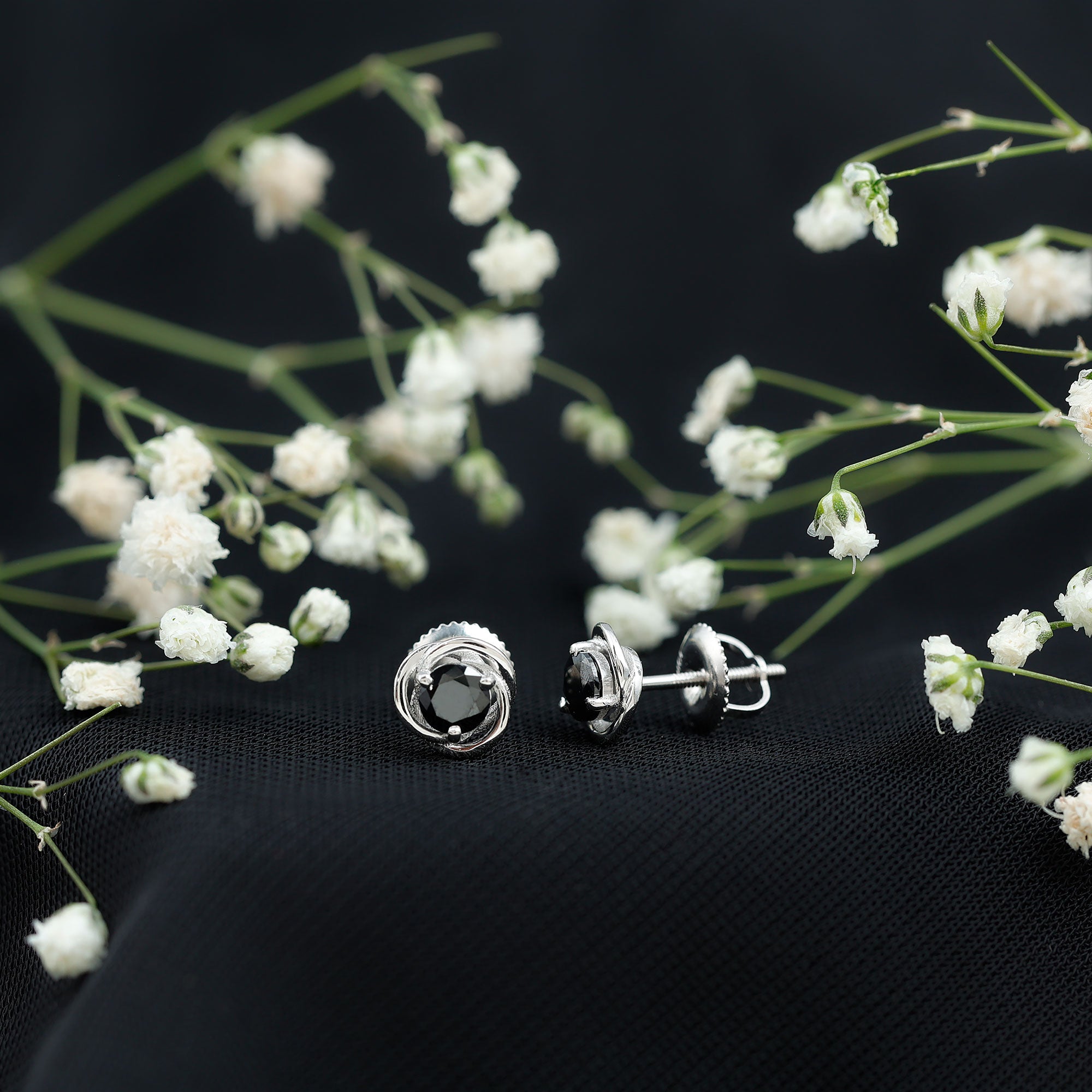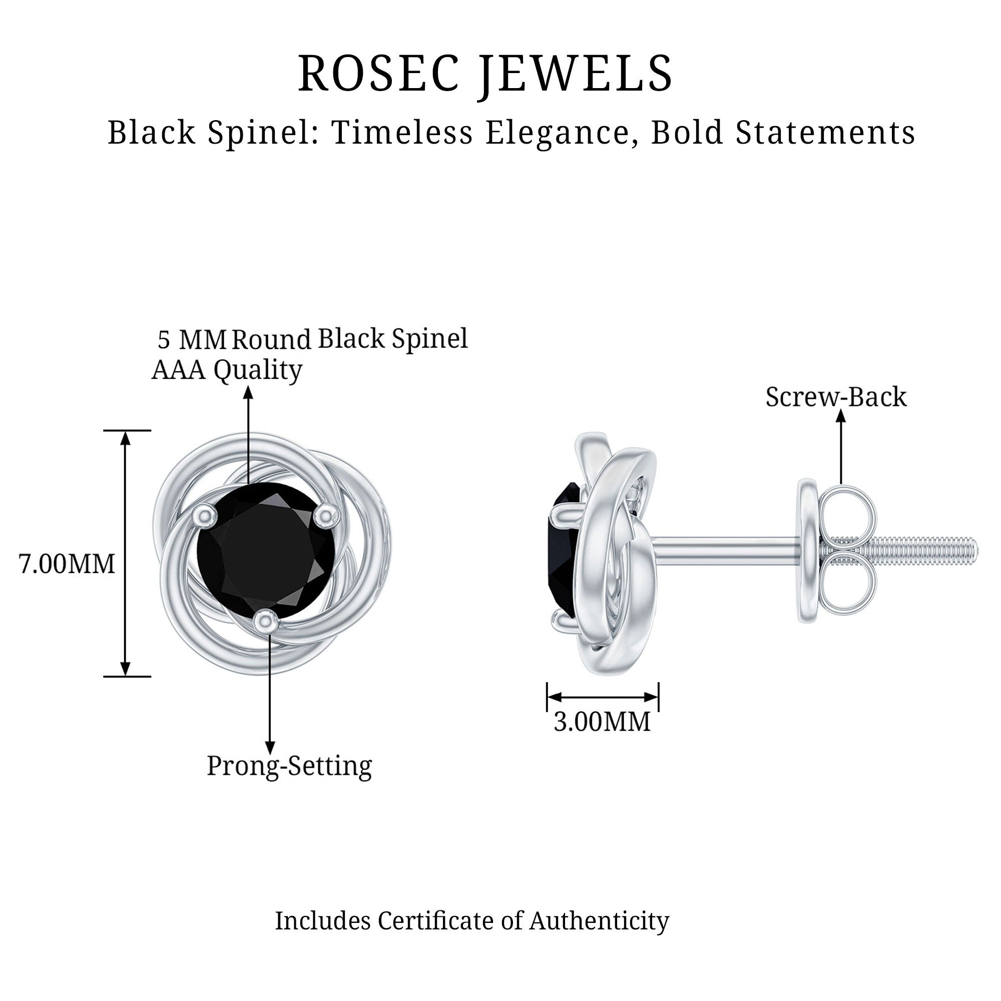 The graceful design and classic style of these Black Spinel Earrings make them a thoughtful choice for gifting on Valentine’s Day or any moment that deserves something memorable. Features a 5 MM round shape black spinel gemstone, placed as a solitaire in secure prong setting. Surrounding the center stone is a swirl pattern crafted in metal, creating a beautiful flow that gives the Black Spinel Stud Earrings a unique and elegant appearance. Crafted with solid metal, the Solitaire Stud Earrings are made with care and attention to detail. The sturdy construction ensures durability, allowing them to remain a treasured part of any jewelry collection for years. Comfort and security are also an important part of the design. The earrings come with a screw back closure that helps keep them firmly in place while providing a comfortable fit on the earlobe. This secure closure allows you to wear them with confidence throughout the day. With their graceful swirl pattern, classic gemstone centerpiece, and comfortable design, these Swirl Earrings offer a charming blend of style and sentiment for anyone who appreciates elegant jewelry.