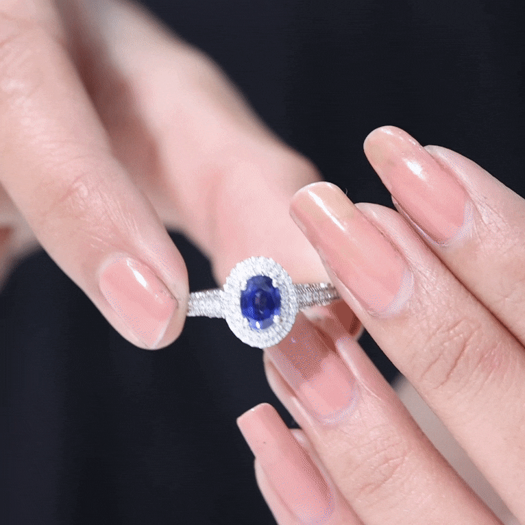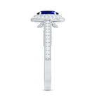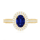 1 Carat Oval Lab Grown Blue Sapphire Diamond Vintage Engagement Ring with Double Halo
