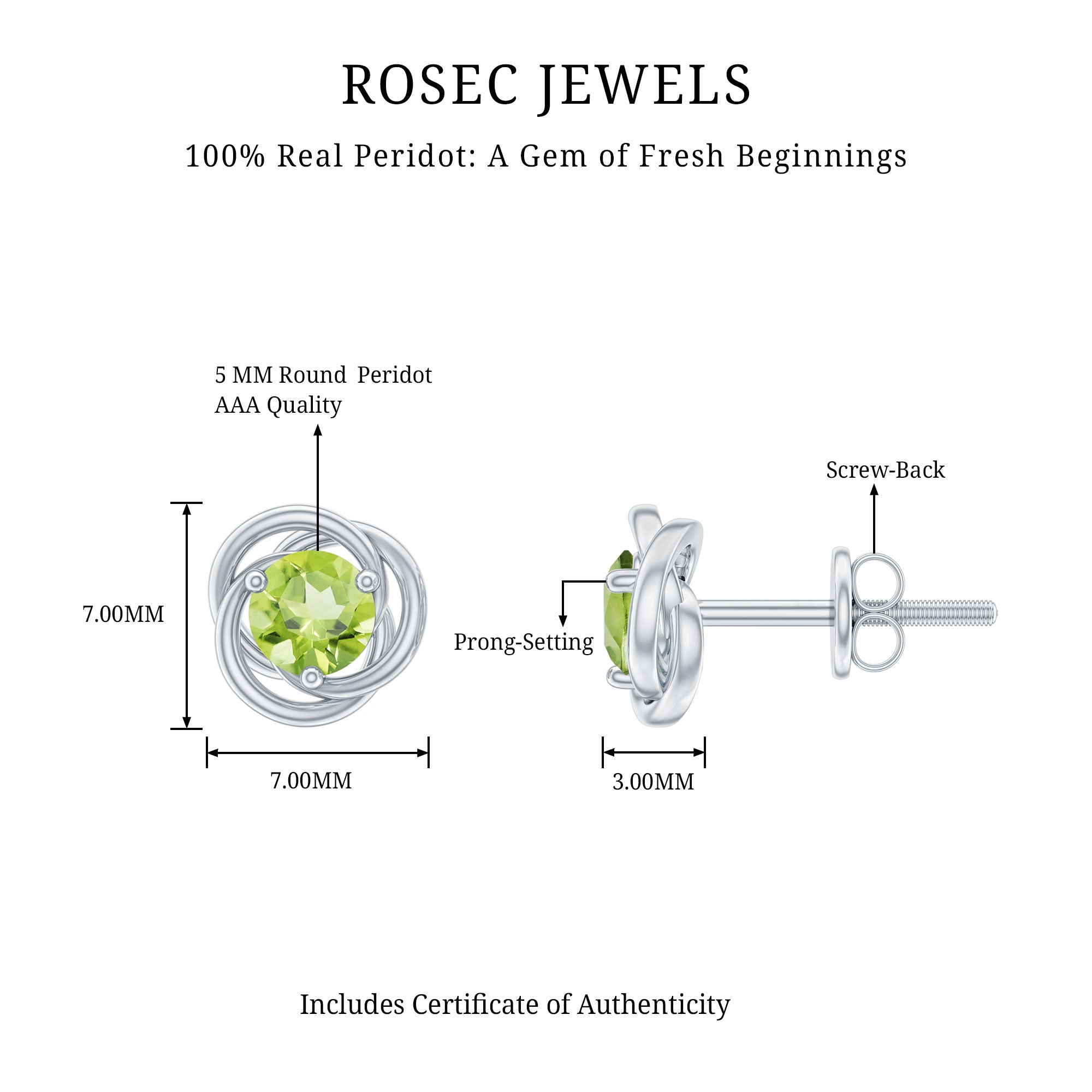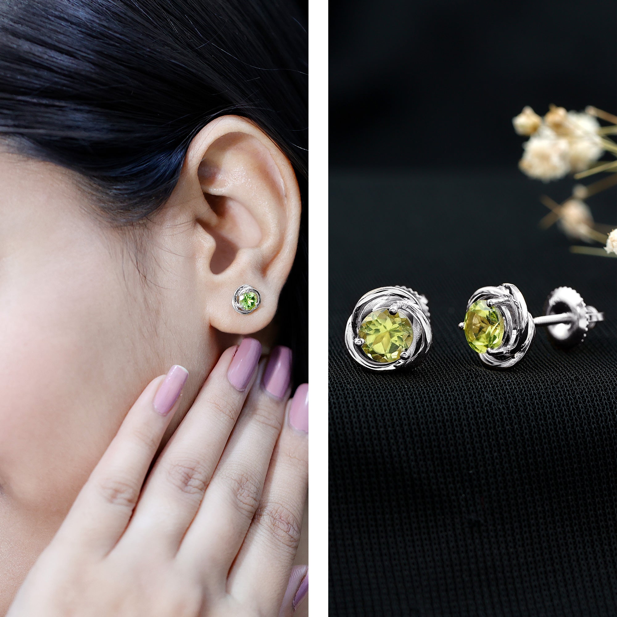Brighten up your everyday style with these stunning Peridot Stud Earrings that add a fresh pop of color and effortless charm. Each earring features a round cut peridot secured in a prong setting, showing off the gemstone’s lively green hue and natural sparkle. Known as the August birthstone, this AAA quality peridot is loved for its cheerful tone and timeless appeal, making these Solitaire Studs extra special for those born in that month. What makes these August Birthstone Earrings stand out is the elegant swirl design that frames the peridot beautifully. The gentle curves add movement and character, giving the studs a stylish twist while keeping them easy to wear. Whether you are heading to work, running errands, or dressing up for a casual evening out, these Peridot Earrings fit right in and add just the right touch of sparkle. Crafted for comfort and everyday wear, the earrings feature secure screw back closures that keep them safely in place all day long. Thoughtfully designed and full of personality, these earrings are a lovely way to treat yourself or surprise someone special.
