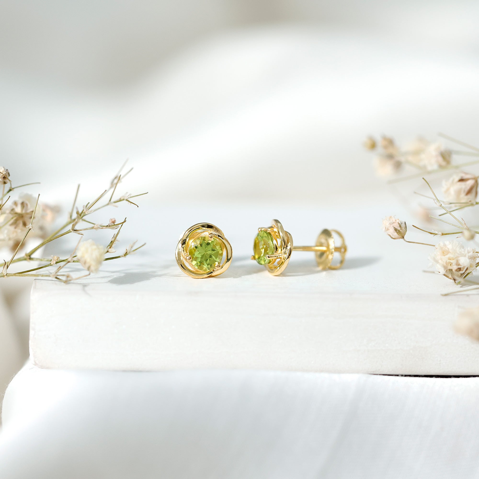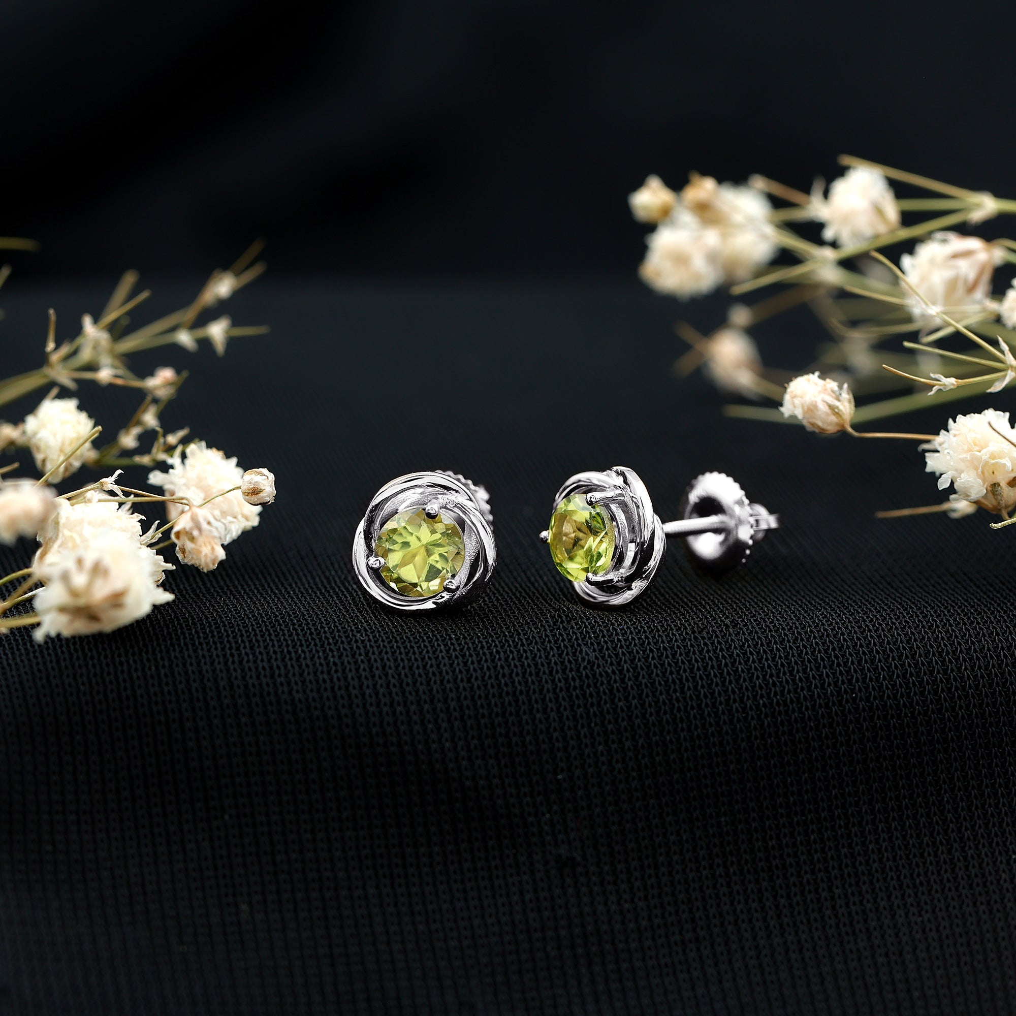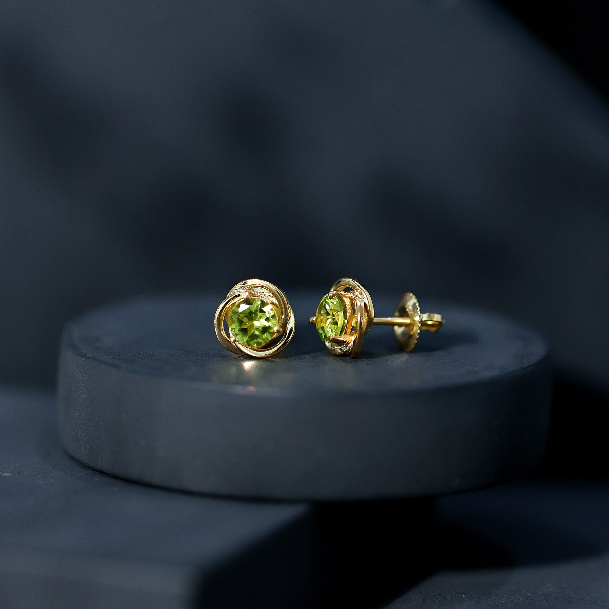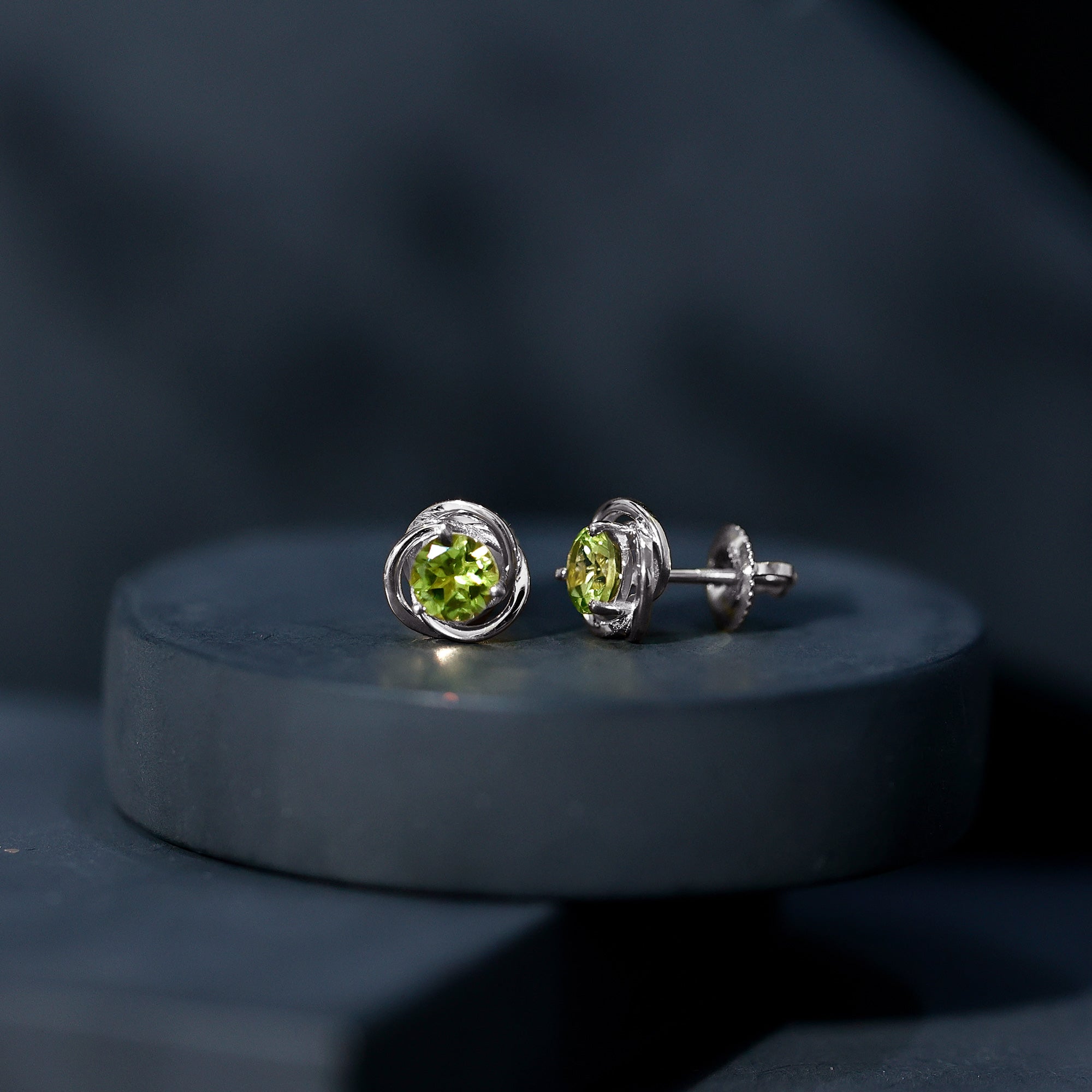 1 Carat Round Cut Peridot Swirl Stud Earrings