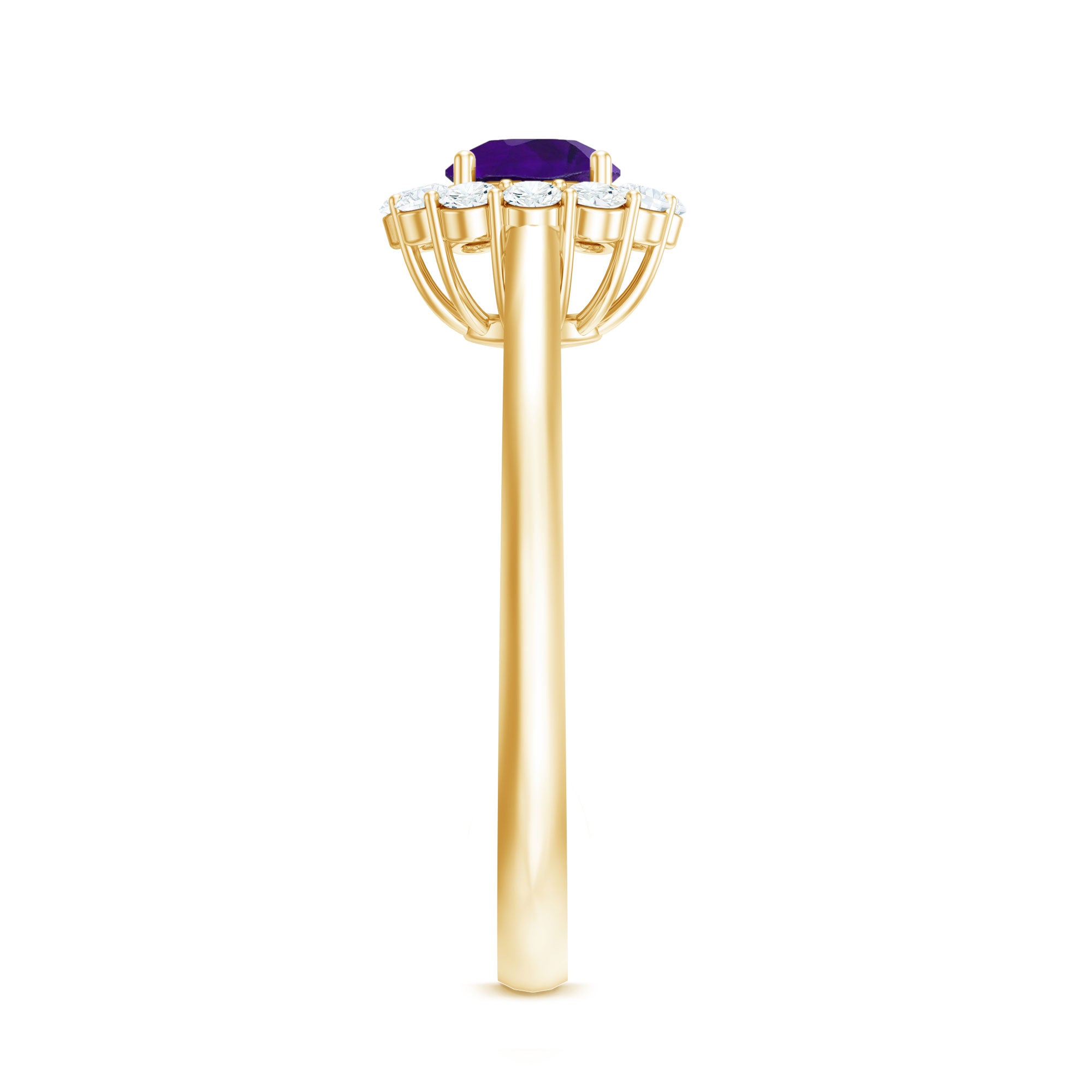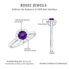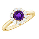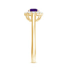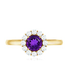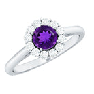 Enhance your beauty with Floating Halo Engagement Ring is embellished with Round Shape Amethyst Set as a solitaire in a prong setting and Round Shape Diamond in a floating Halo. This Engagement Ring is composed of solid gold.