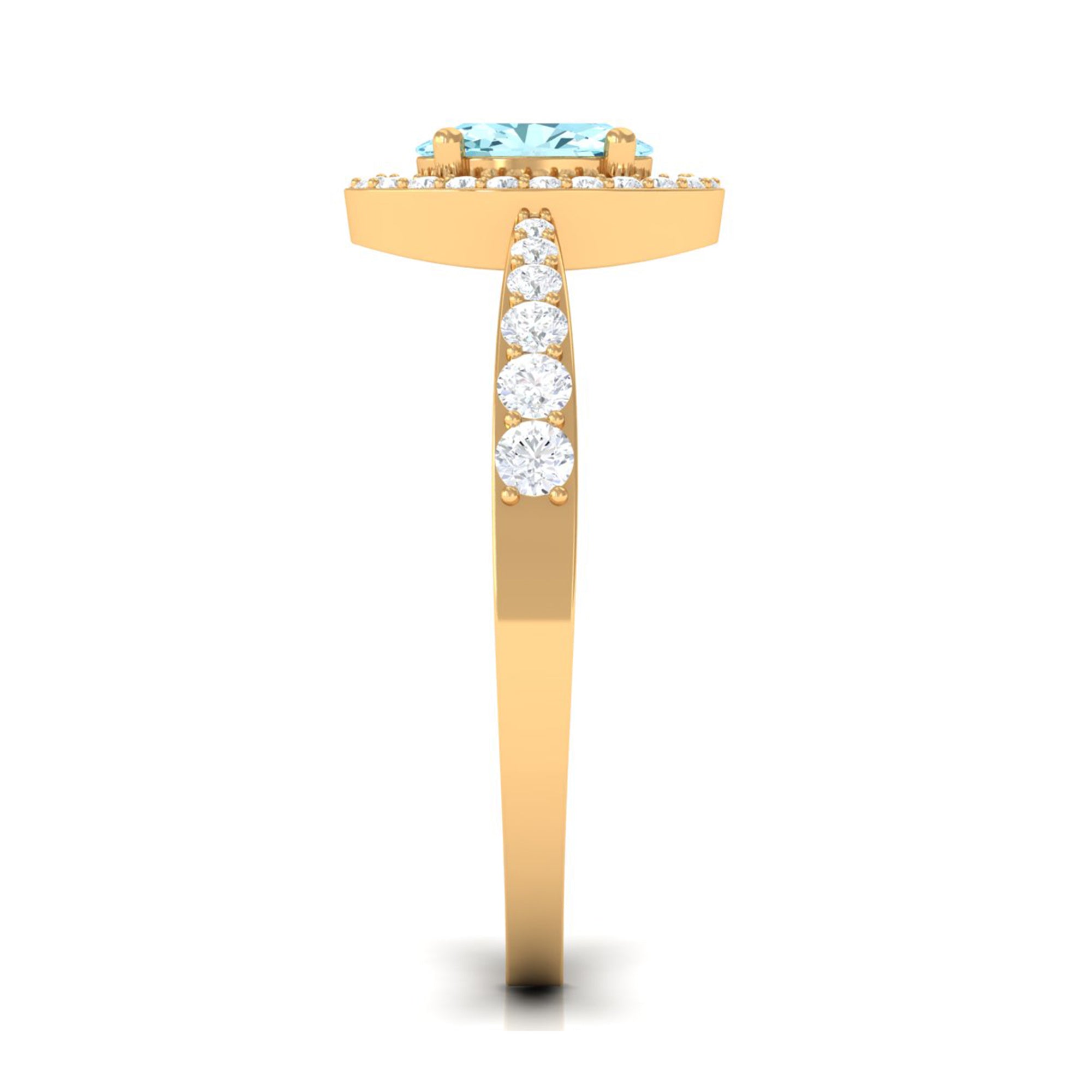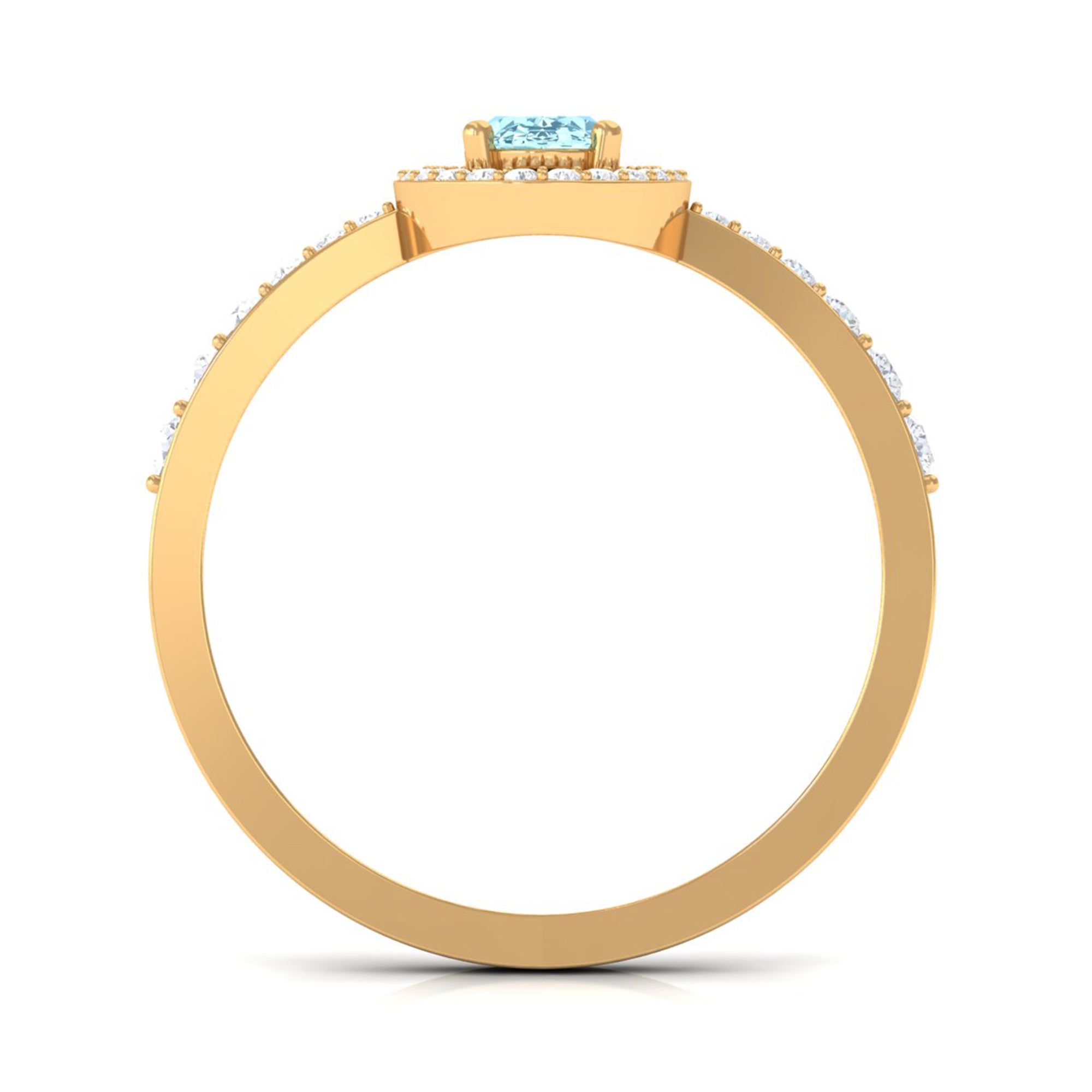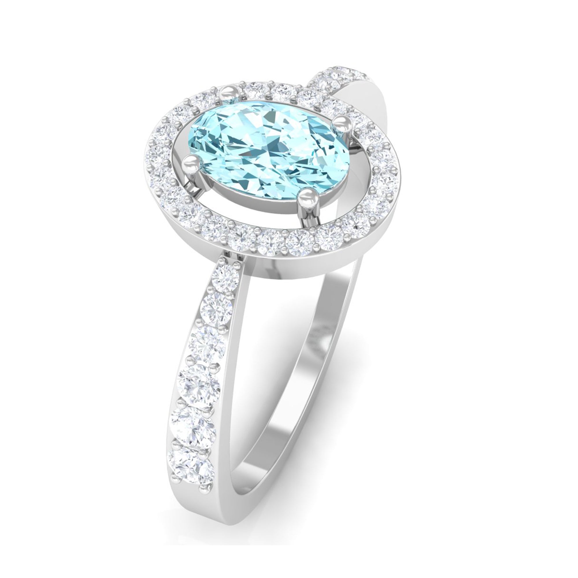 1 CT Aquamarine Engagement Ring with Diamond Halo