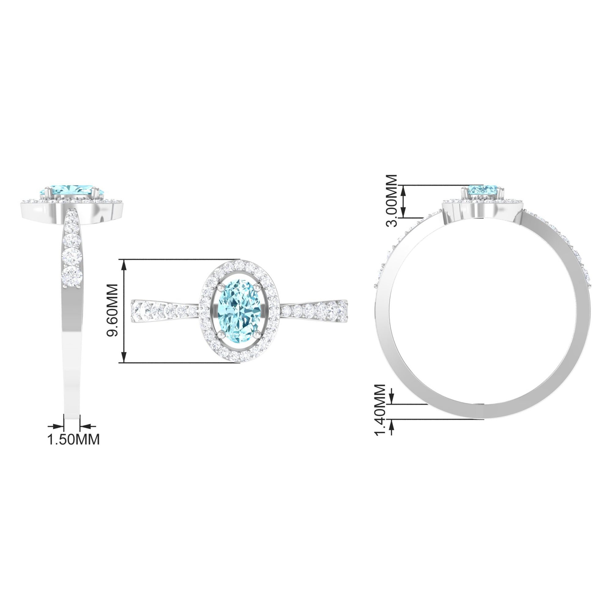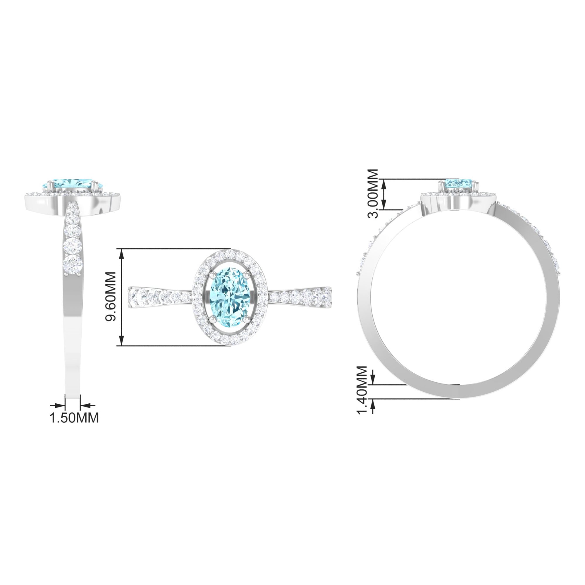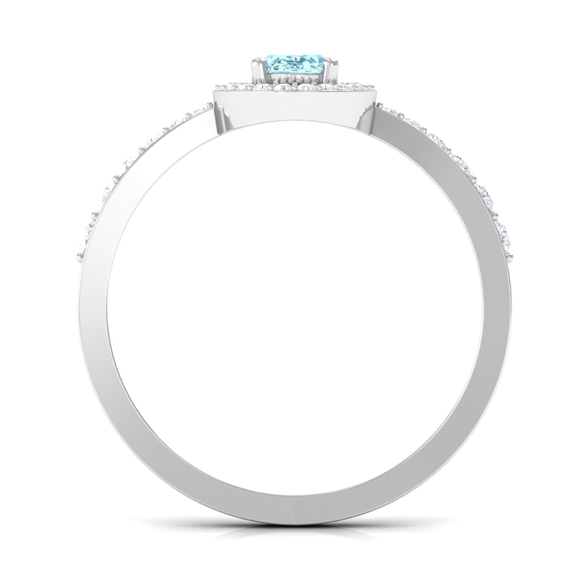 1 CT Aquamarine Engagement Ring with Diamond Halo