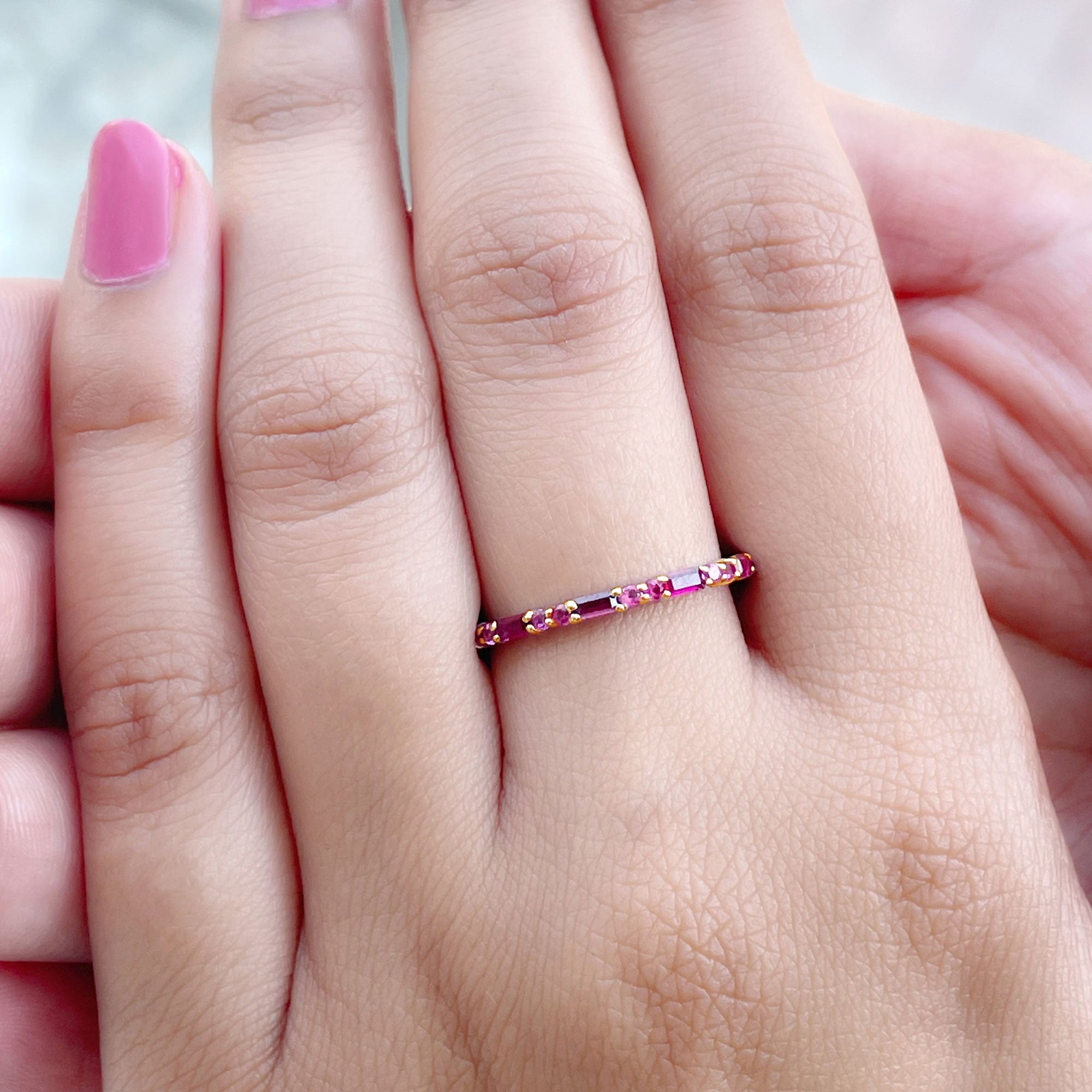 1 CT Baguette and Round Created Ruby Full Eternity Ring