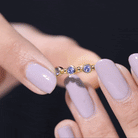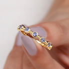 1 CT Bezel Set Tanzanite Half Eternity Ring with Gold Beaded