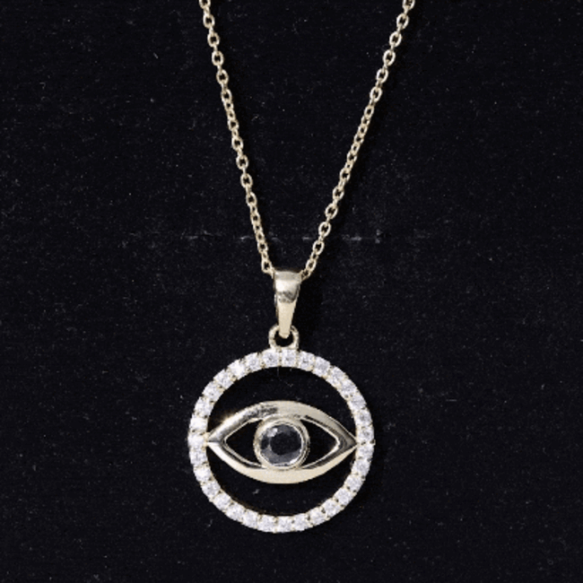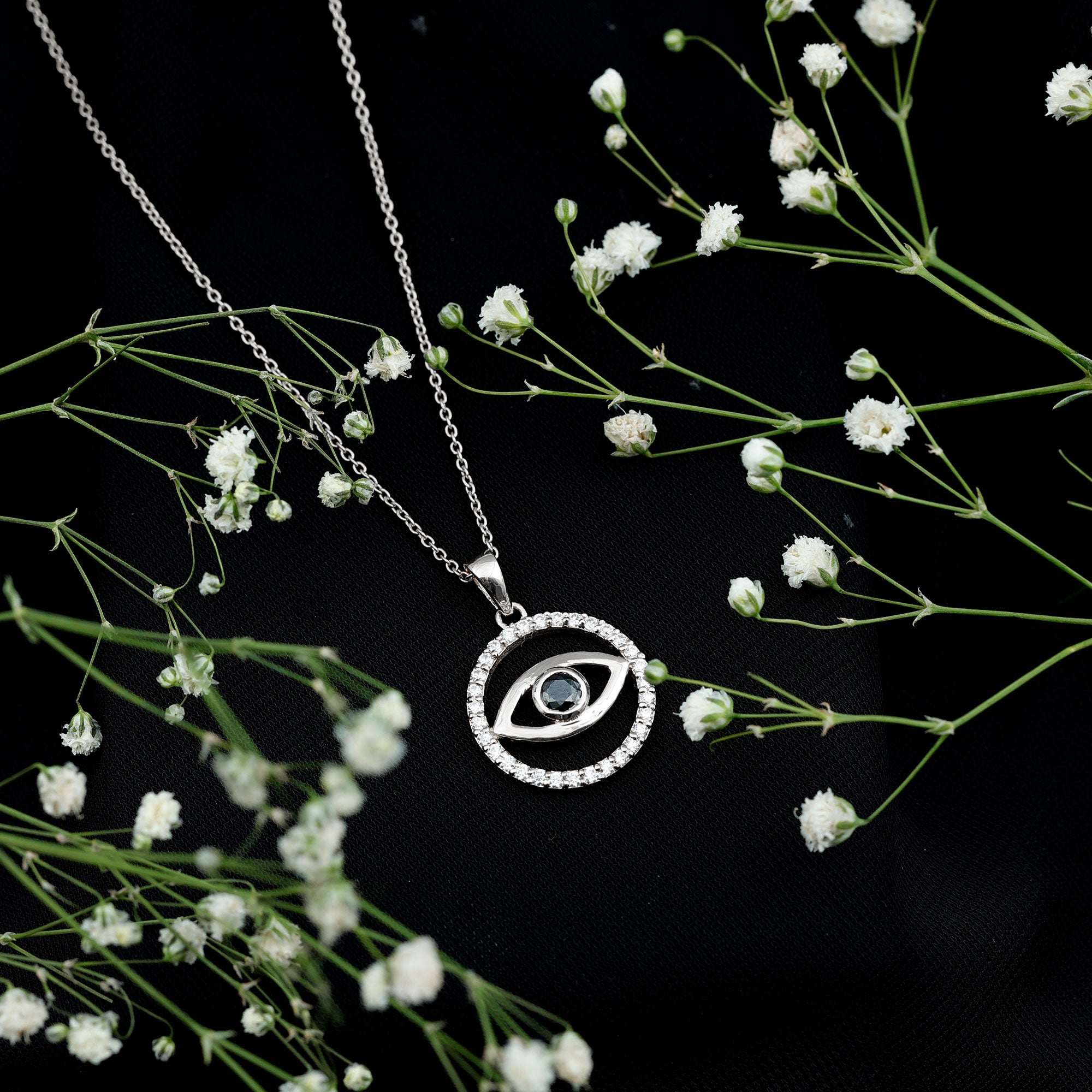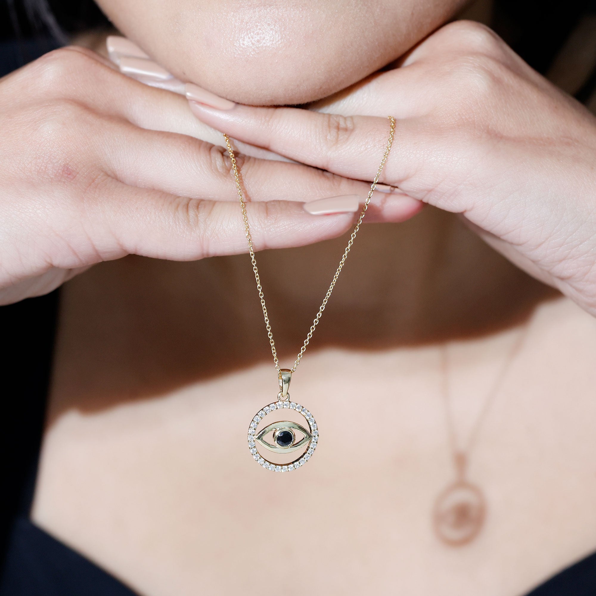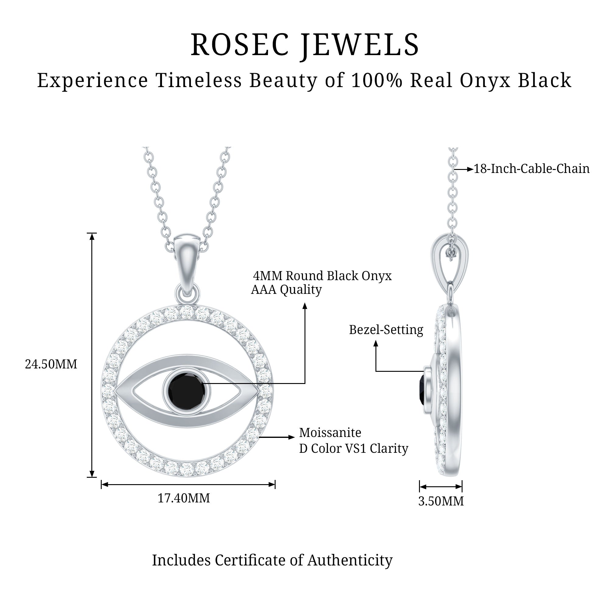 1 CT Black Onyx Evil Eye Pendant with Moissanite Eternity Circle