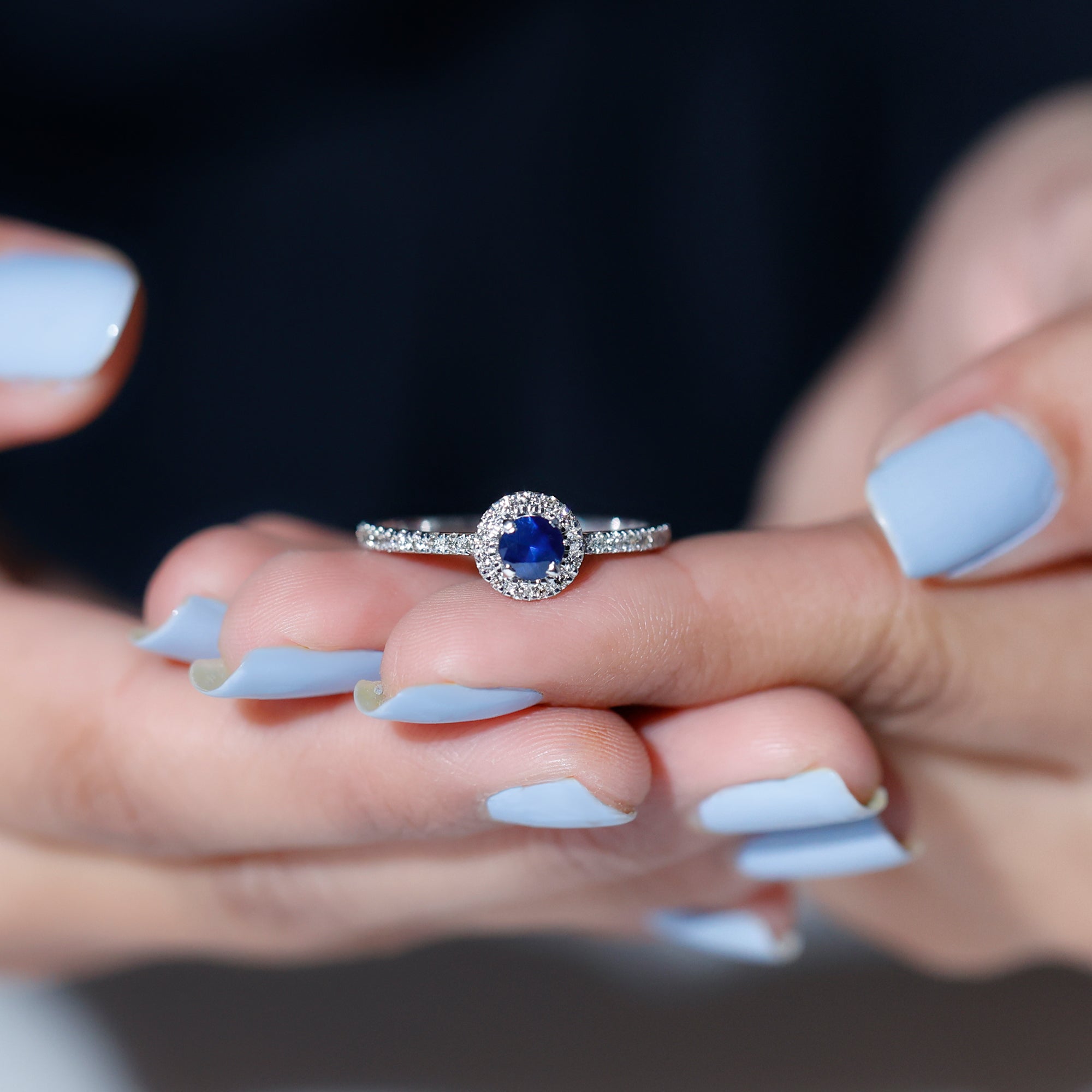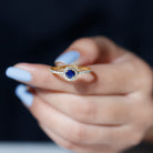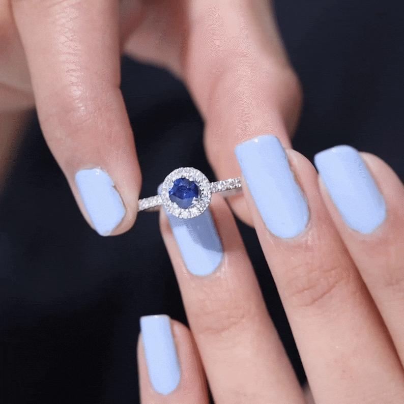 1 CT Blue Sapphire and Diamond Minimal Engagement Ring