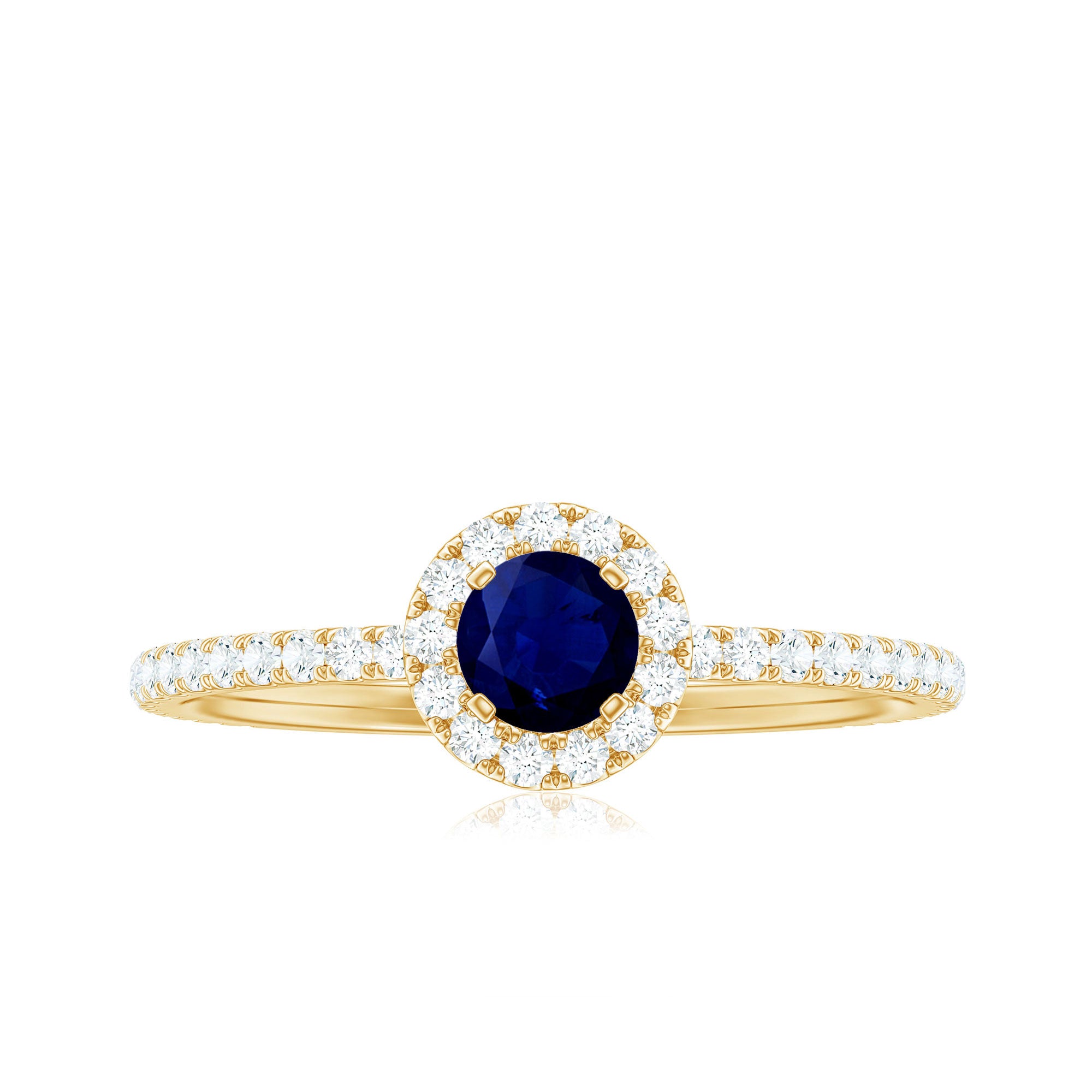 This Engagement Ring, a classic piece of jewelry, is adorned with a Round Shape Blue Sapphire as the center stone, securely set in a prong setting. The ring also features Diamond accents that add a touch of sparkle. This ring is perfect for an engagement, wedding or a special occasion.