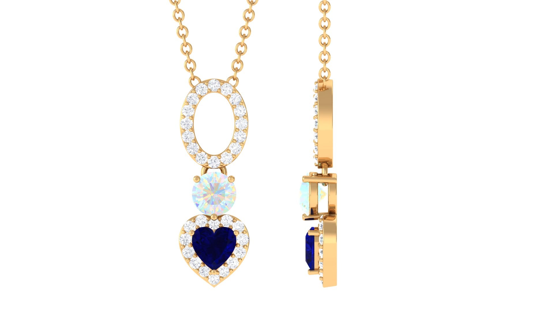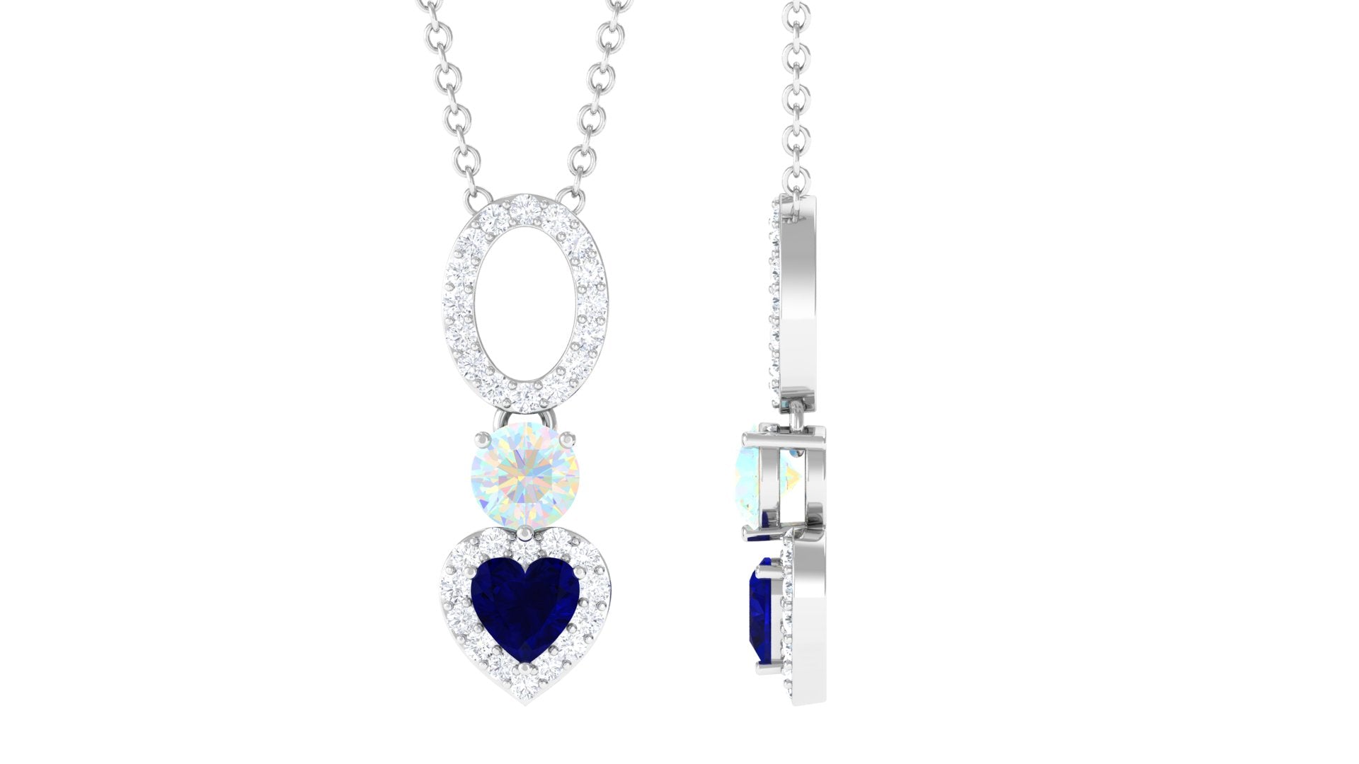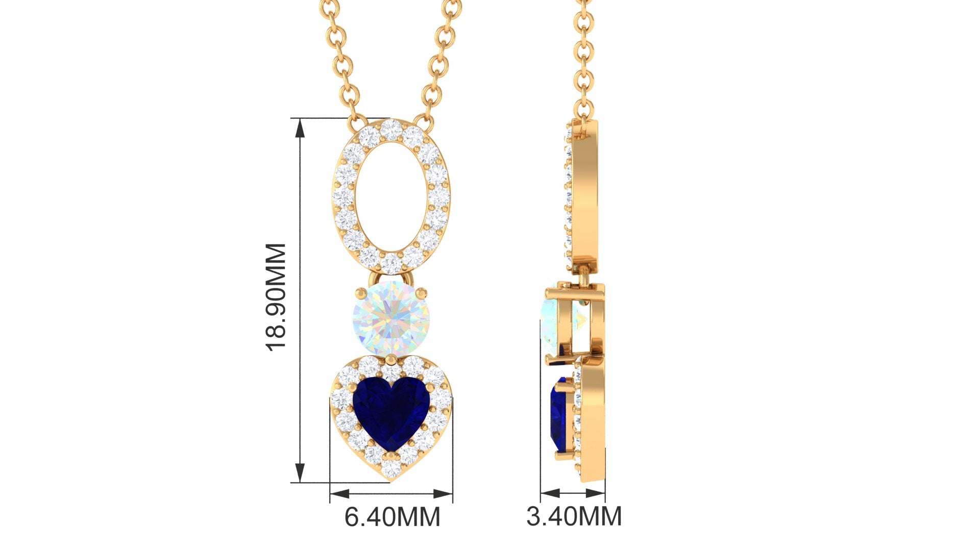 1 CT Blue Sapphire Heart Dangle Necklace with Ethiopian Opal and Moissanite
