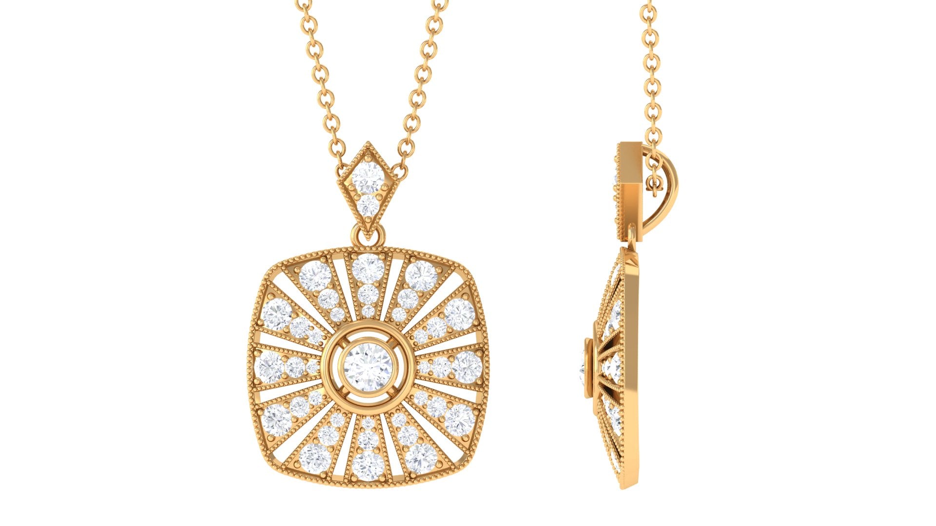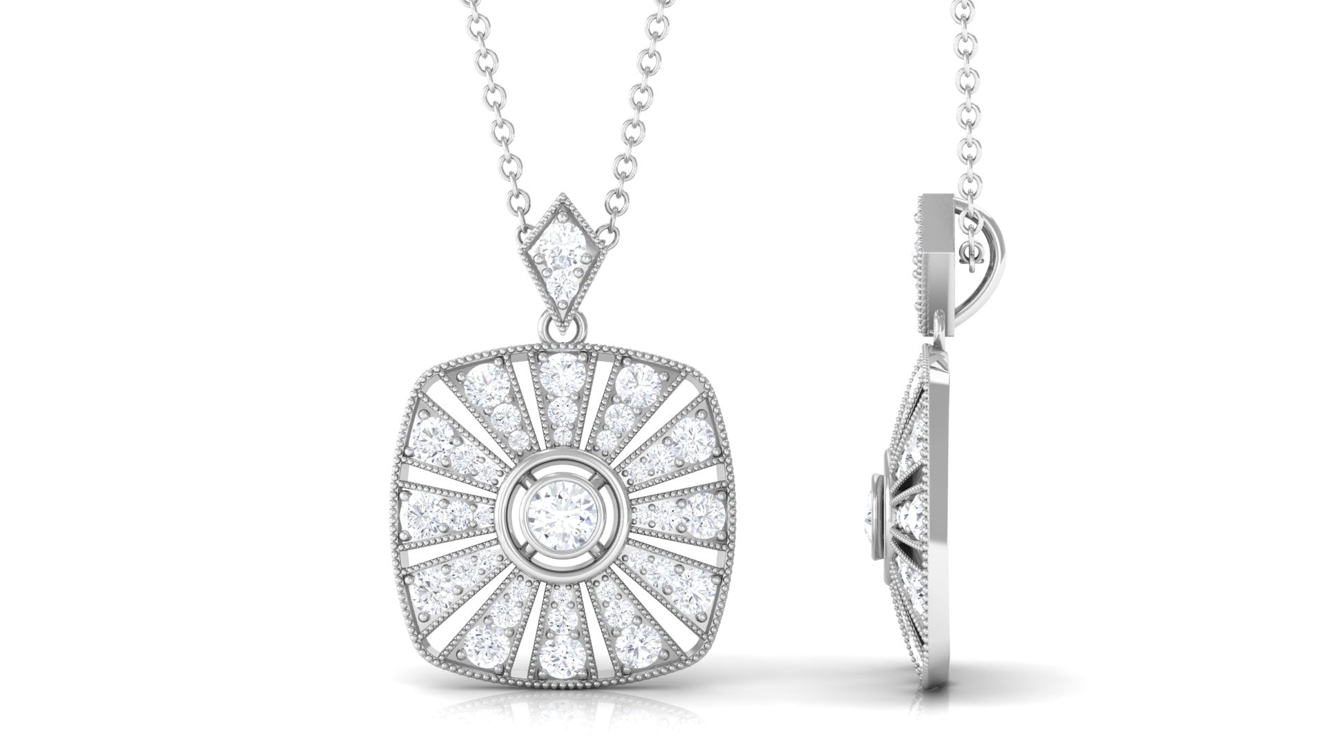 Outshine with our vintage Moissanite beaded pendant. A classic beauty with antique charm, this exclusive piece is not to be missed.