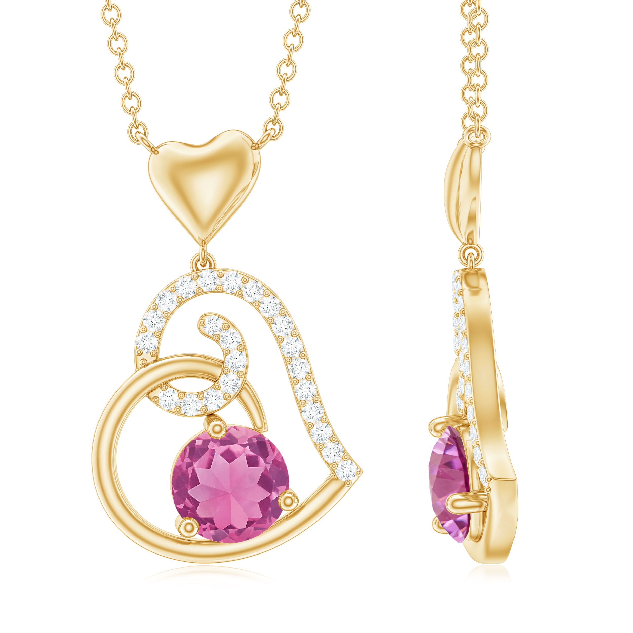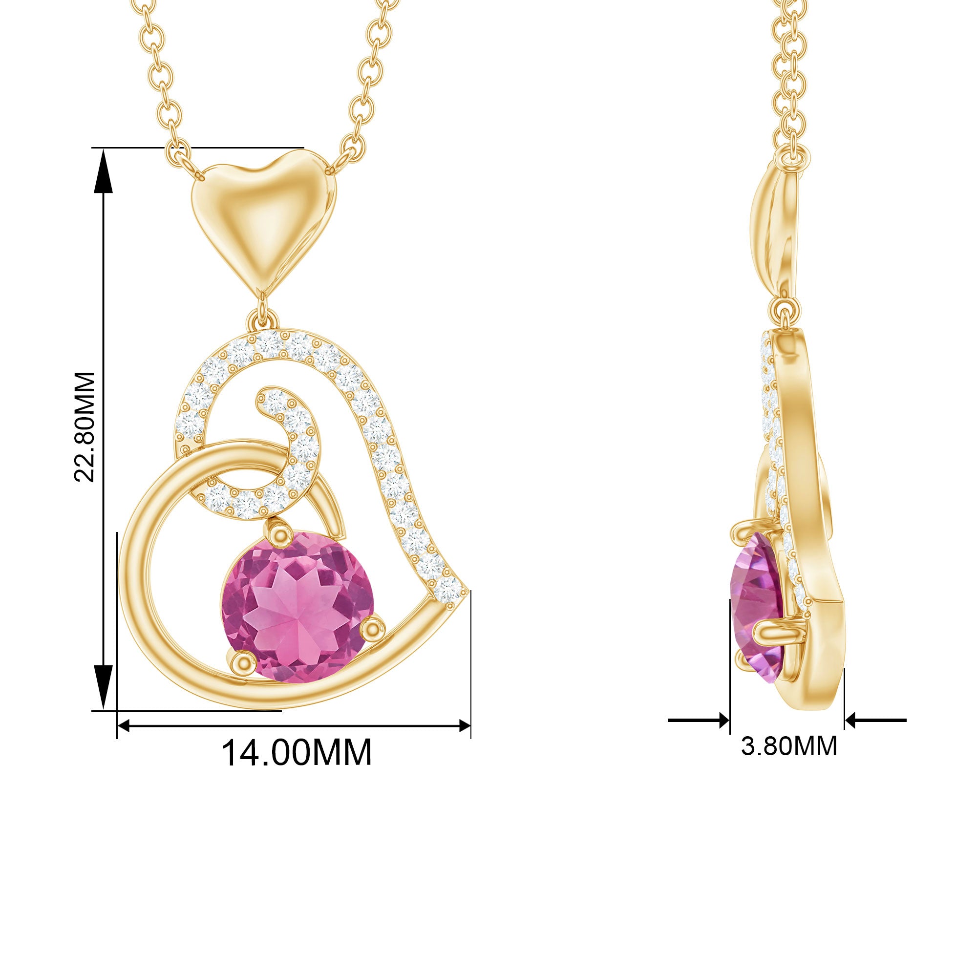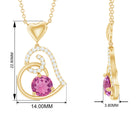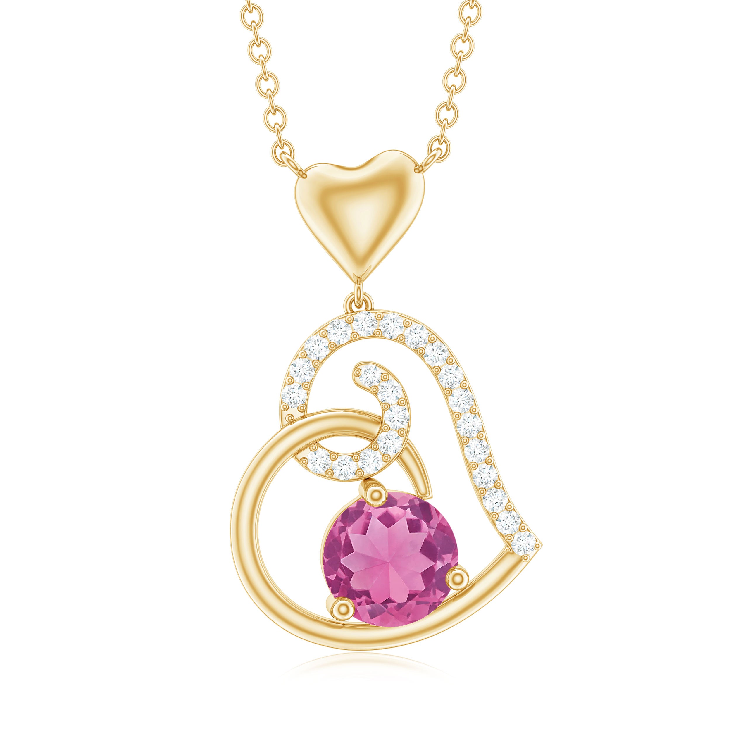 Embellished with a center stone showcasing a round-shaped Pink Tourmaline of AAA Quality, this Open Heart Pendant is a heartfelt expression of love. The pendant also features partially embedded round-shaped diamonds of HI-SI Quality, adding a touch of sparkle to the heart shape. Crafted in gold and equipped with a heart-shaped standard bail, this Pink Tourmaline Pendant for Women is not just an accessory but a meaningful symbol of affection that she can cherish every day.
