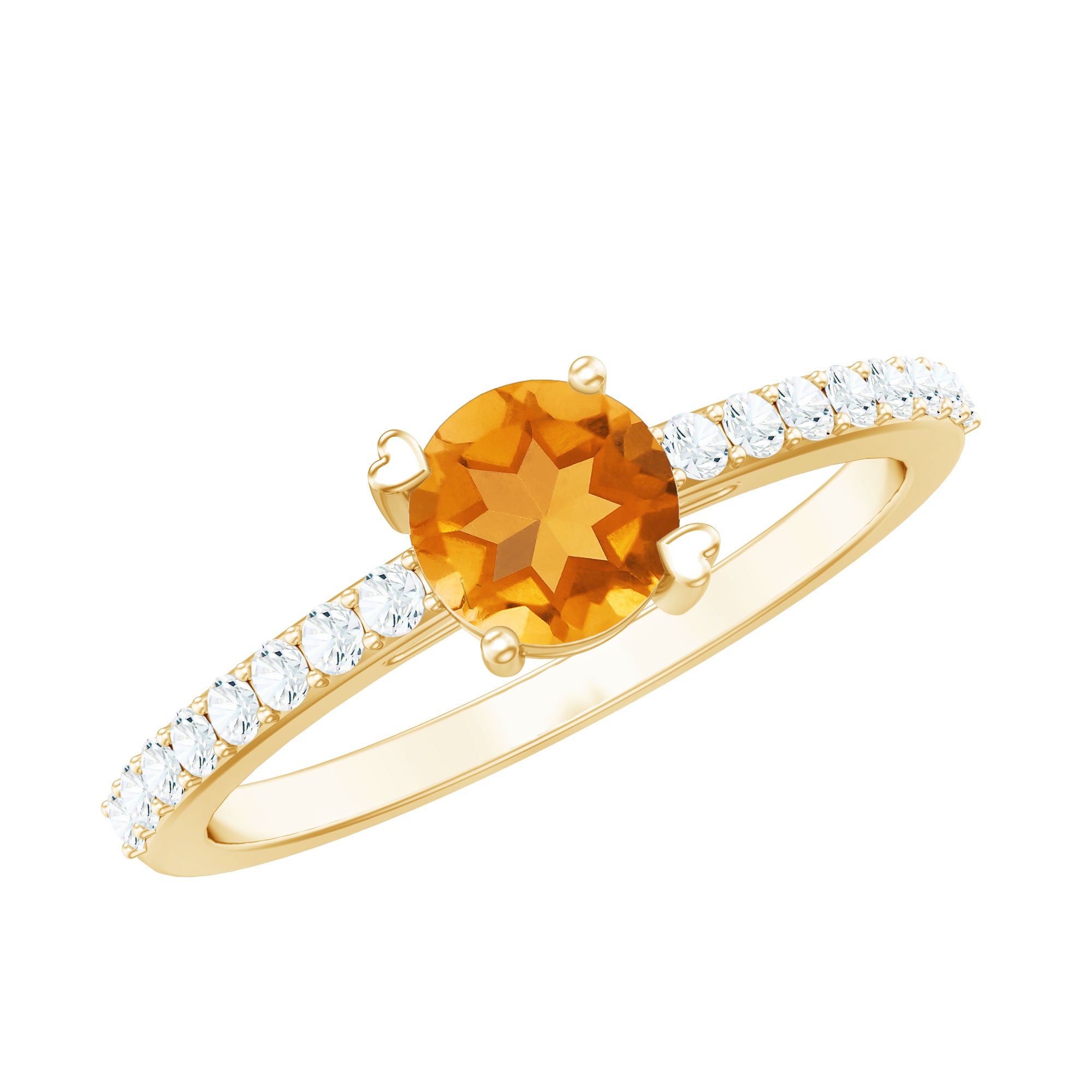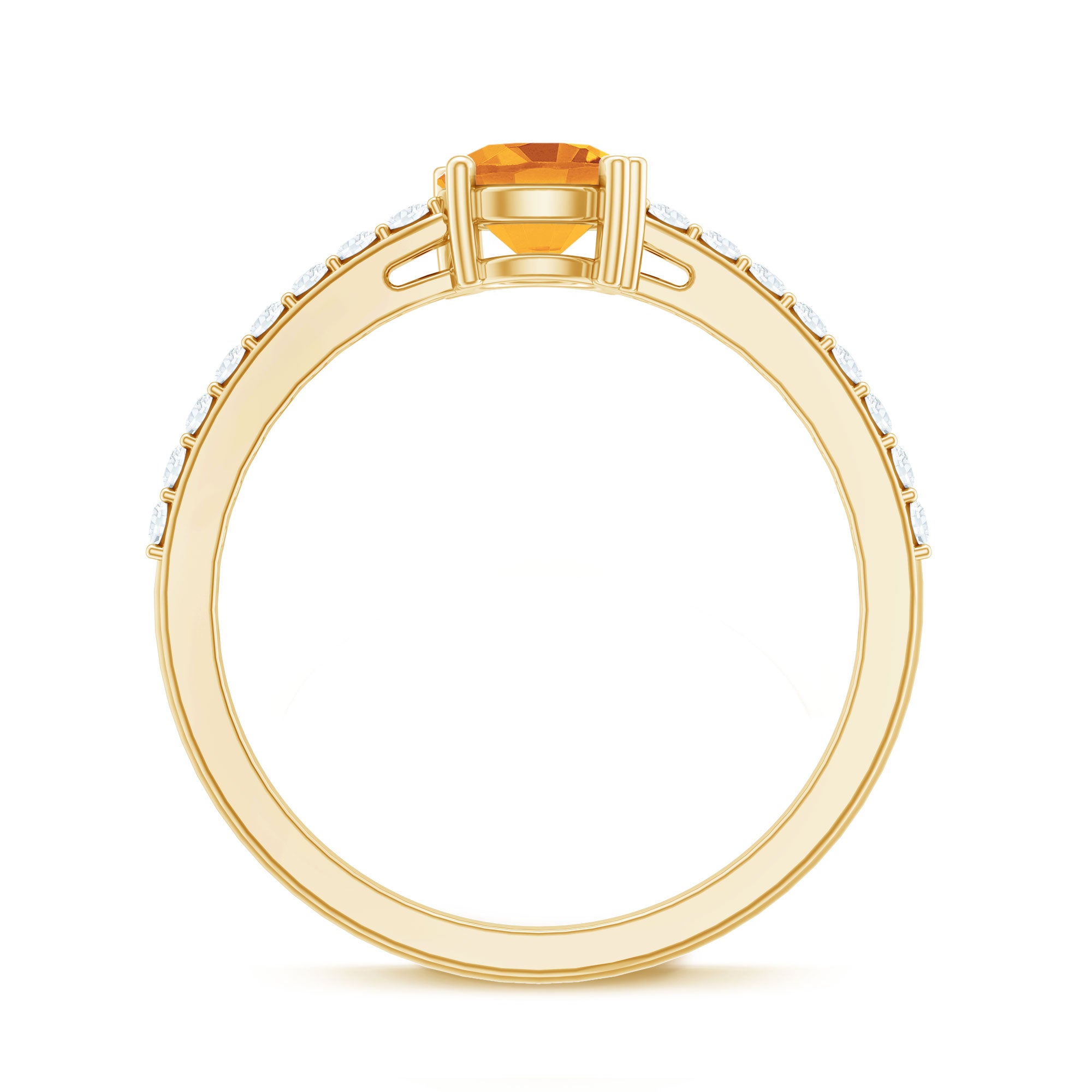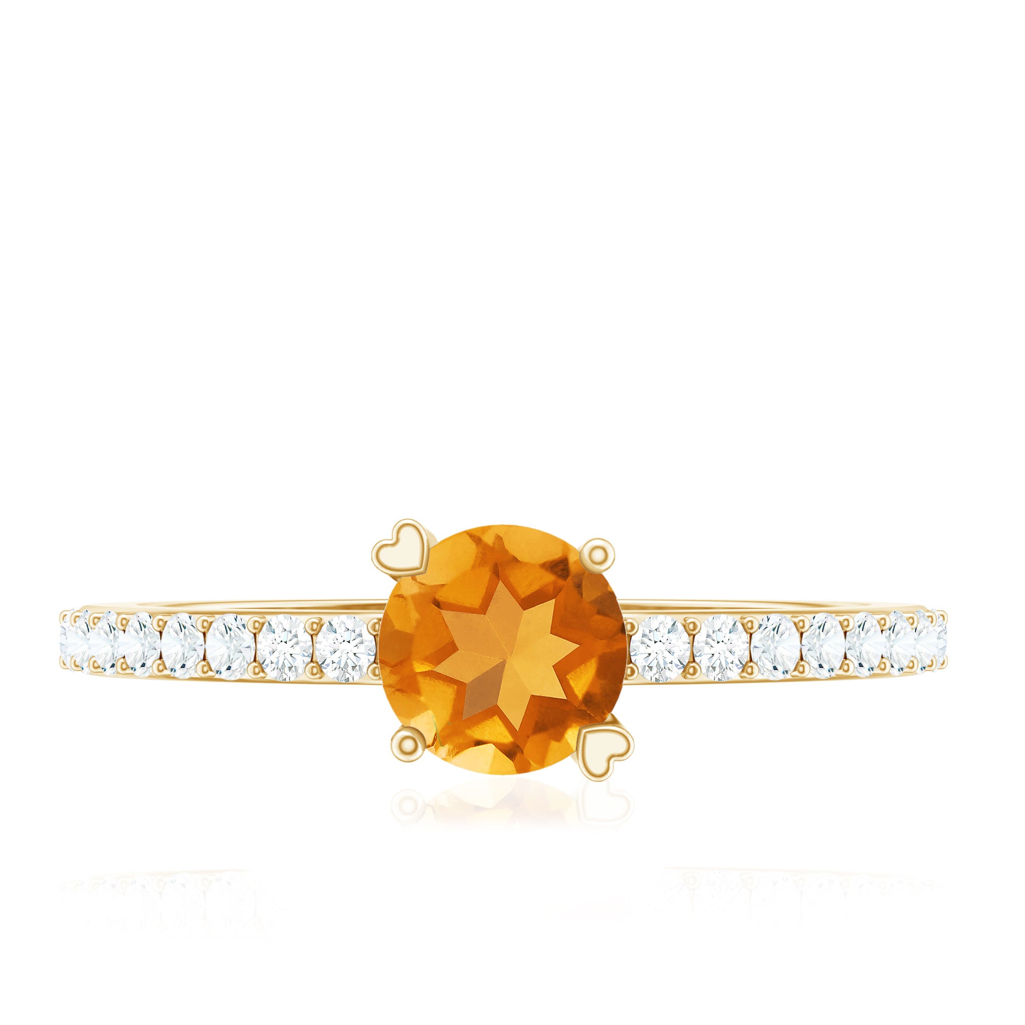 1 CT Citrine Solitaire Promise Ring with Diamond Side Stones