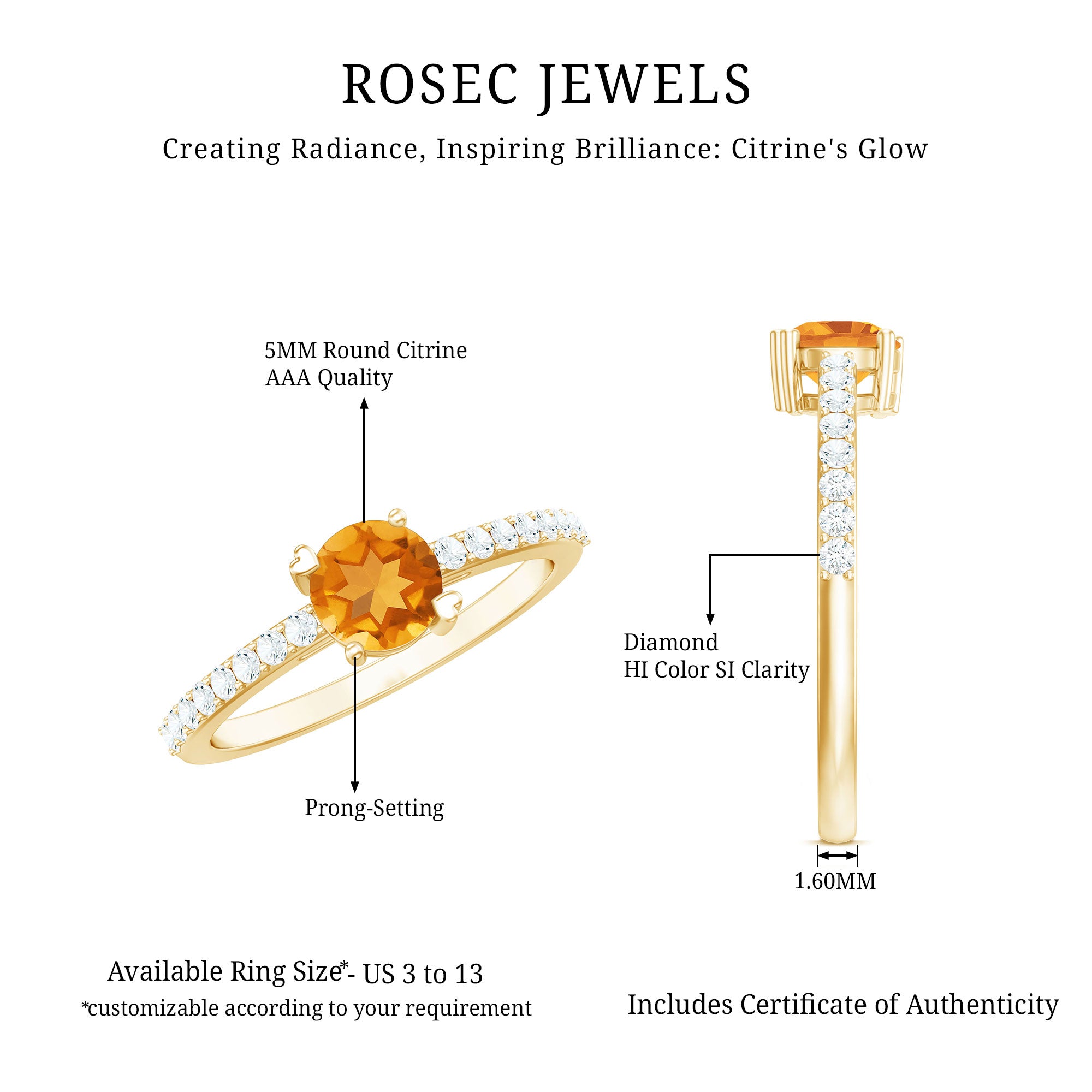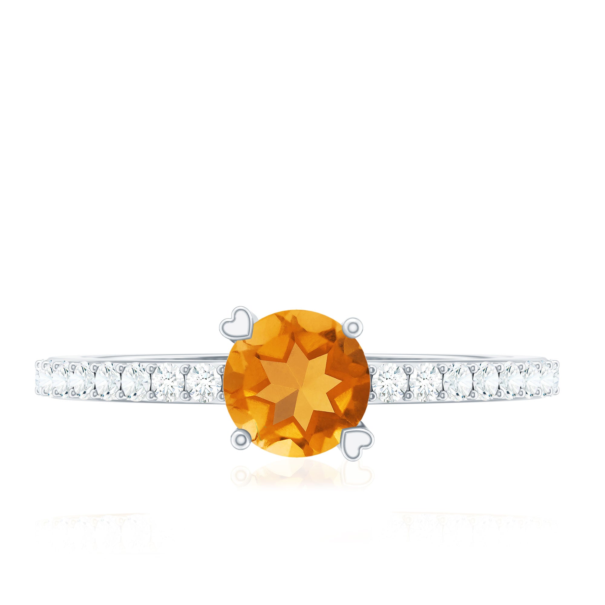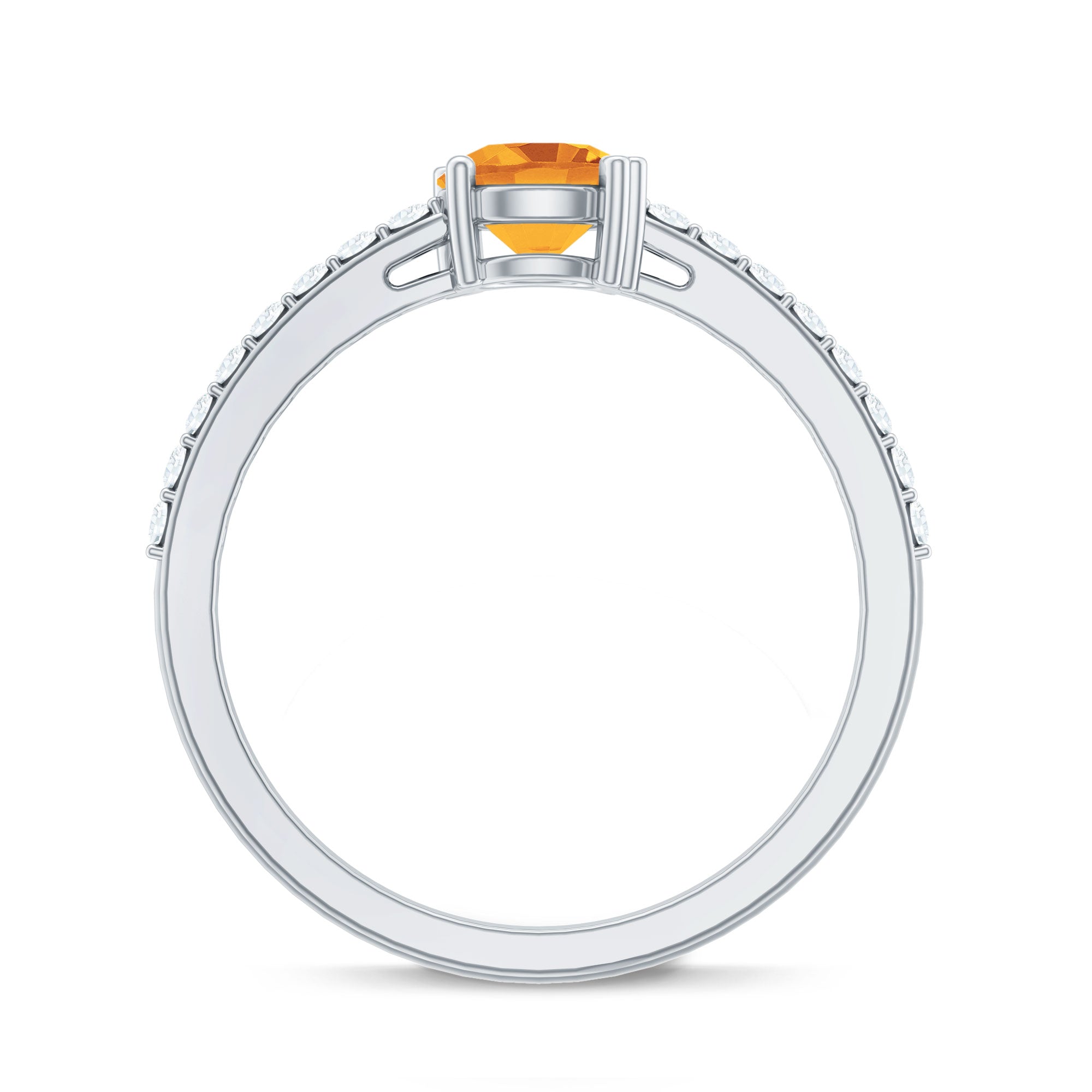 1 CT Citrine Solitaire Promise Ring with Diamond Side Stones
