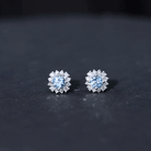 1 CT Classic Aquamarine and Diamond Halo Stud Earrings