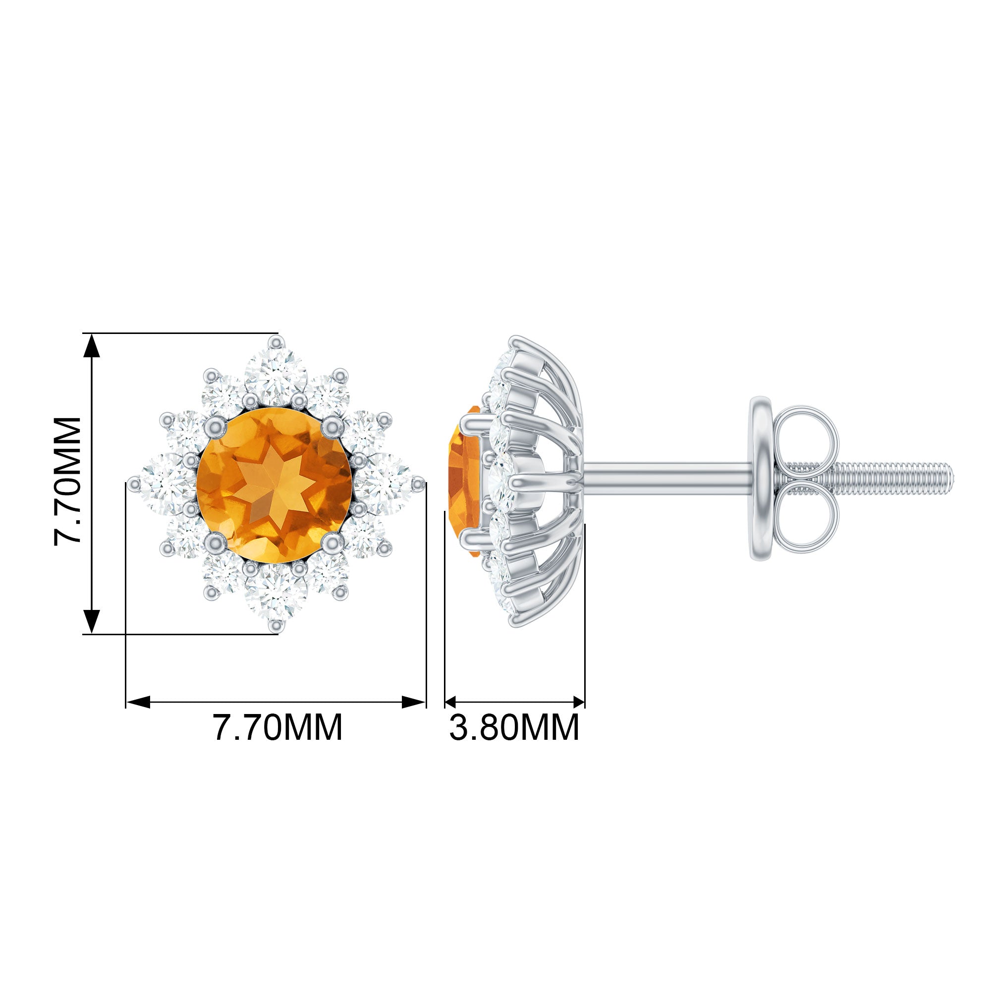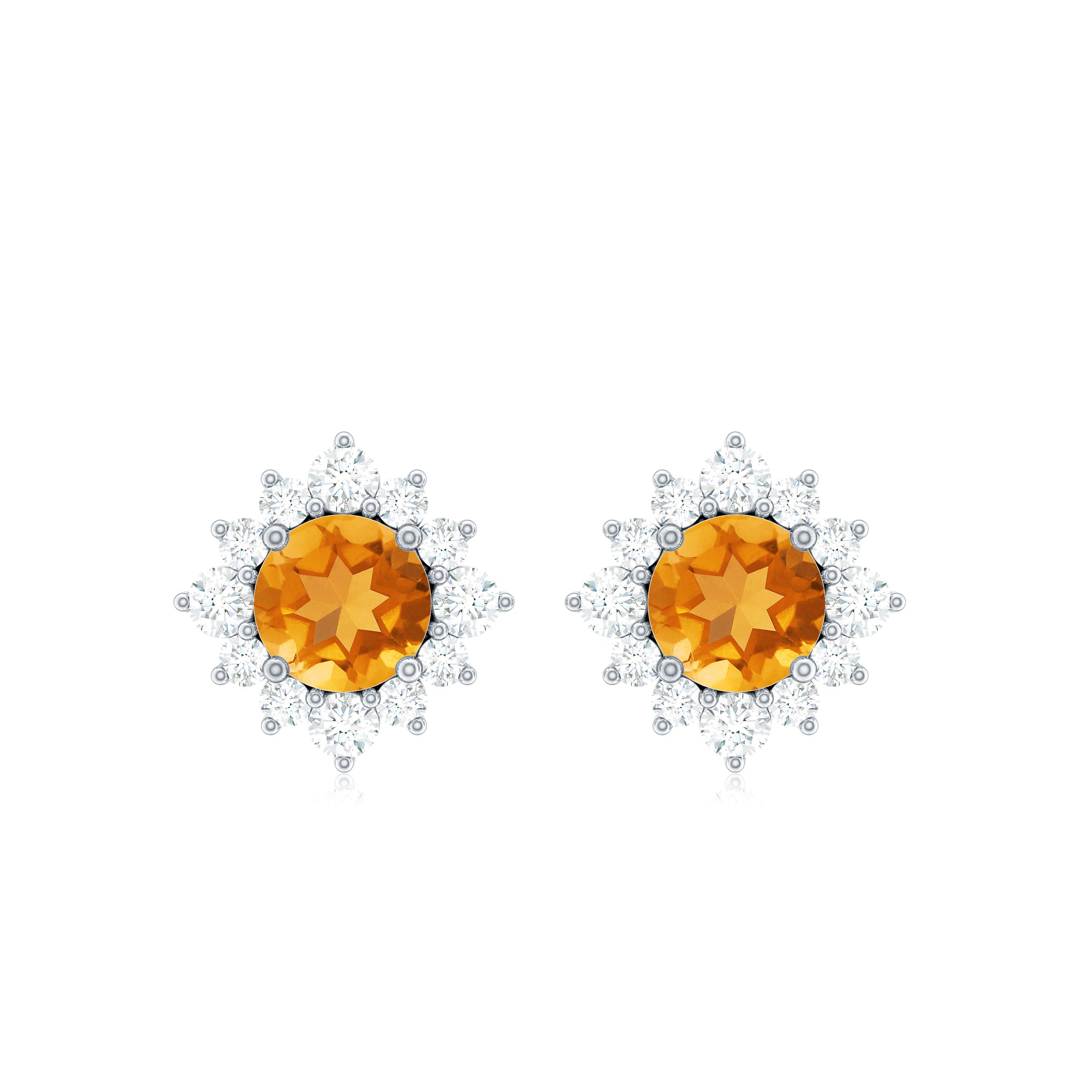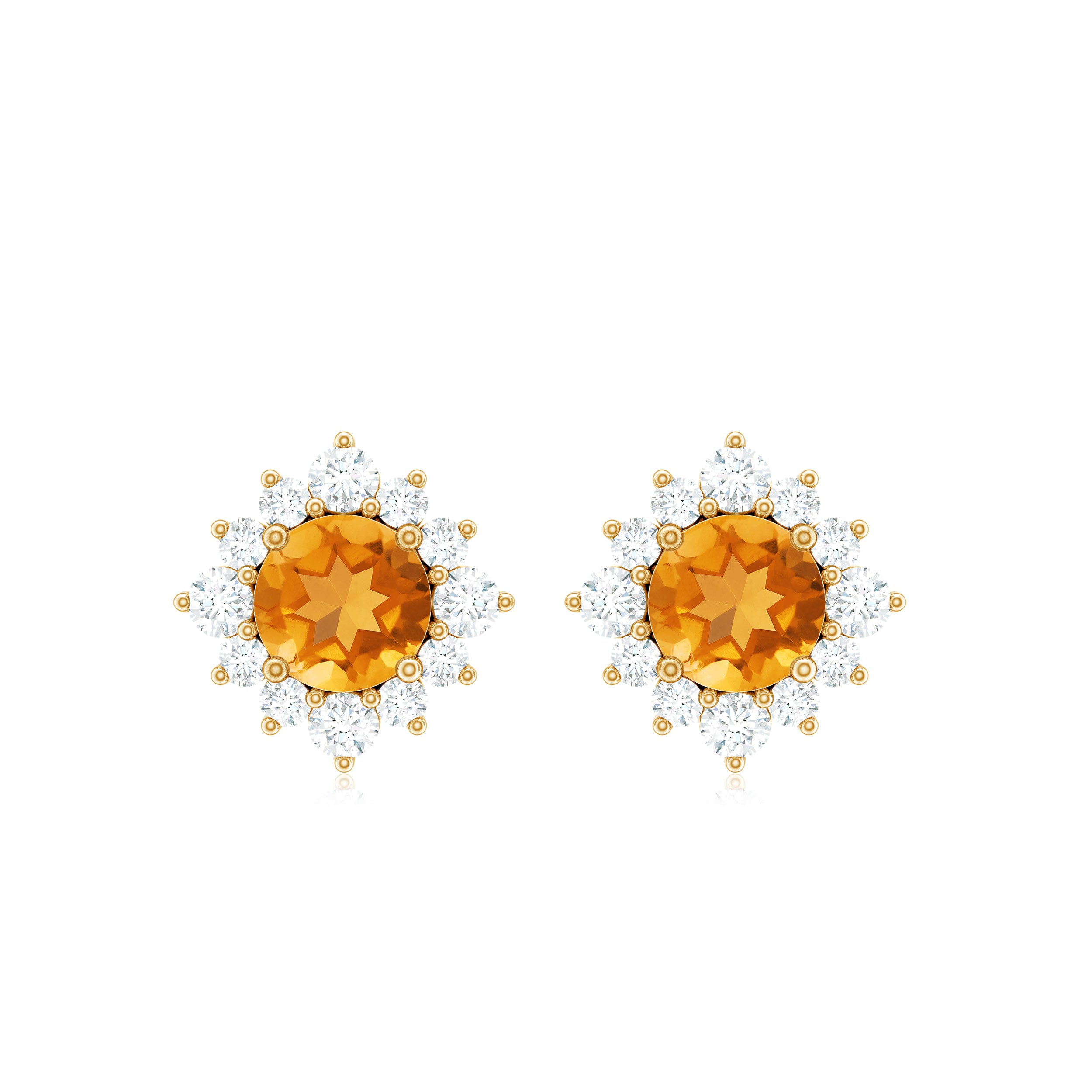 1 CT Classic Citrine Stud Earrings with Diamond Halo
