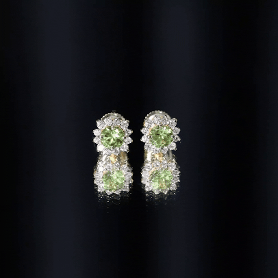 1 CT Classic Peridot Stud Earrings with Diamond Halo