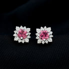 1 CT Classic Pink Tourmaline Stud Earrings with Diamond Halo