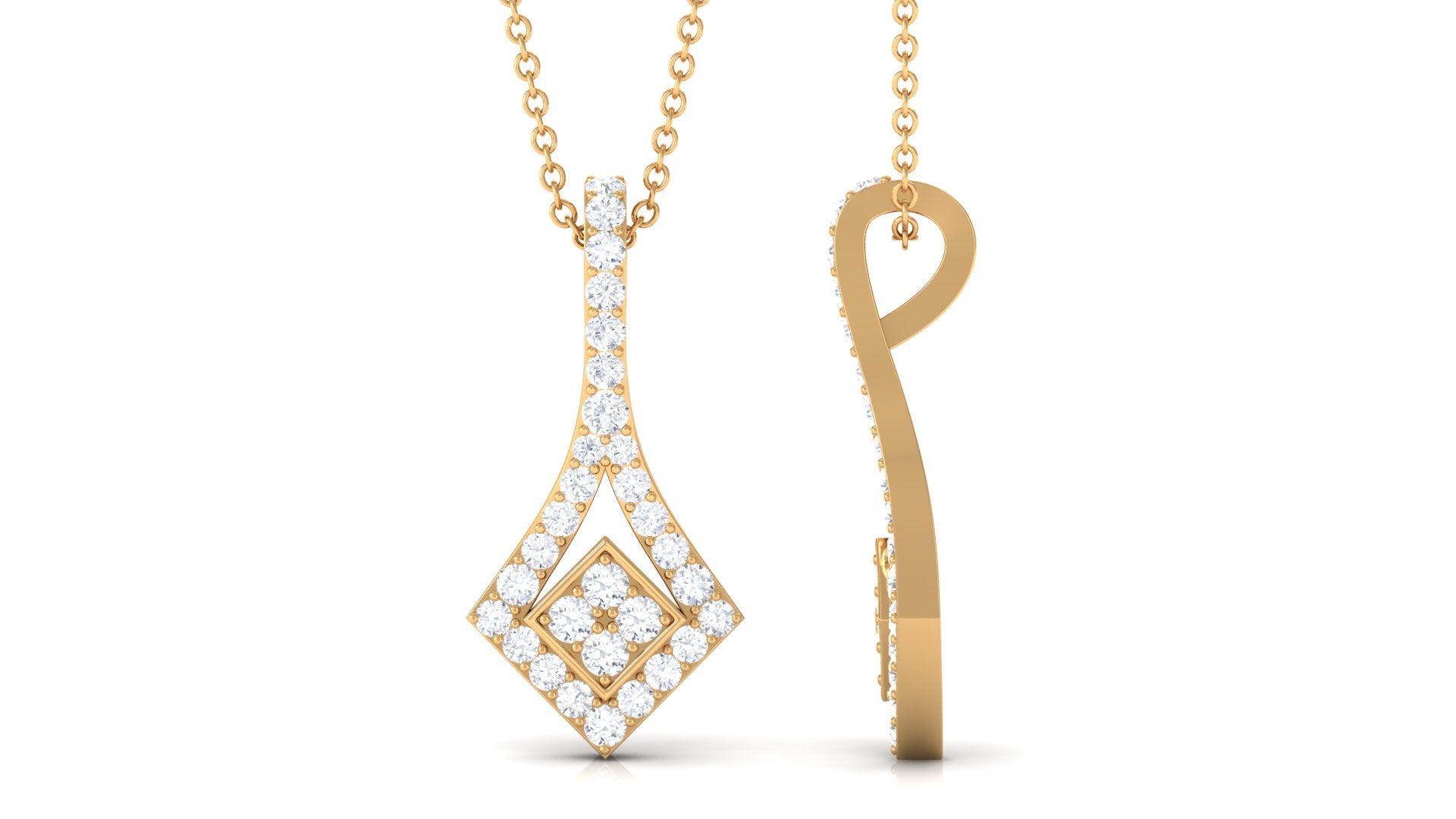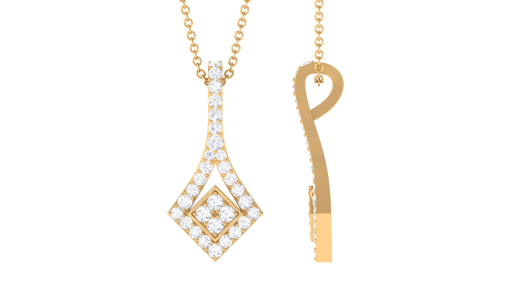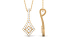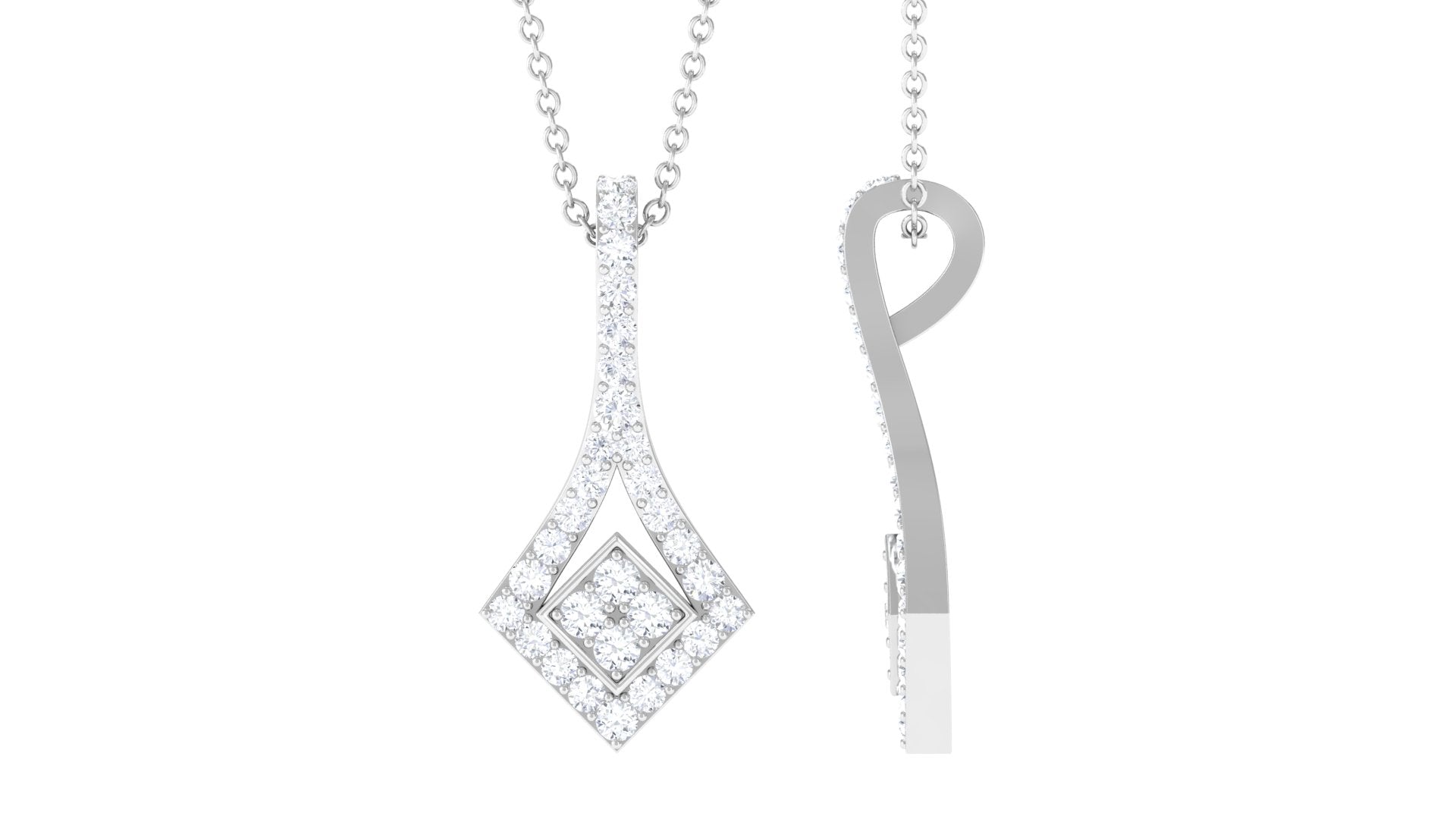 This designer Moissanite Dangle Pendant is embellished with Round Shape Moissanite secured in Pave Setting studded on a unique design, crafted with Hallmarked Metal. This elegant Moissanite Pendant Necklace can be styled effortlessly with your any attire due to its incredible charm and appearance.