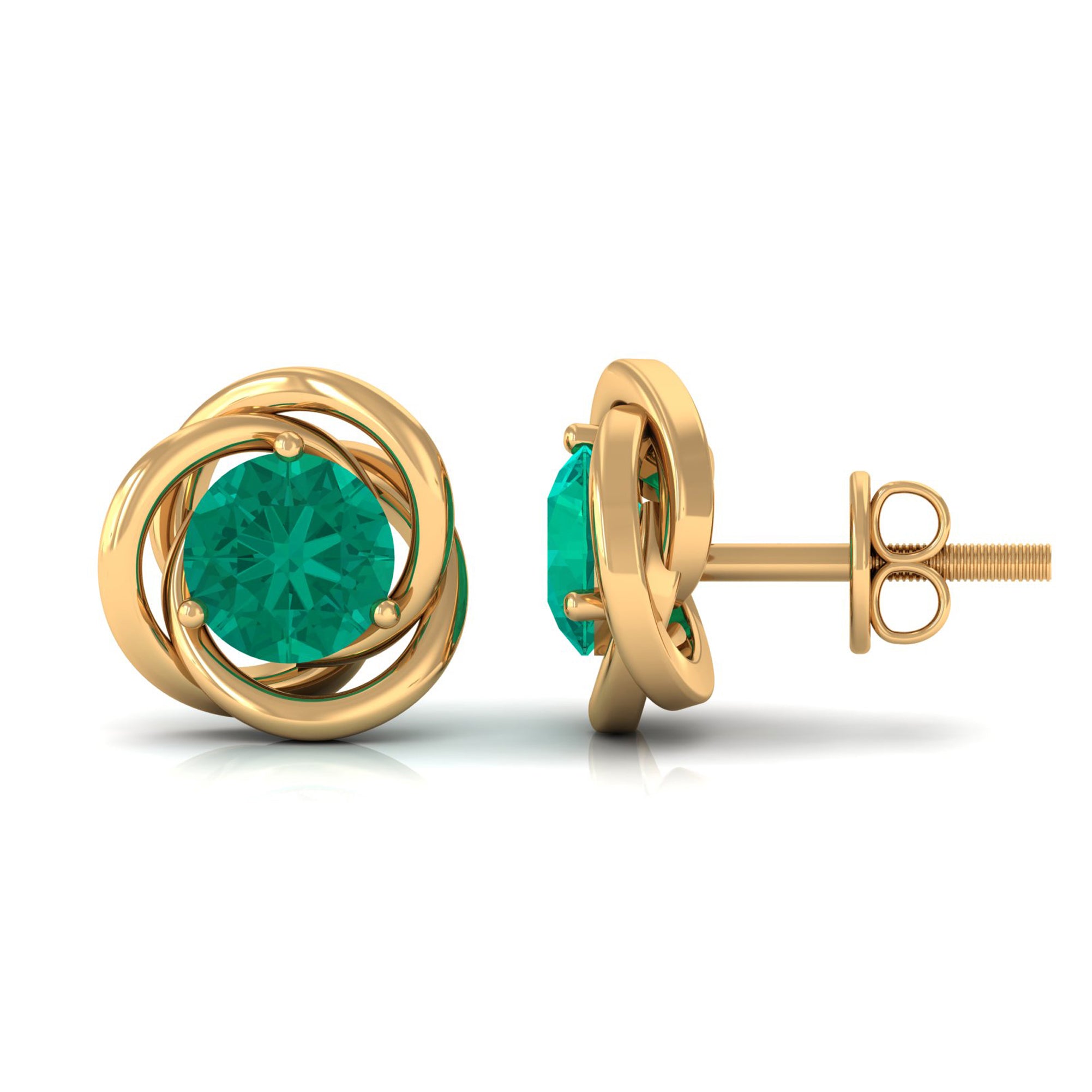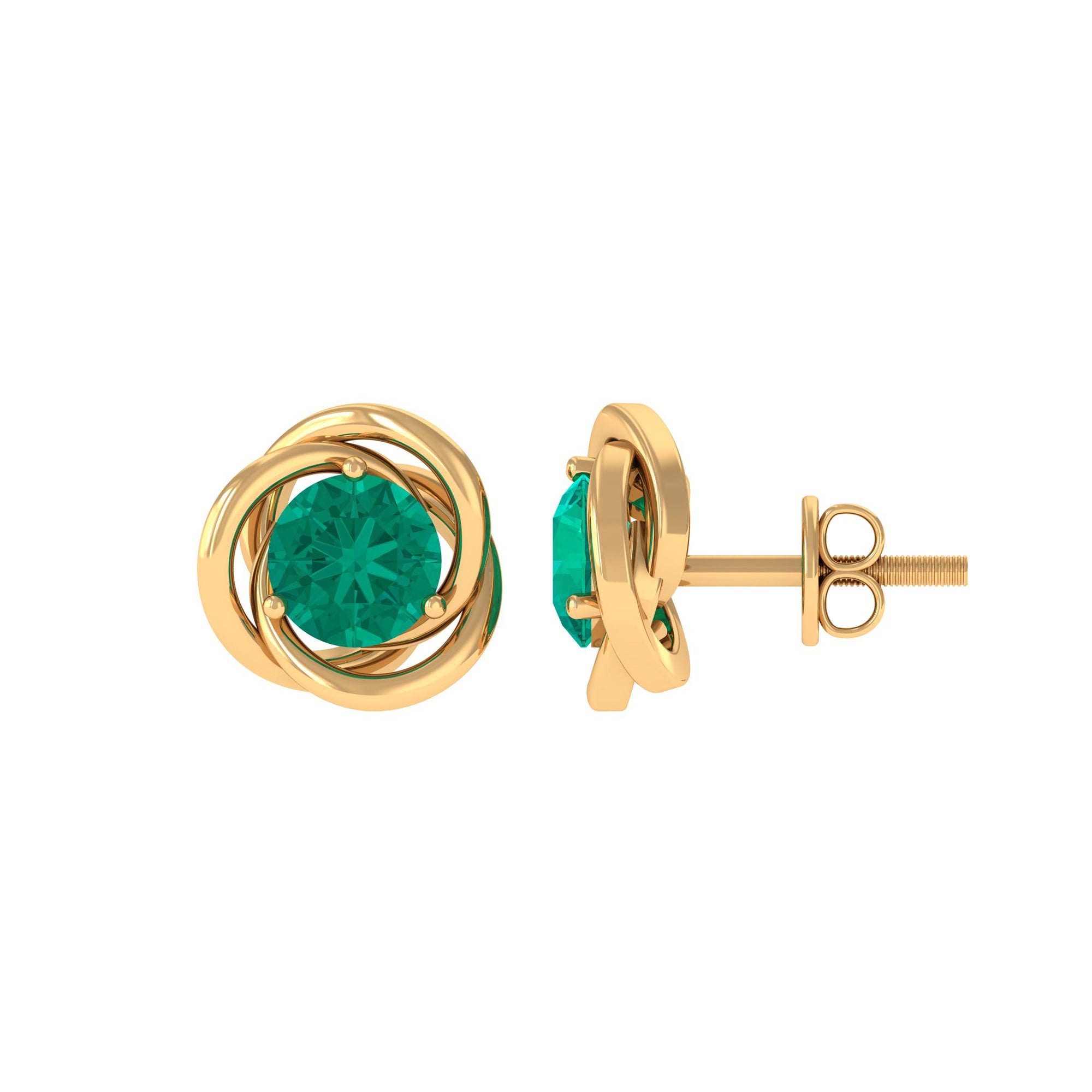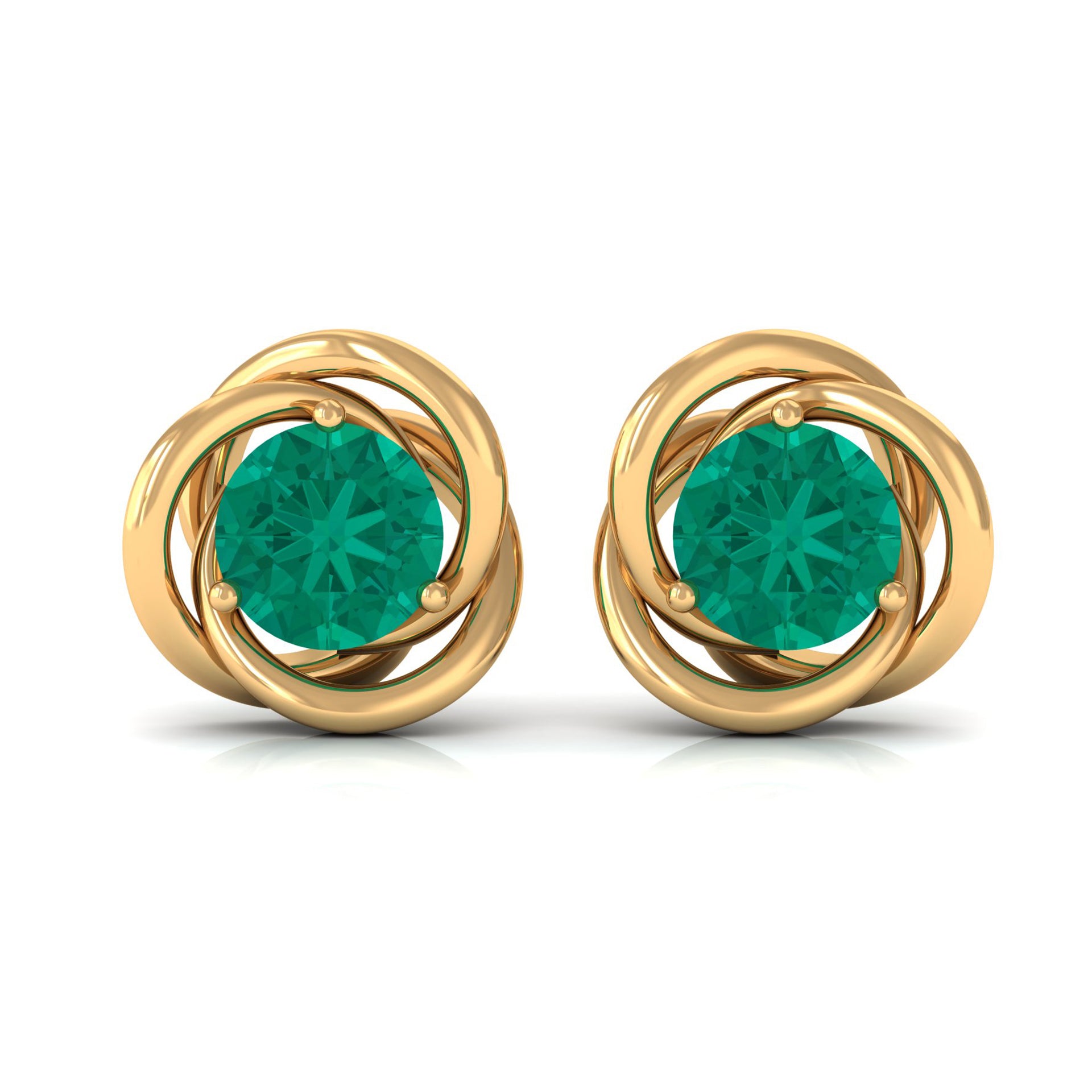Look your best in these Stud Earrings with a 5 MM Emerald Solitaire in a unique gold pattern which adds to the look of these Stud Earrings.