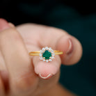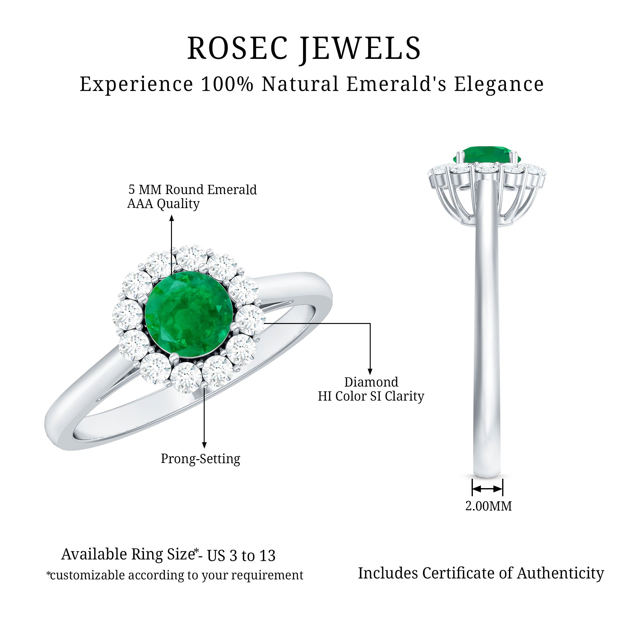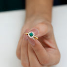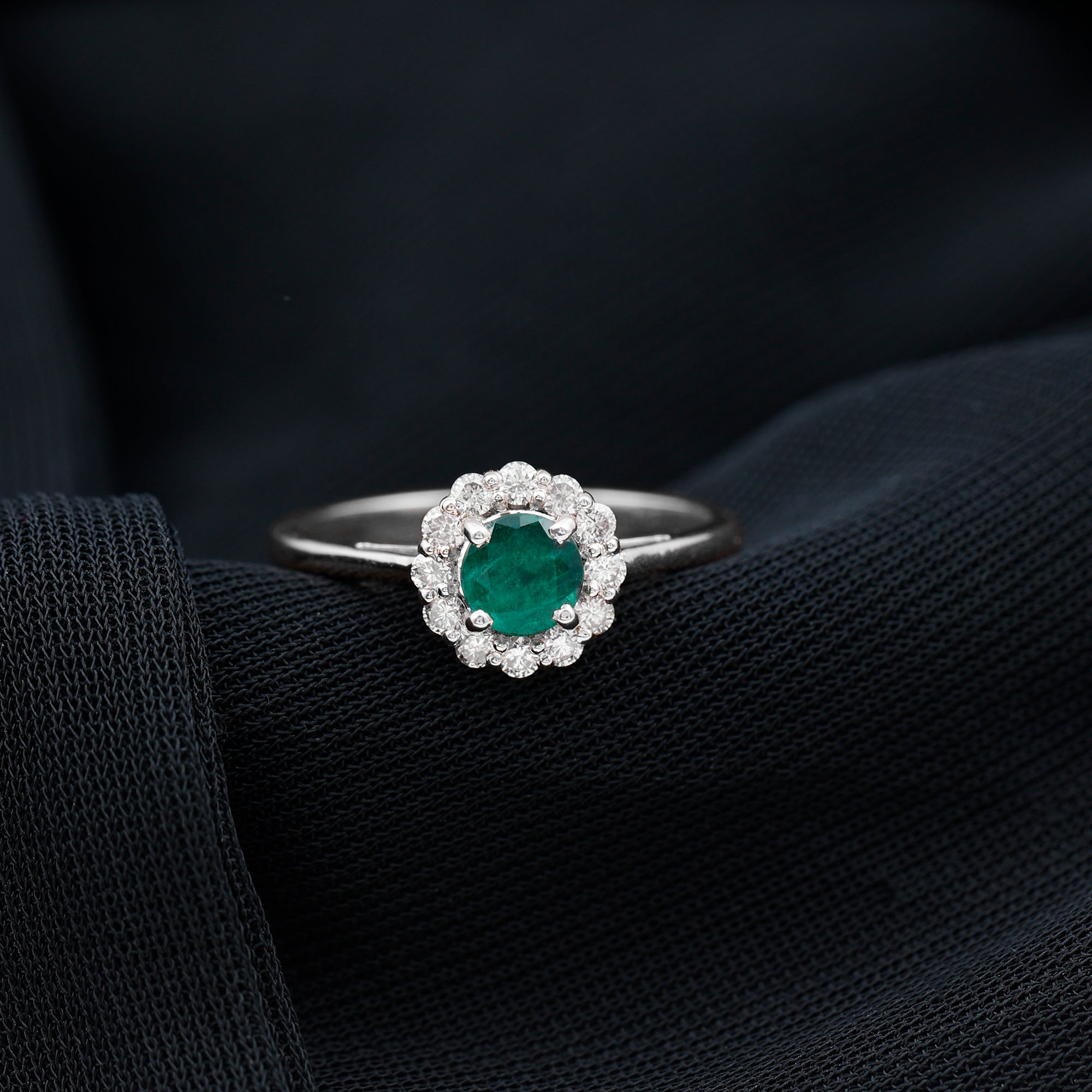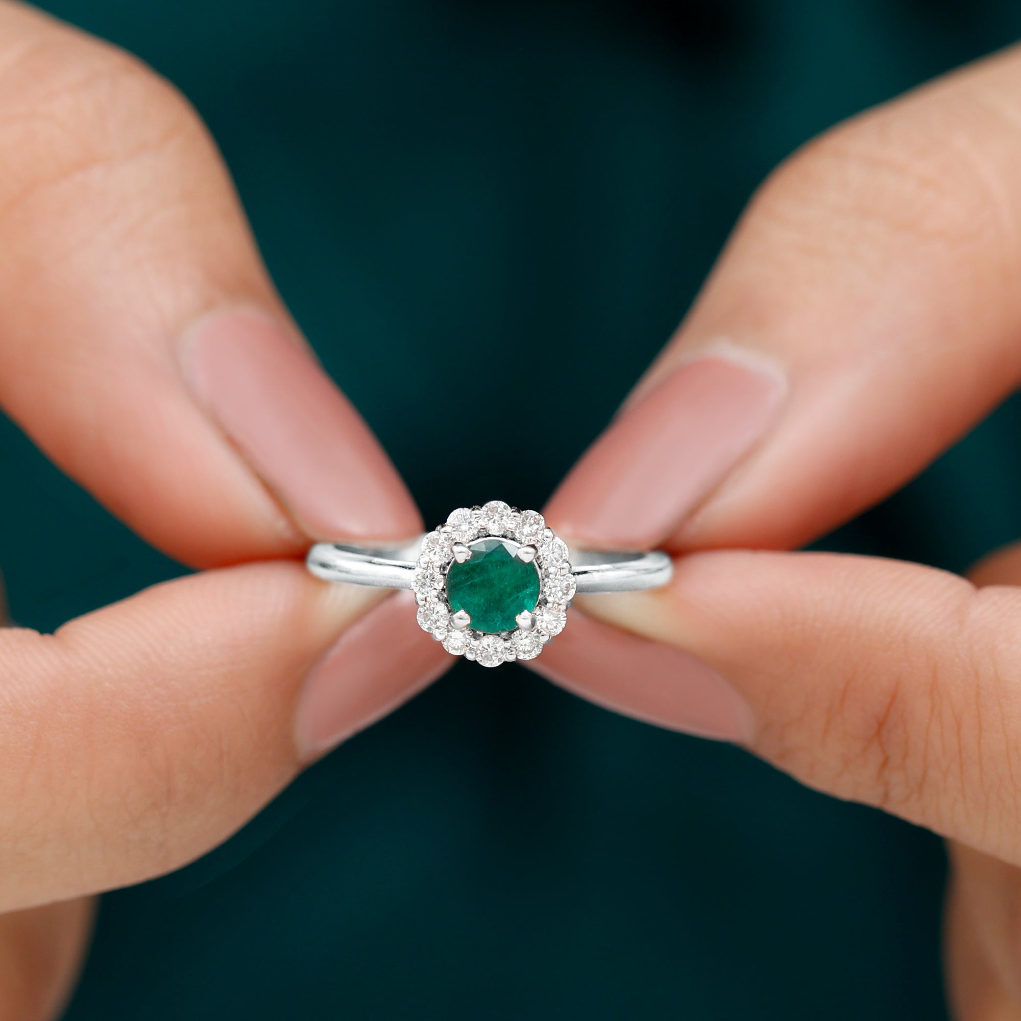 This Emerald Engagement Ring captures the essence of timeless beauty and meaningful elegance. At its center lies a 5 MM round cut emerald, held securely in prong setting. Surrounding the emerald is a delicate halo of sparkling diamonds, designed to catch the light from every angle and add a brilliant glow to the Round Engagement Ring. The combination of the AAA quality real emerald and the dazzling HI-SI quality diamonds creates a stunning contrast that makes the Halo Engagement Ring truly stand out. Each diamond adds a touch of sparkle, enhancing the overall beauty and giving the piece a luxurious yet graceful look. The halo style not only highlights the emerald as the star of the ring but also provides added security and durability, making it suitable for daily wear or special occasions. Crafted with care and precision, this Emerald and Diamond Ring balances elegance with comfort, ensuring it feels as good as it looks. Its thoughtful design reflects both style and sentiment, perfect for someone who wants a meaningful symbol of love and commitment. Presented in a beautiful jewelry box, this Round Emerald Ring is ready to become a treasured keepsake. It holds the promise of lasting memories, deep emotions, and endless sparkle, making it a wonderful choice for marking life’s most special moments.