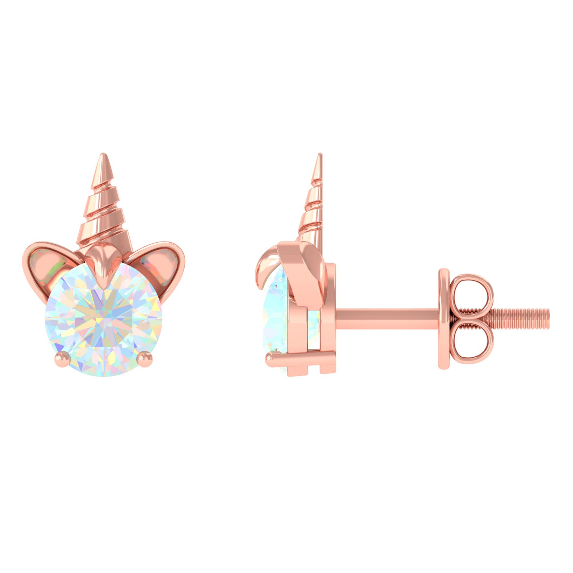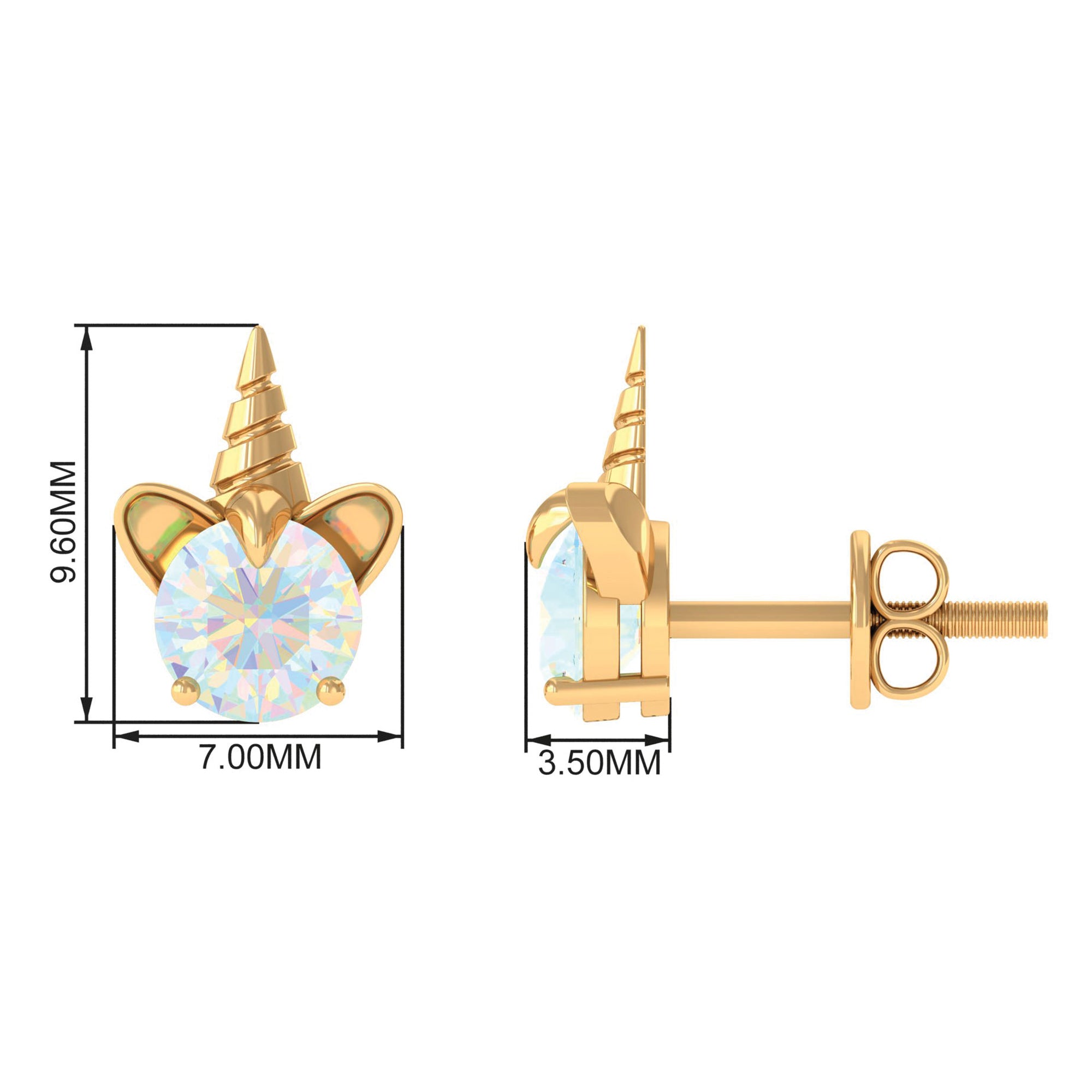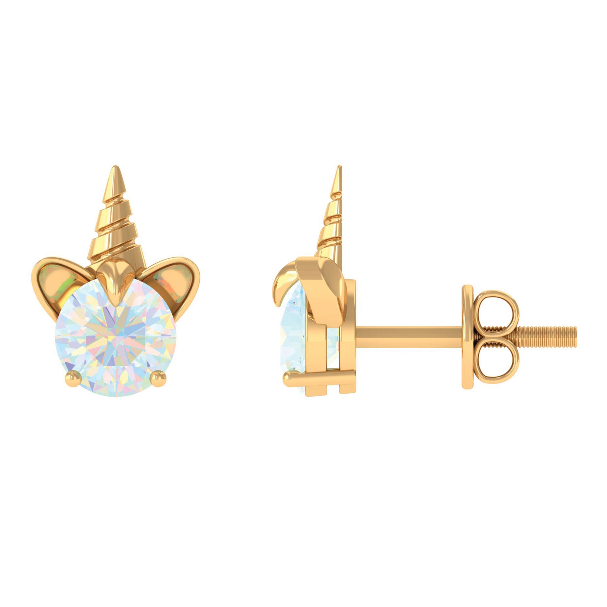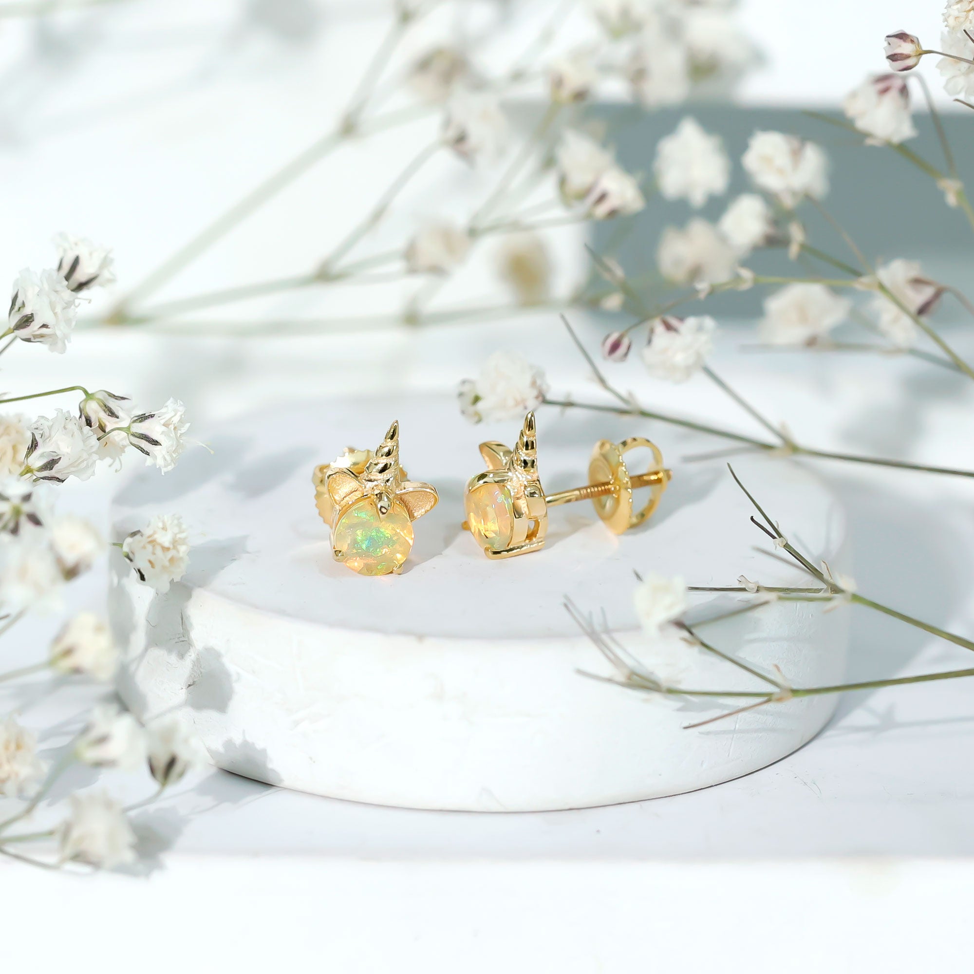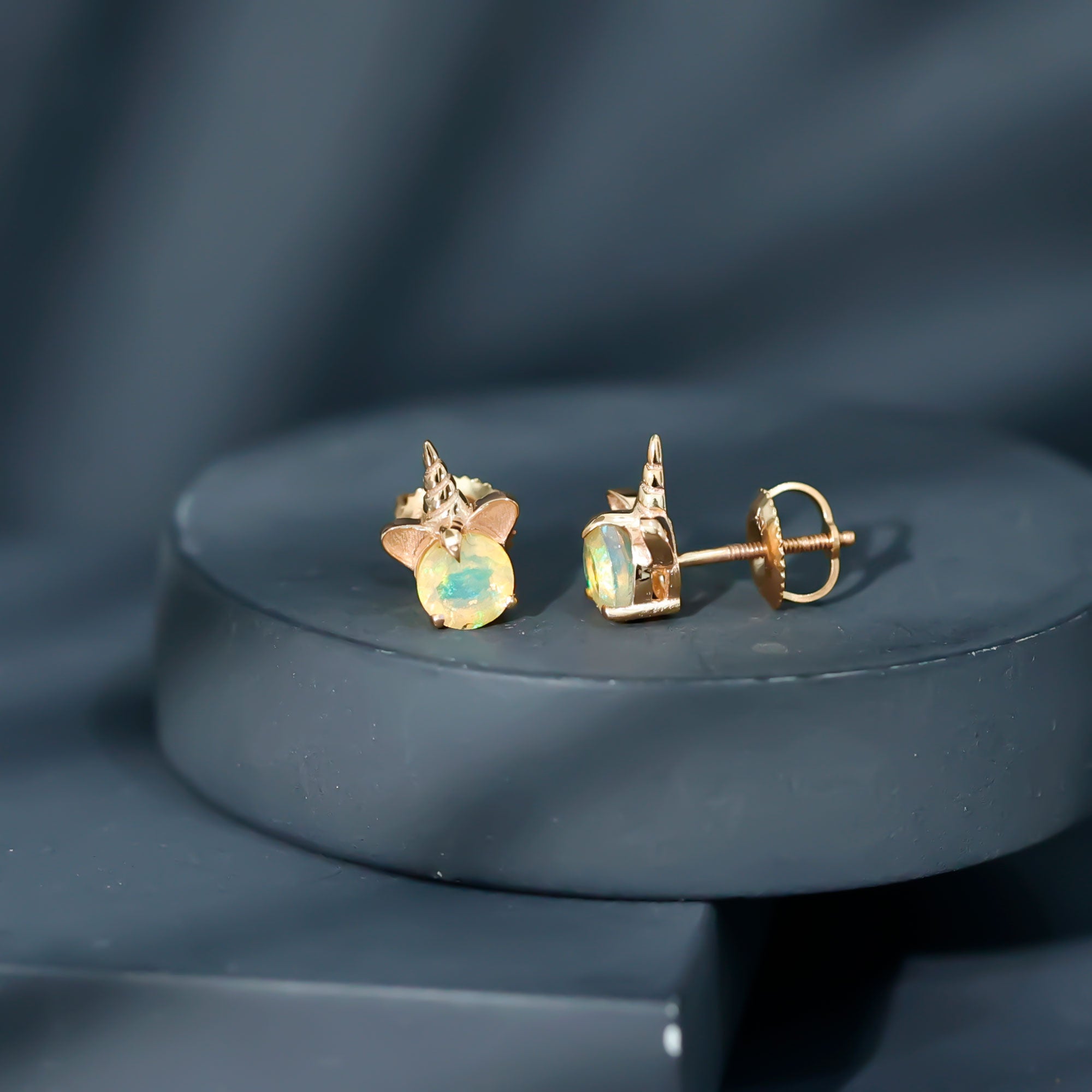 1 CT Ethiopian Opal Unicorn Solitaire Stud Earrings in Gold