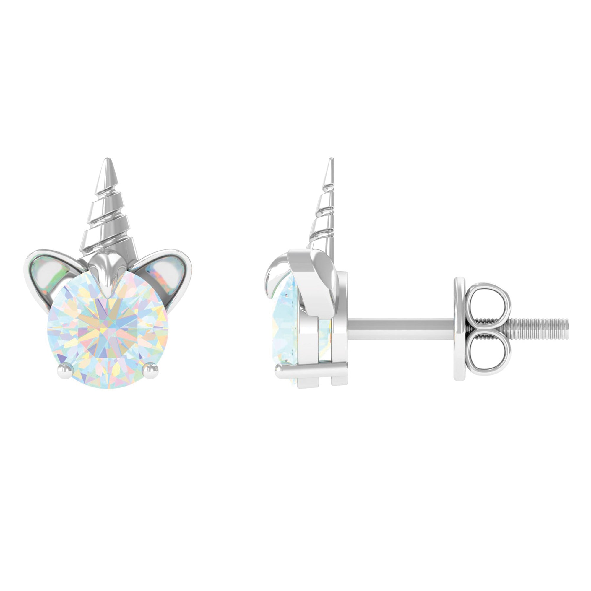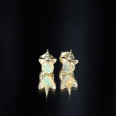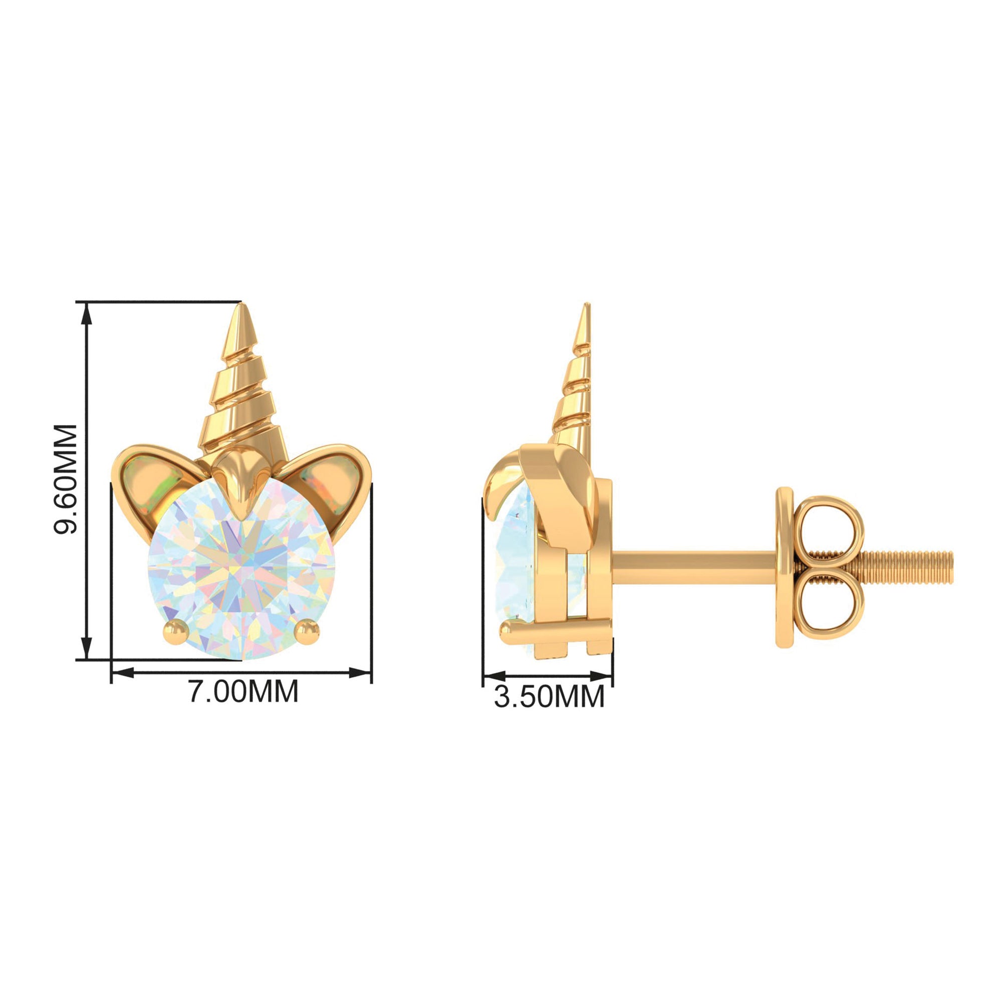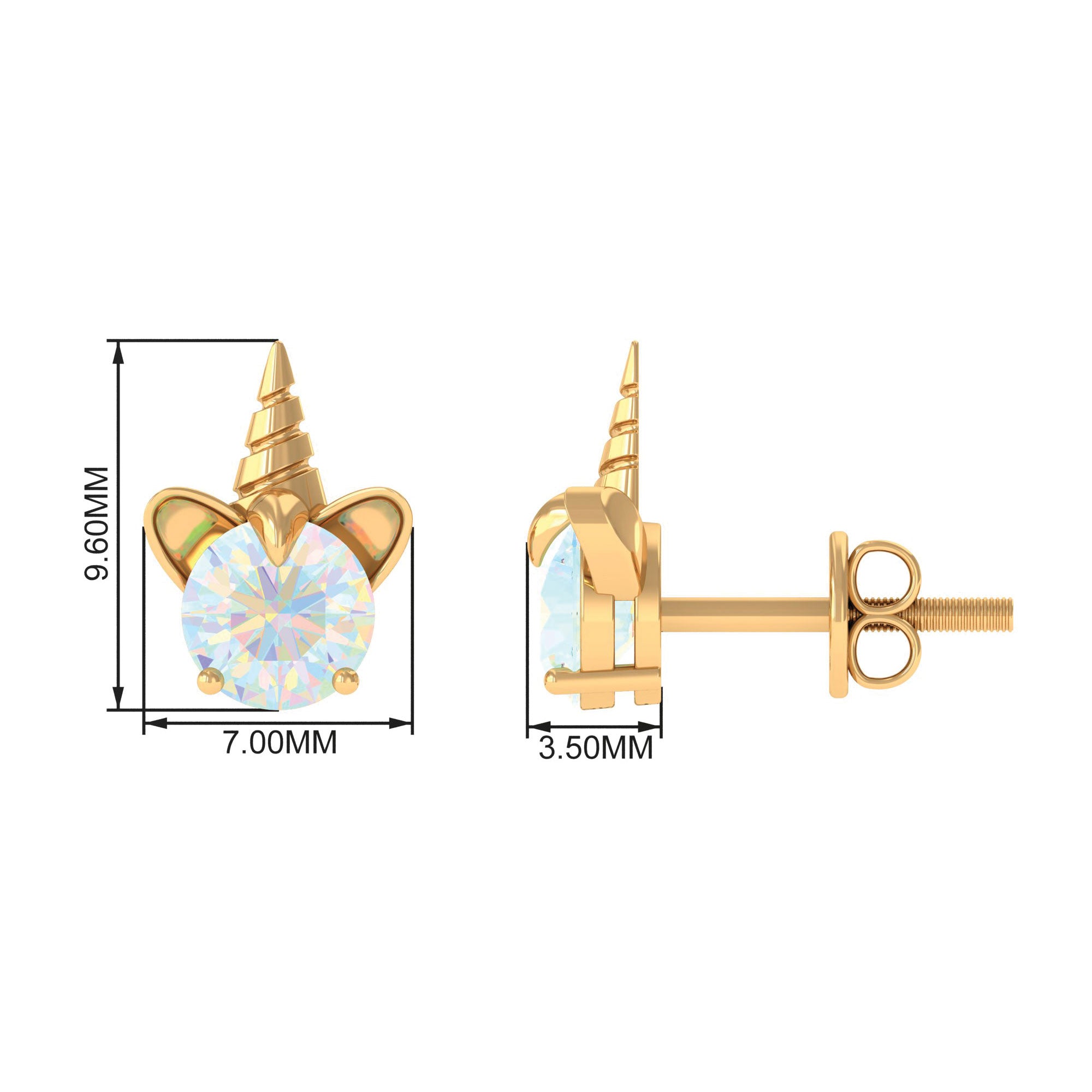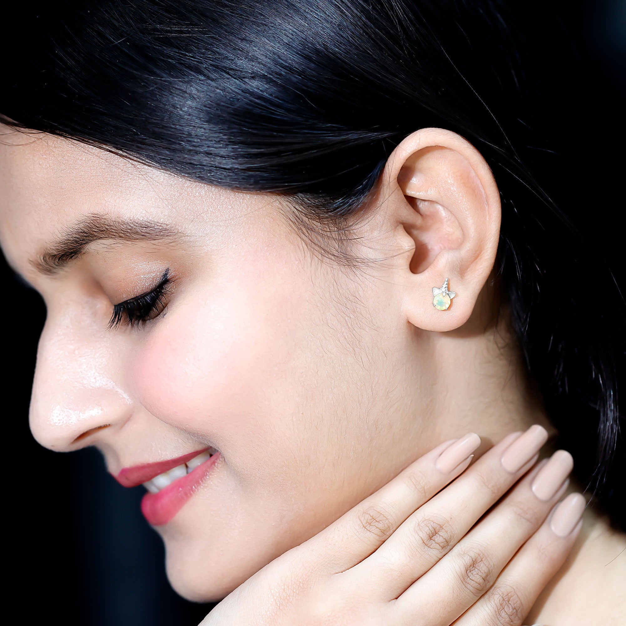 1 CT Ethiopian Opal Unicorn Solitaire Stud Earrings in Gold