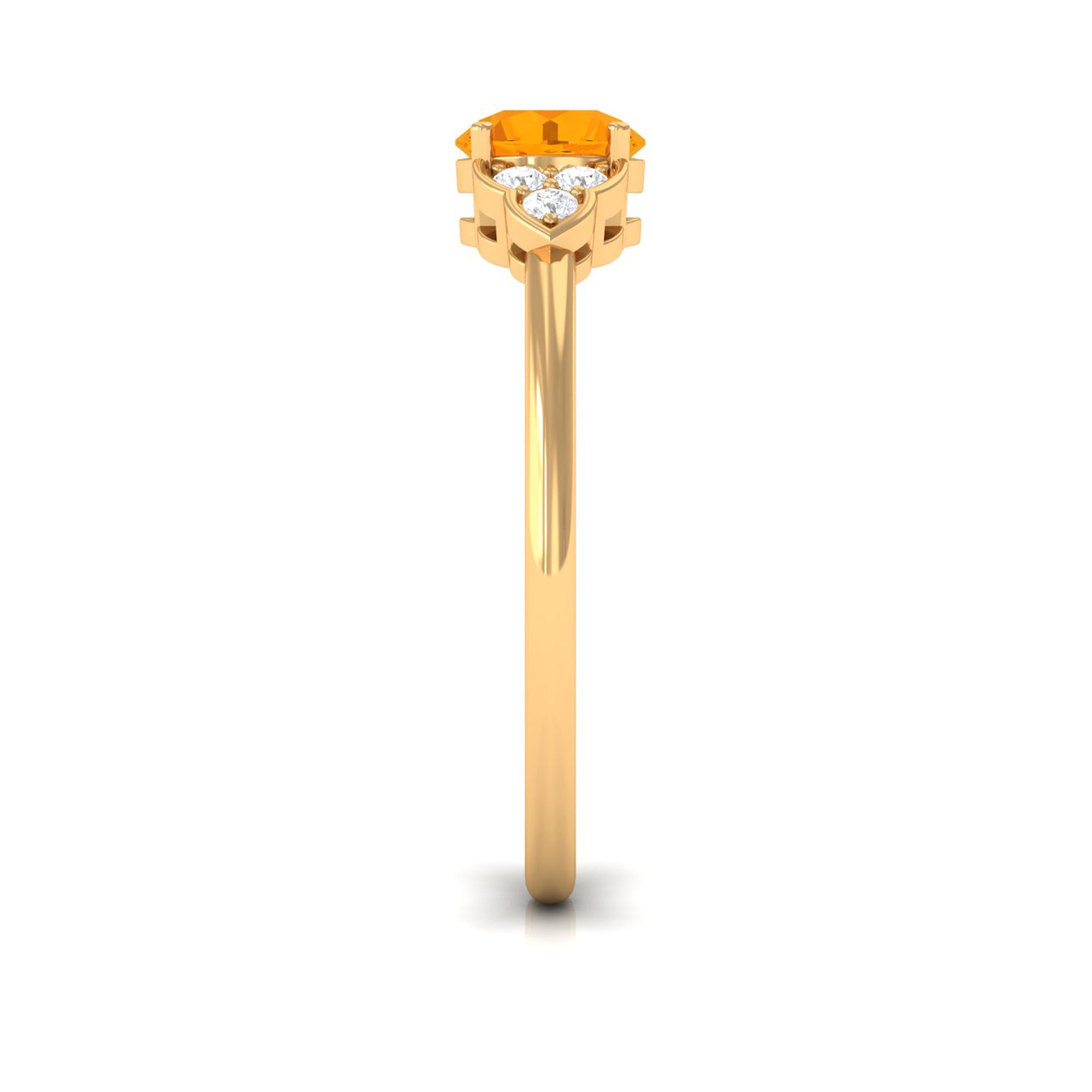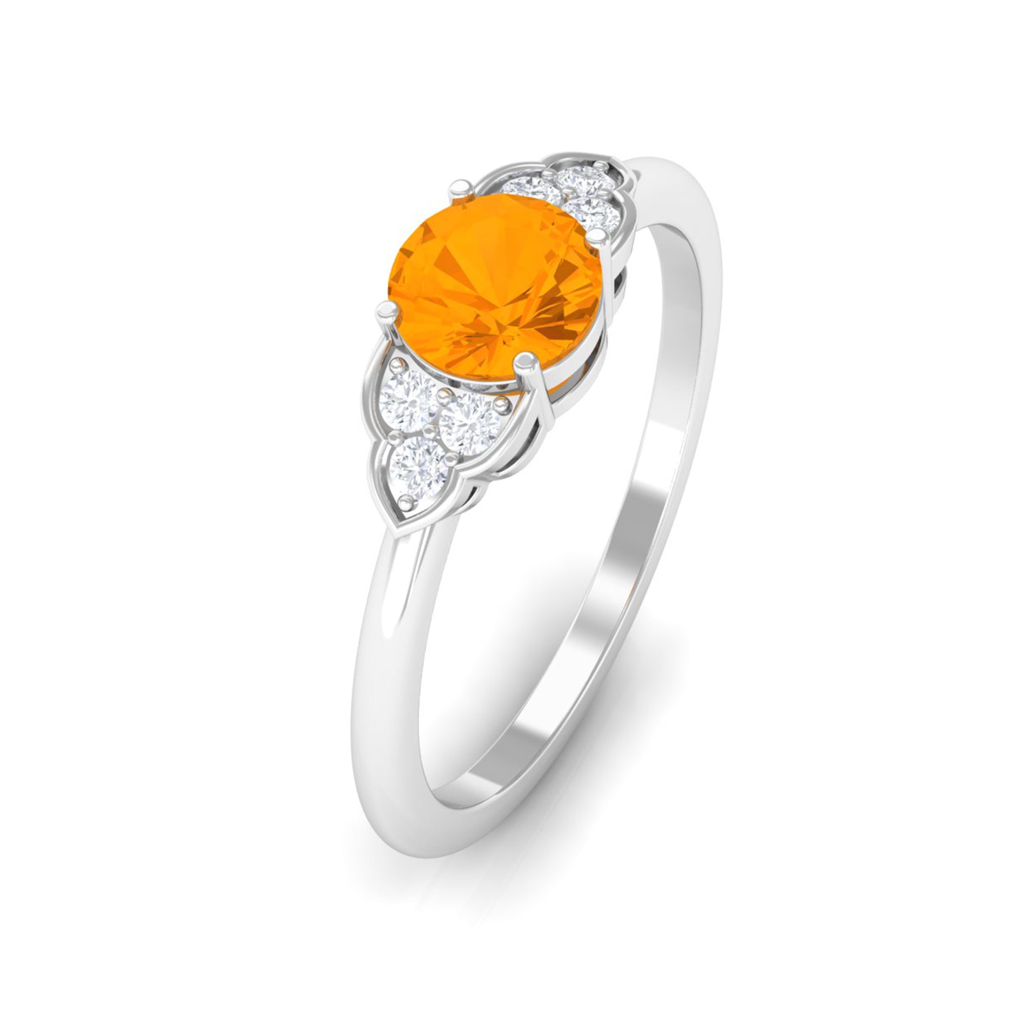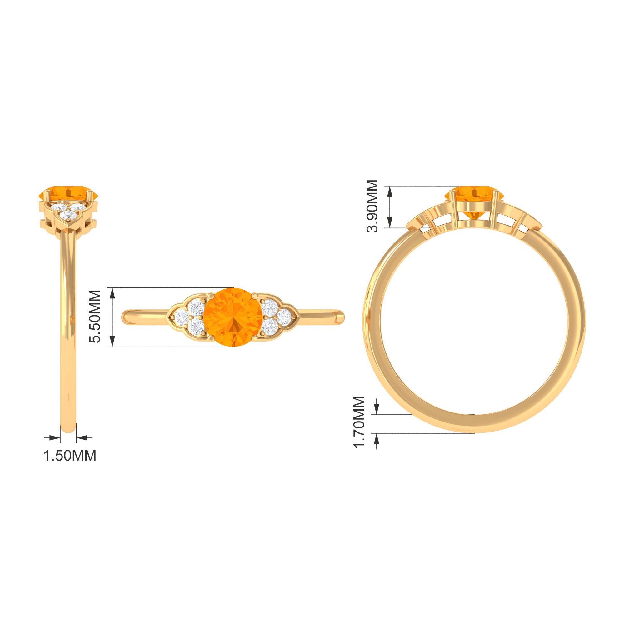 Beautifully designed for your loved one, this Engagement ring is adorned with Round Shape Fire Opal in Prong setting and Diamond Trio accent. Gift this charming ring to your partner on the special occasion.