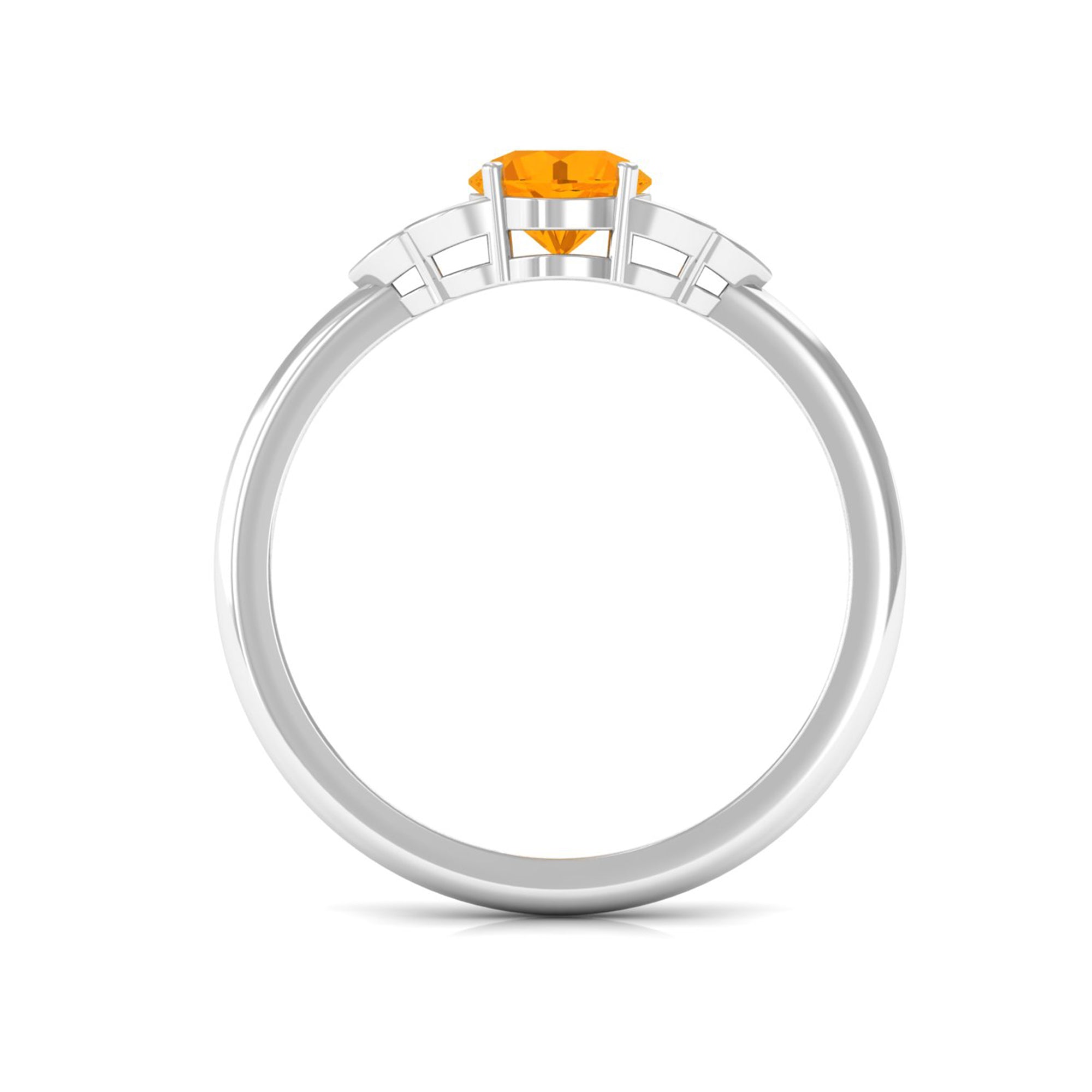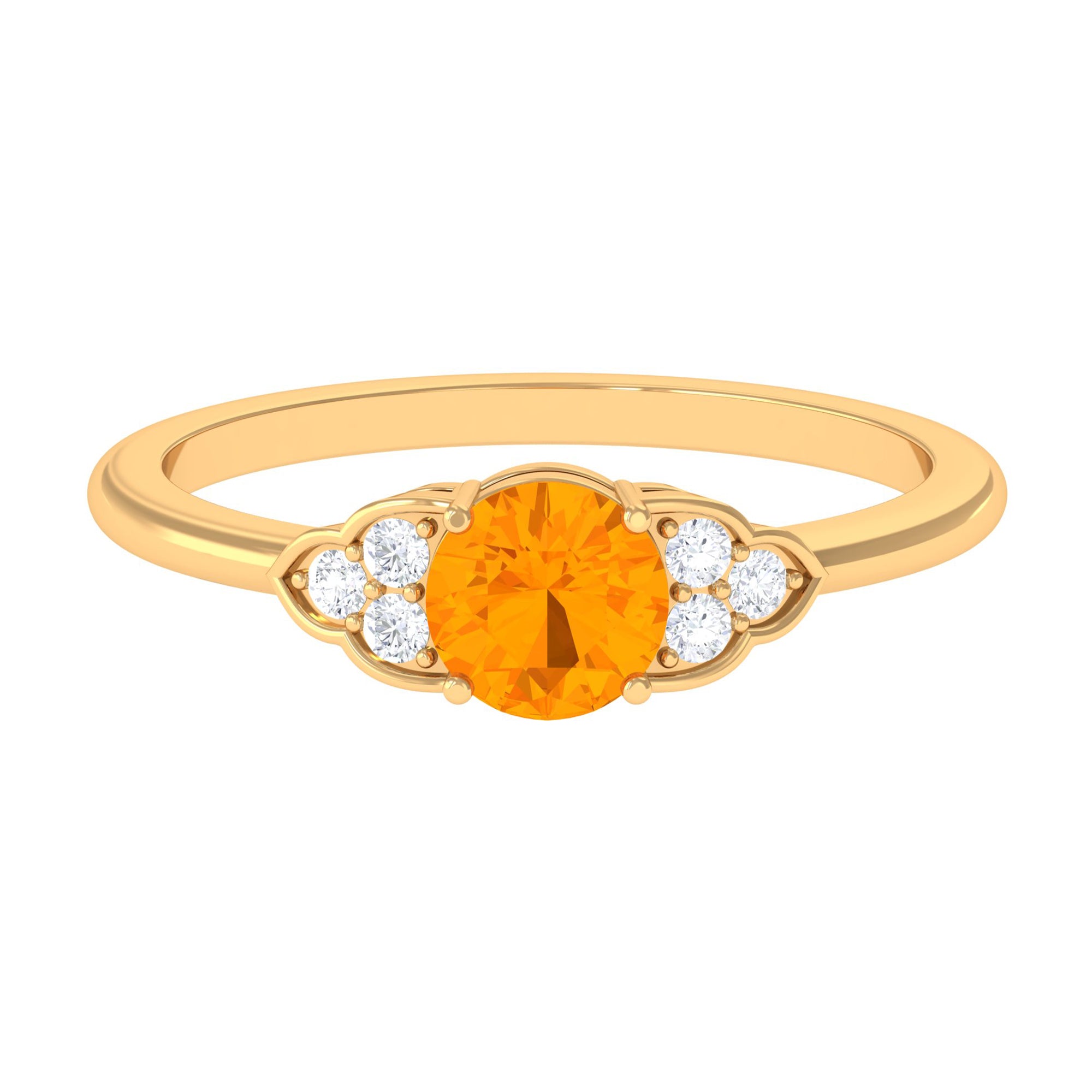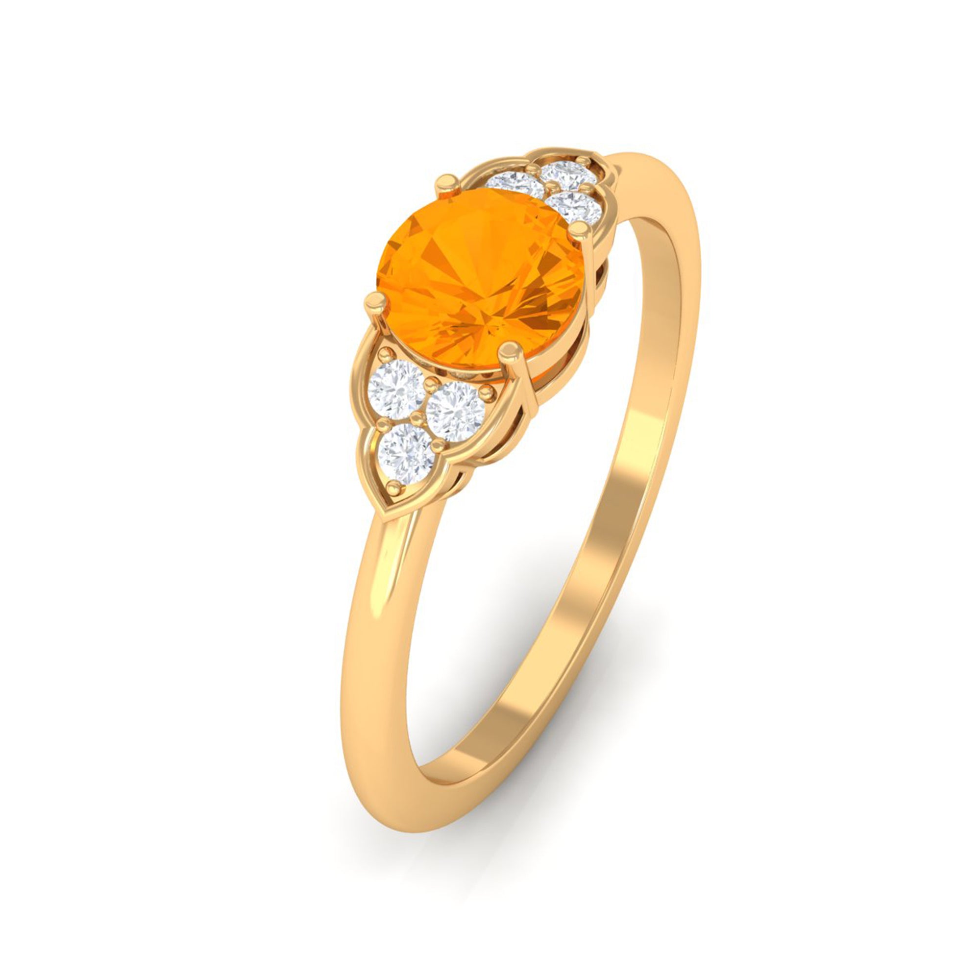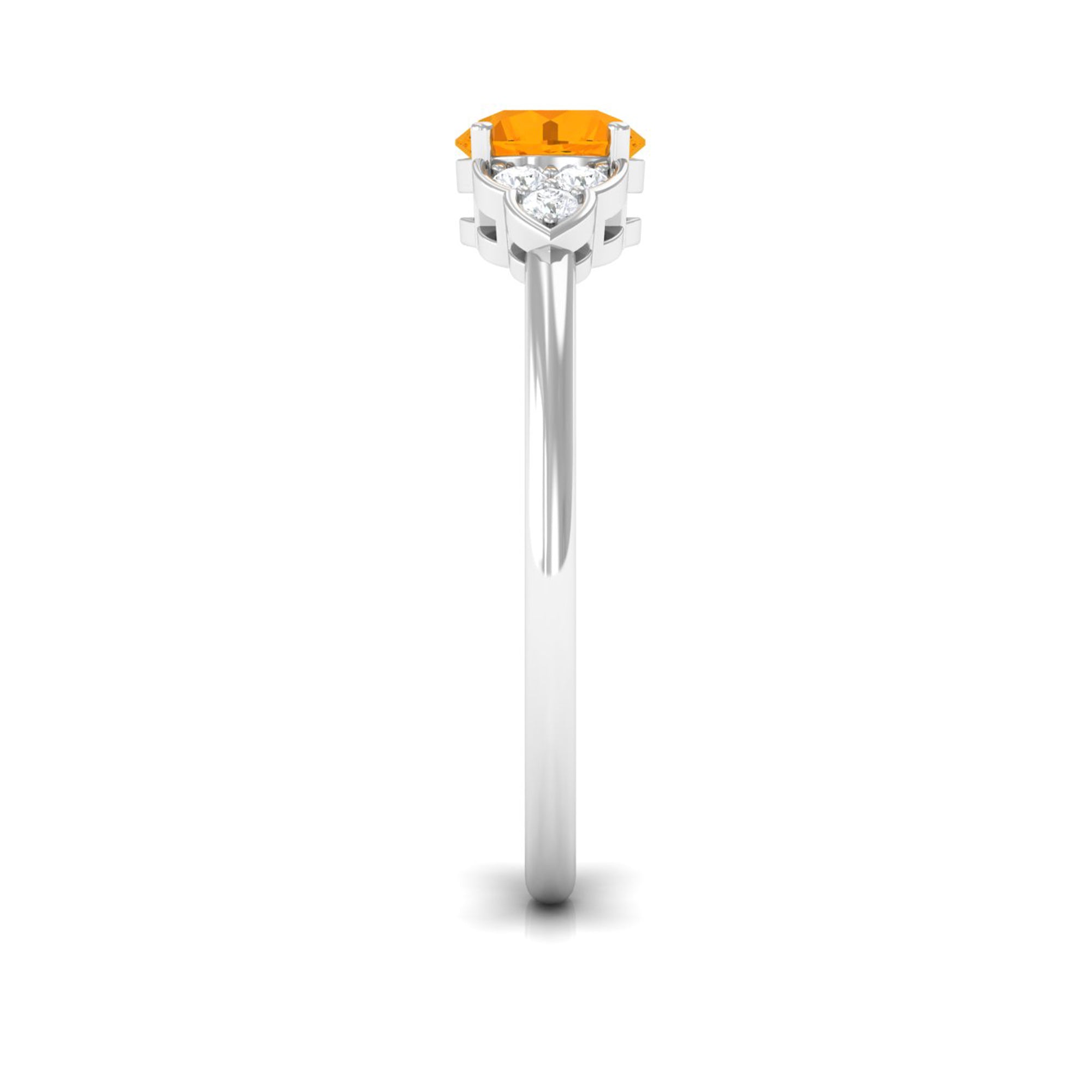 Beautifully designed for your loved one, this Engagement ring is adorned with Round Shape Fire Opal in Prong setting and Diamond Trio accent. Gift this charming ring to your partner on the special occasion.