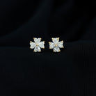 Uniquely crafted floral stud earrings with four heart-shaped moissanites in prong settings. Classic, trendy, and effortlessly radiant.