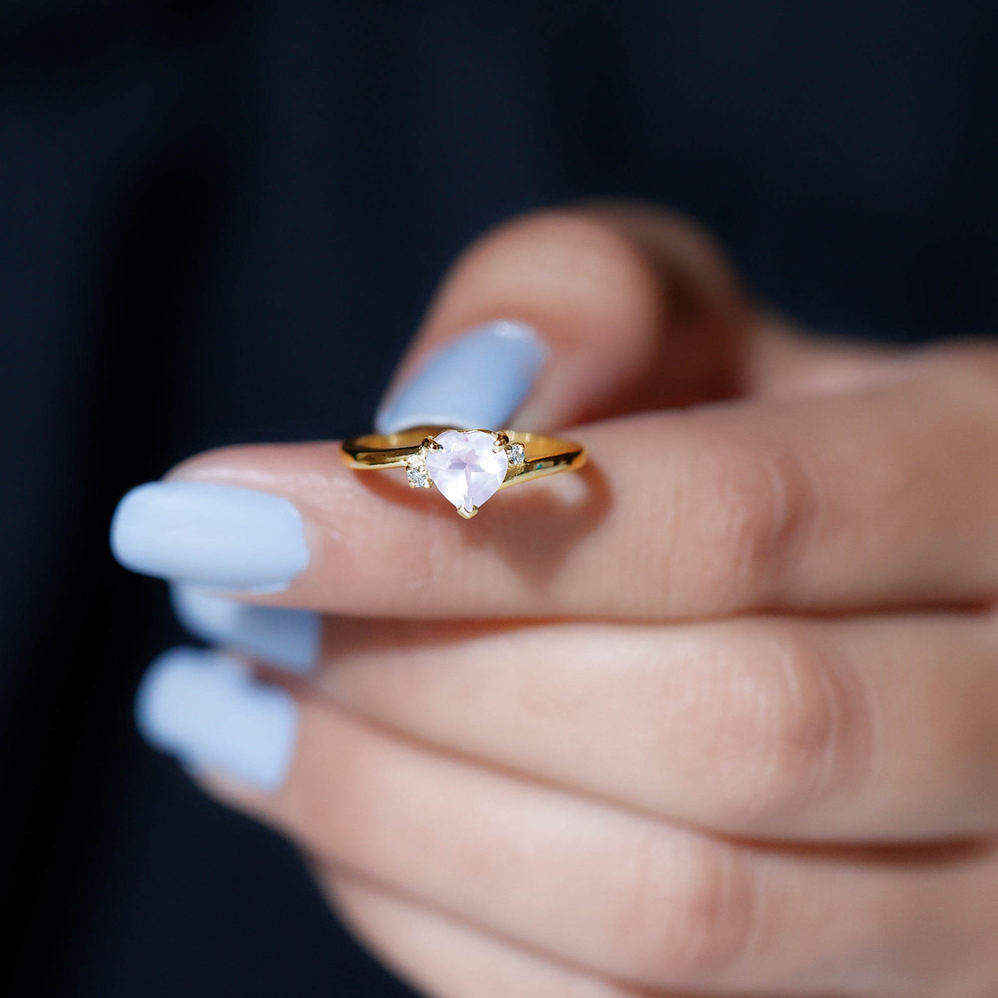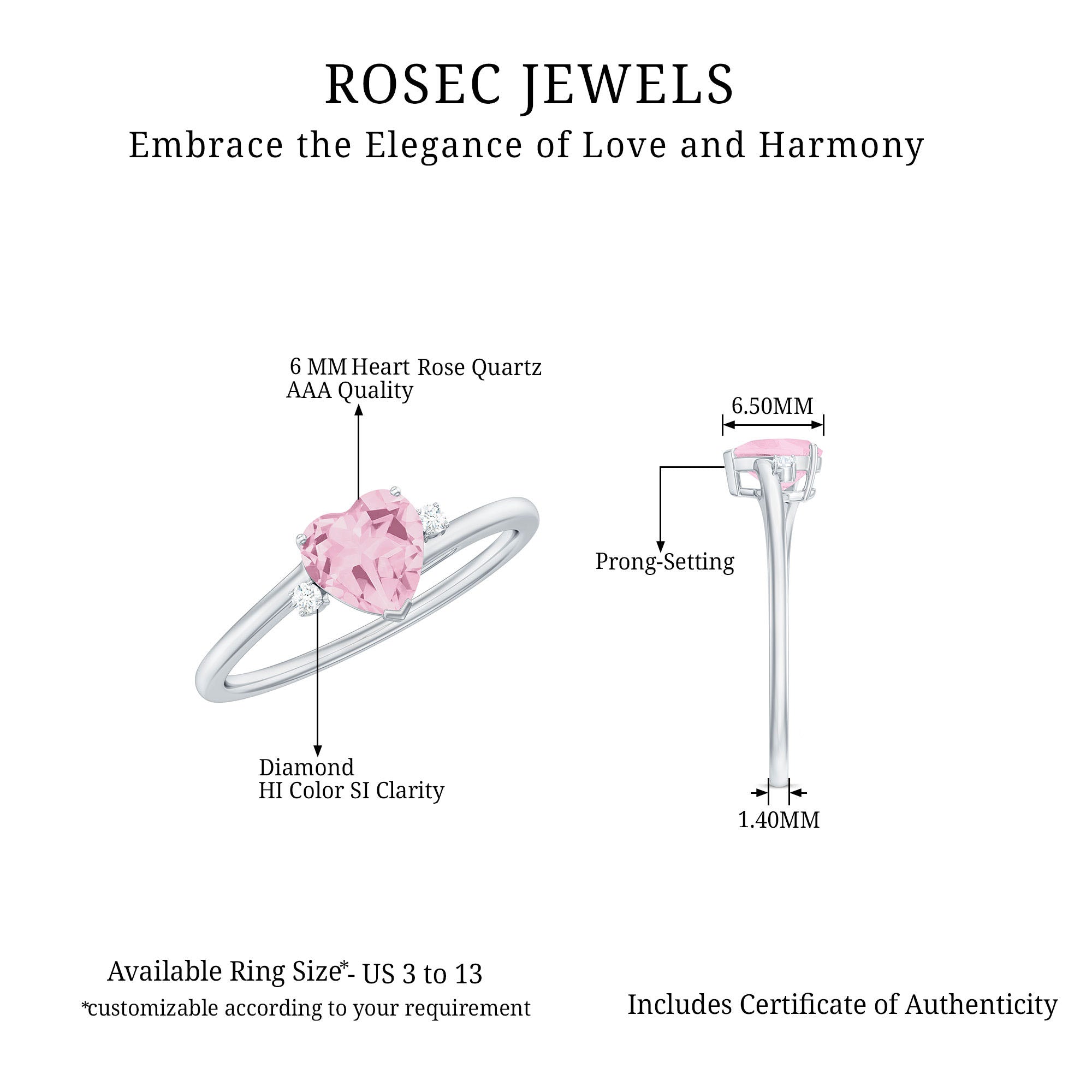 1 CT Heart Shape Rose Quartz Solitaire Promise Ring with Diamond