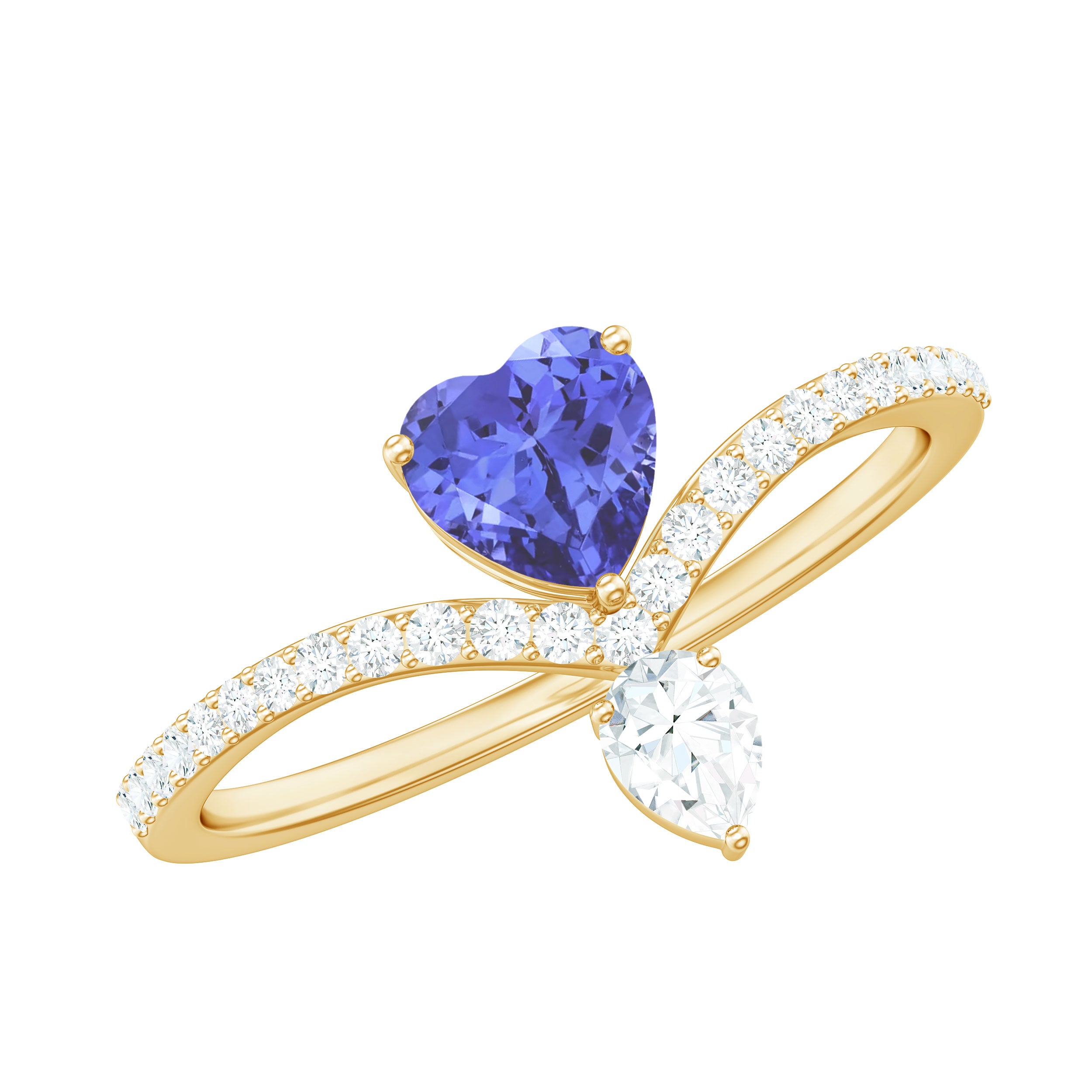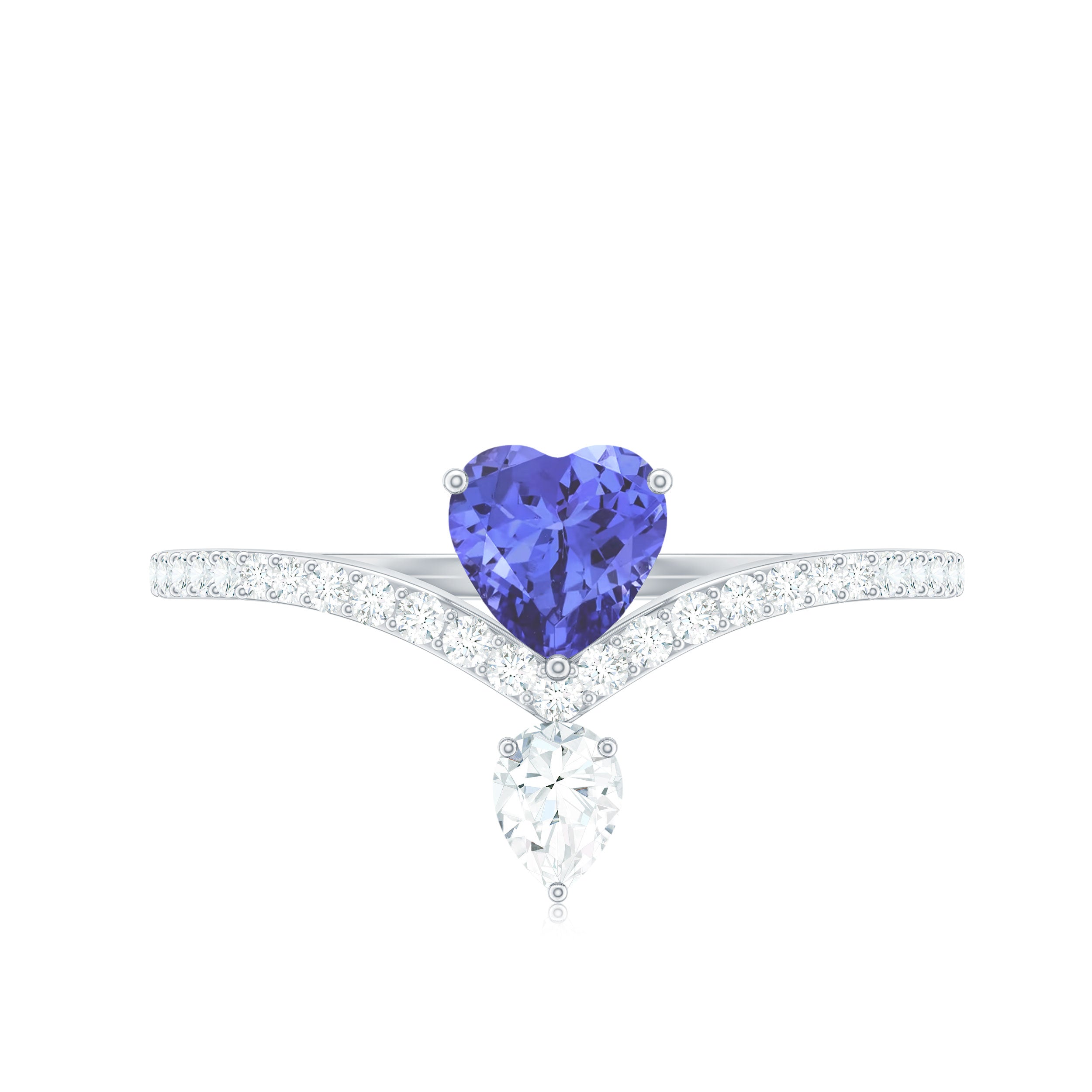 1 CT Heart Tanzanite Designer Solitaire Engagement Ring with Diamond Accent