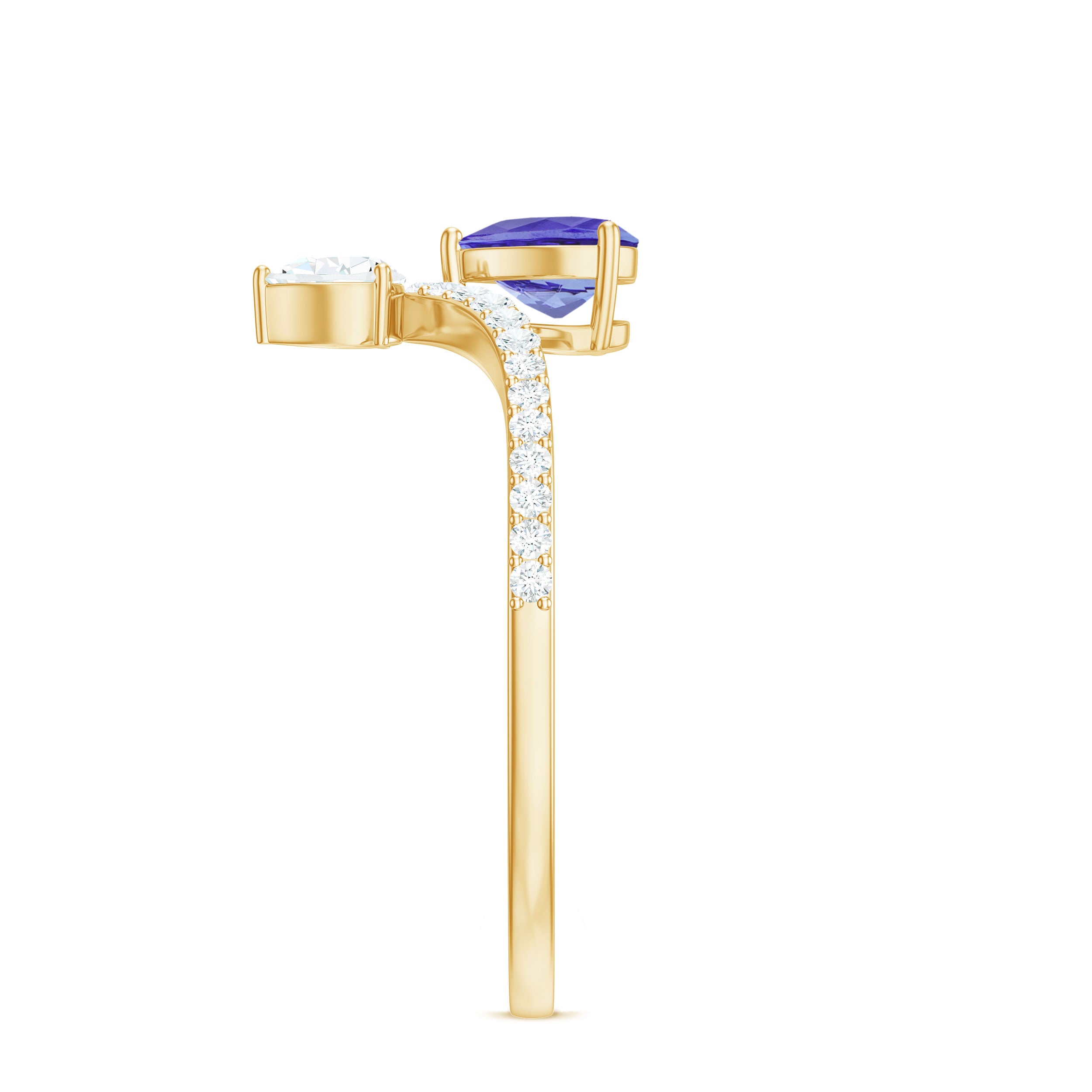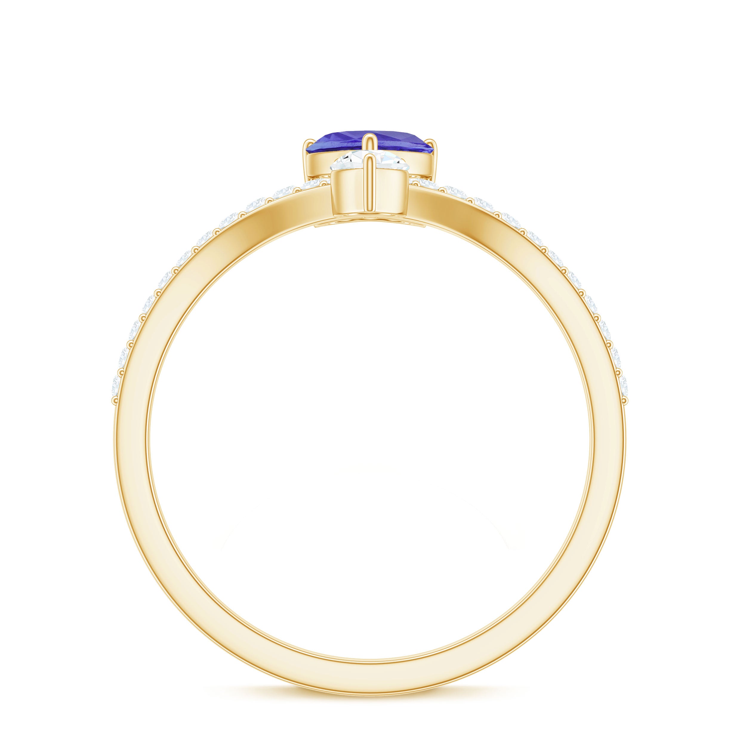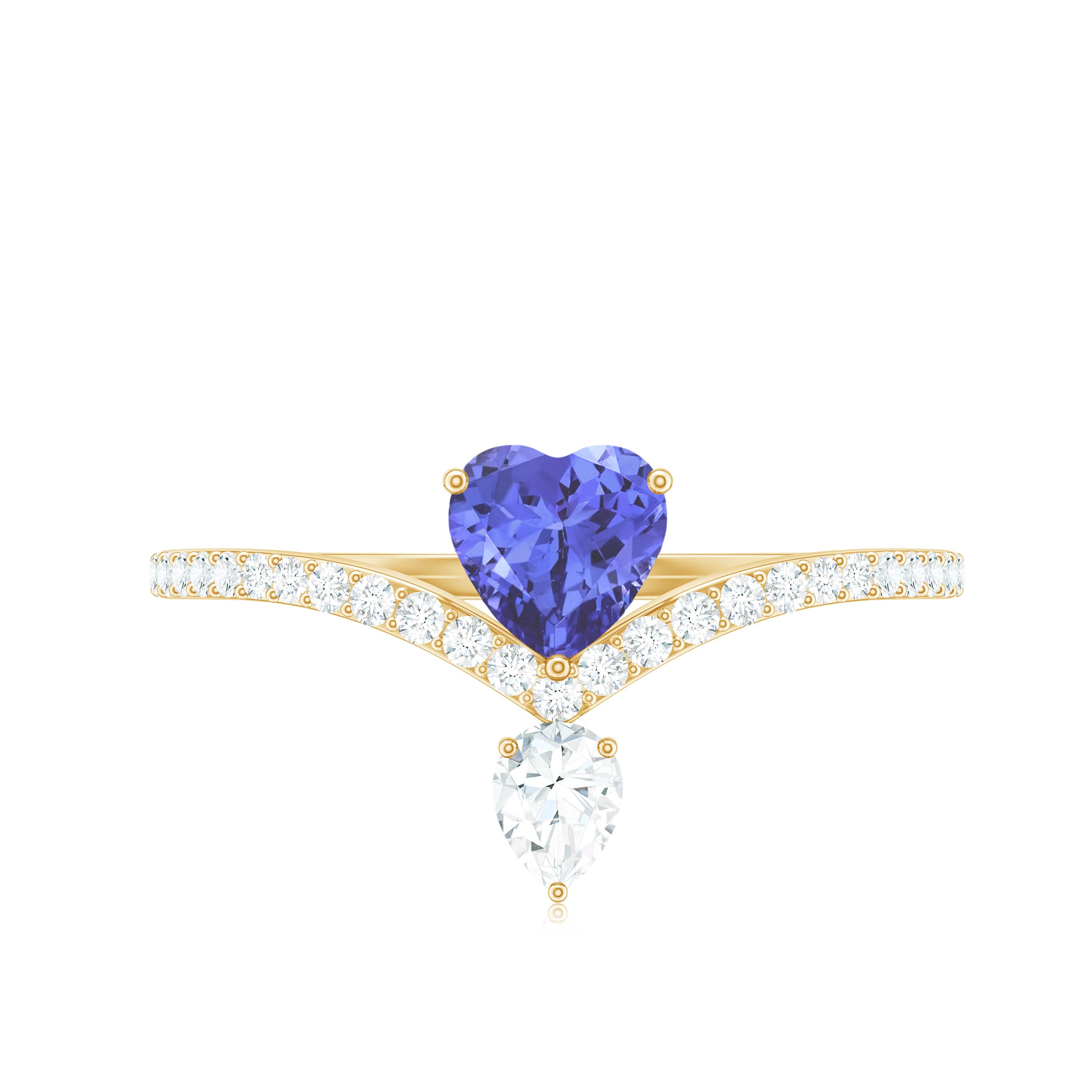 Strike an eye catching statement wearing this Bold Engagement Ring embedded with Heart Shape Tanzanite as Solitaire with Pear and Round Diamond Accent. Having been crafted in Gold, this Designer Solitaire Ring is perfect for all women.