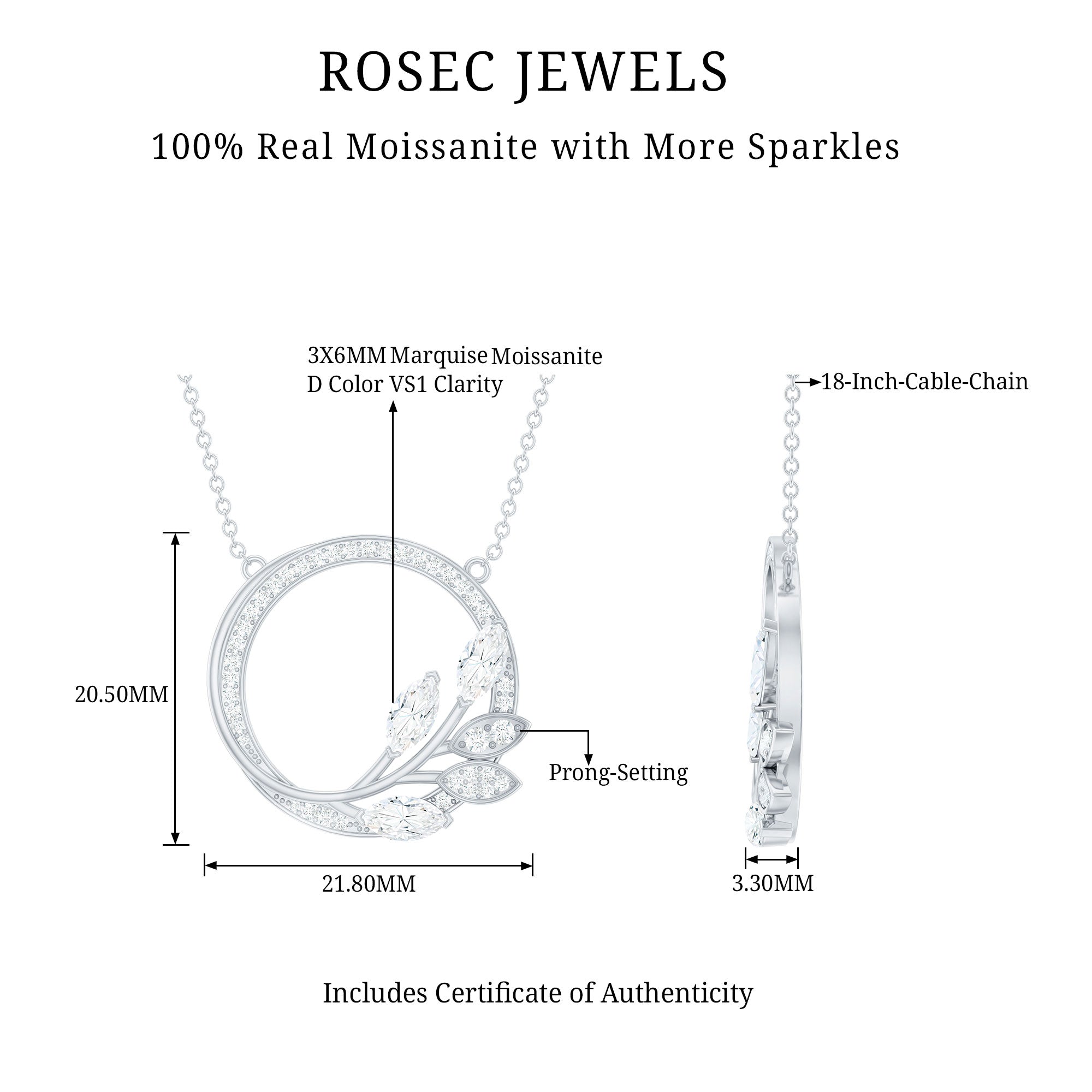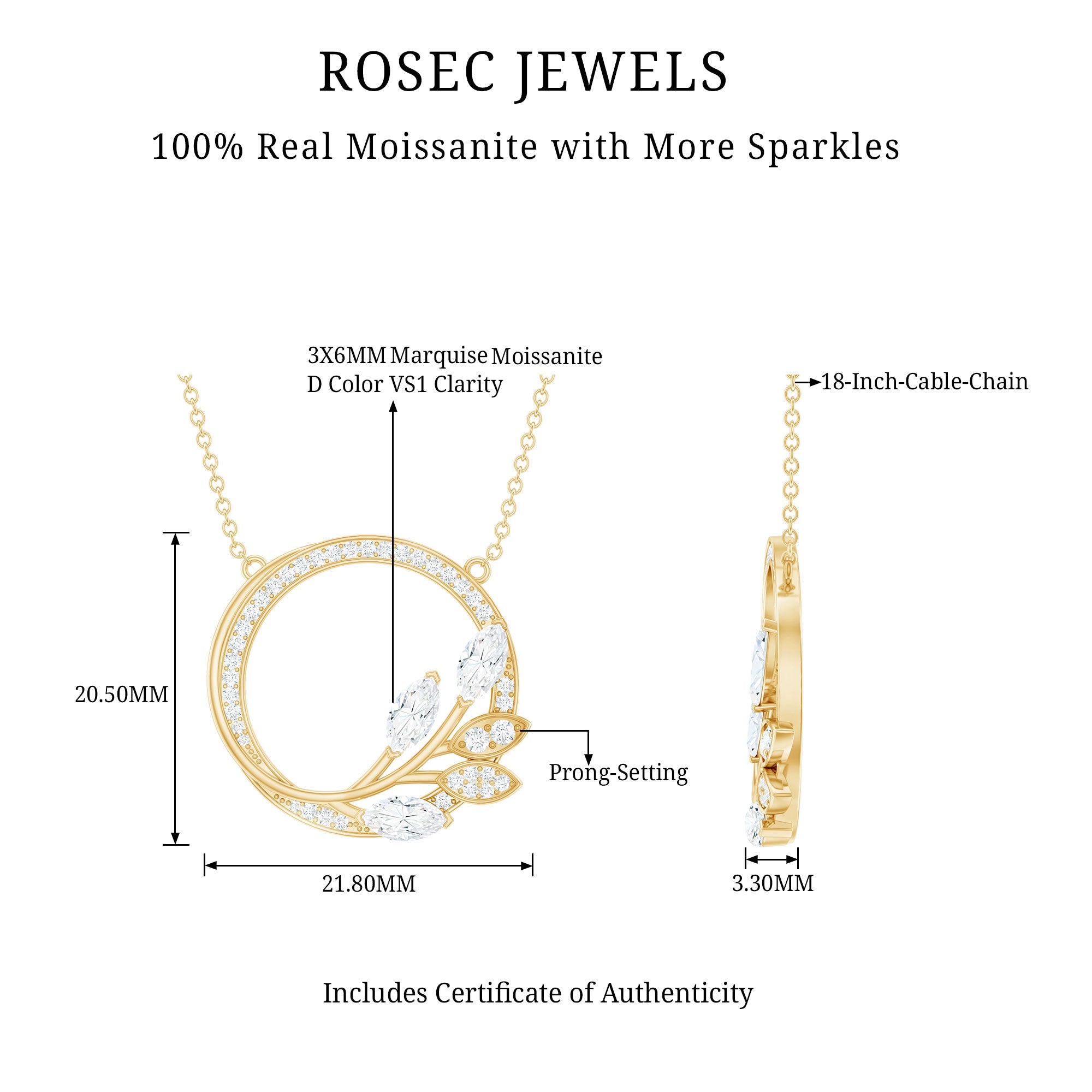 Show your love in the most elegant way with this beautiful Leaf Pendant Necklace, designed to be a meaningful and eye-catching piece of jewelry. The Open Circle Necklace features a delicate combination of marquise and round moissanite stones, all set securely in prong setting. These sparkling D-VS1 quality moissanites form a graceful eternity circle that represents never-ending love, while the leaf design adds a nature-inspired touch that symbolizes growth, harmony, and new beginnings. Crafted with great attention to detail, this Moissanite Eternity Necklace offers a radiant shine that stands out, making it perfect for everyday wear as well as special occasions. It comes with a cable chain fitted with a sturdy lobster clasp, allowing you to adjust the length easily for the perfect fit. This Nature Inspired Necklace makes a thoughtful gift for your partner, especially for anniversaries, birthdays, or romantic celebrations. Its timeless design and symbolic meaning make it a piece she will cherish for years to come.