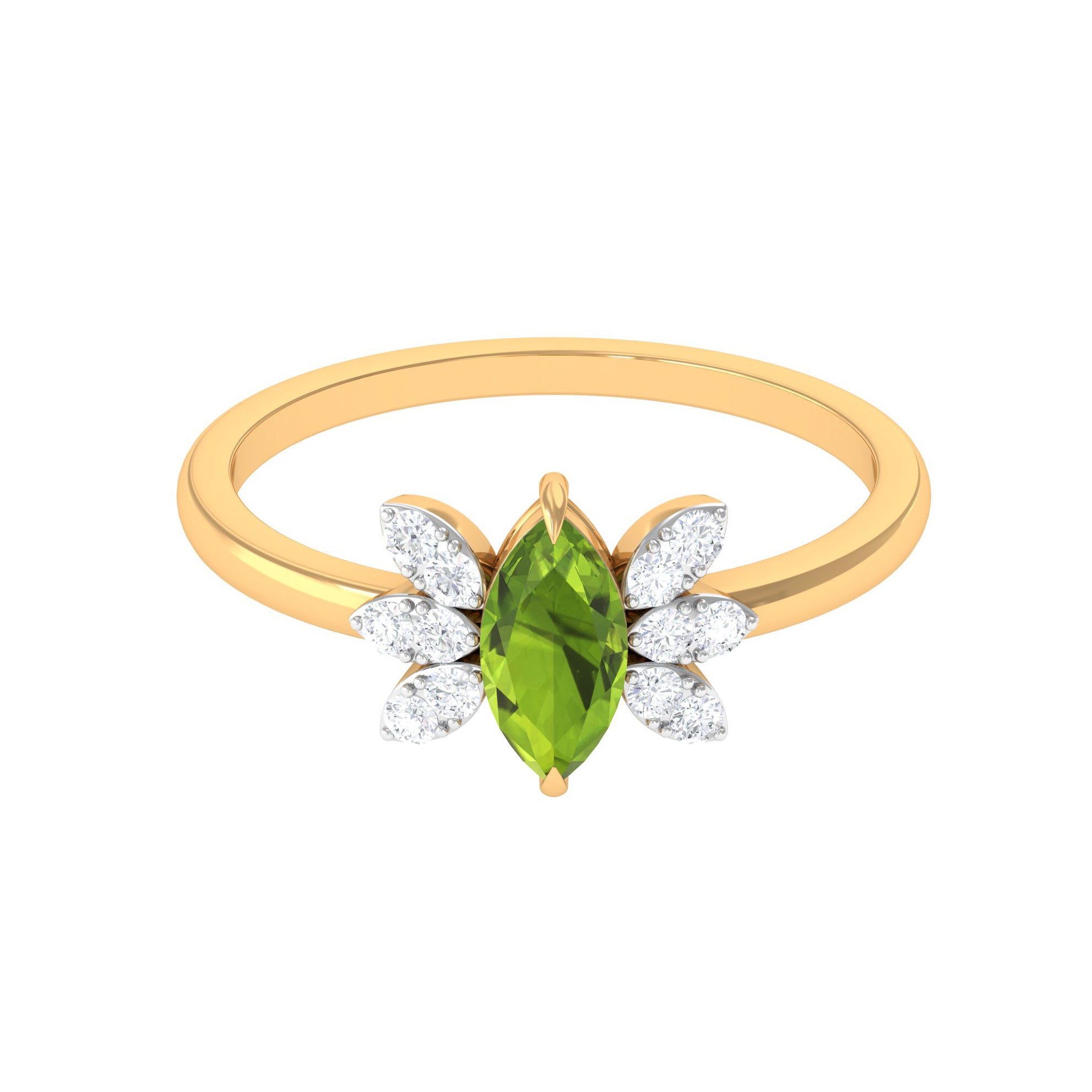 1 CT Marquise Cut Peridot Promise Ring with Diamond Stones