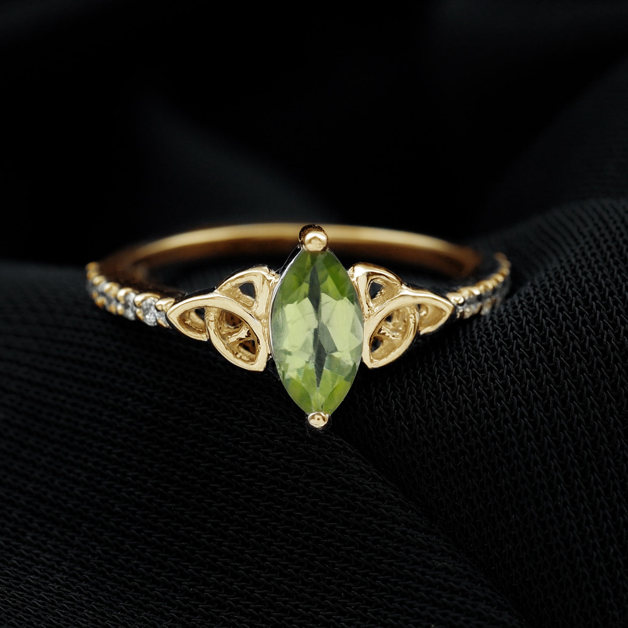 1 CT Marquise Cut Peridot Solitaire Celtic Ring with Diamond Side Stones