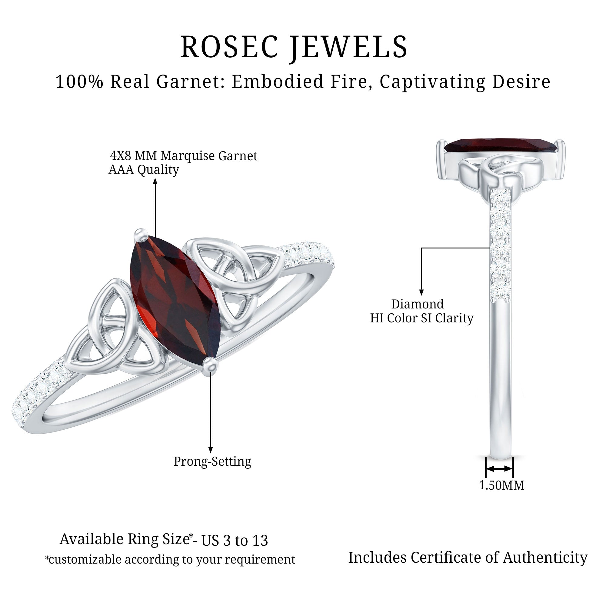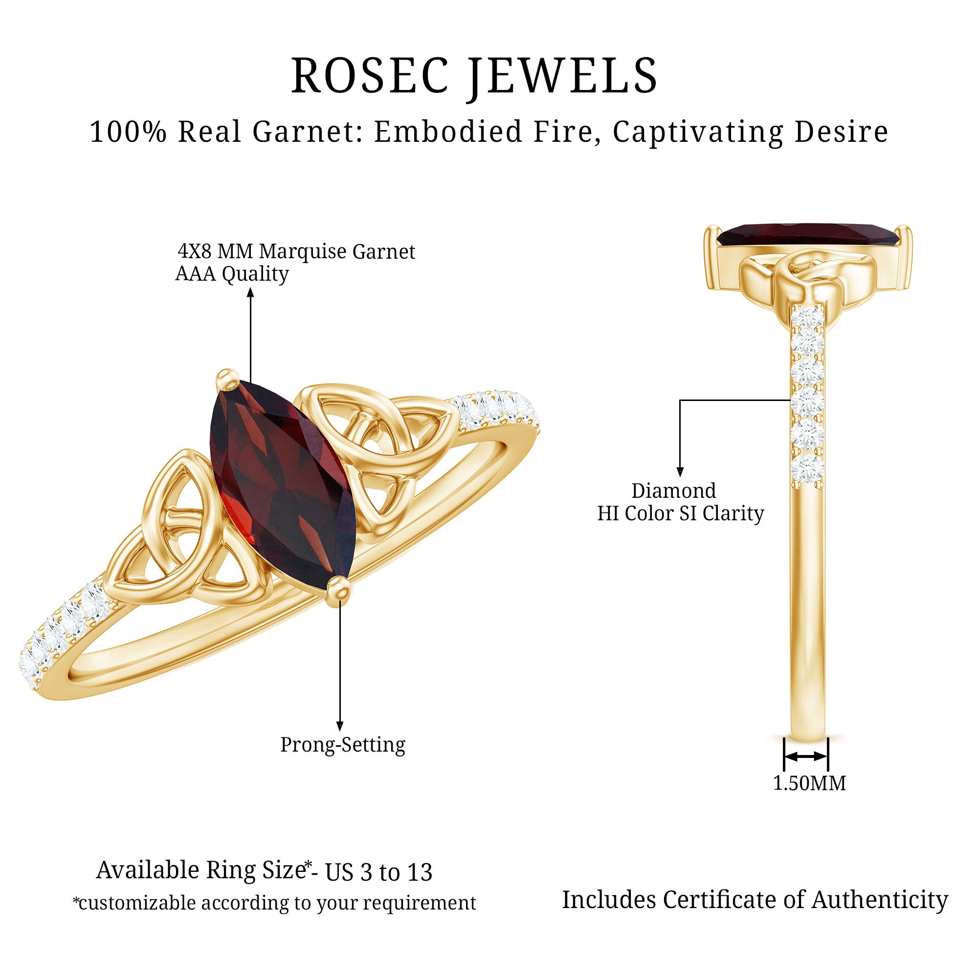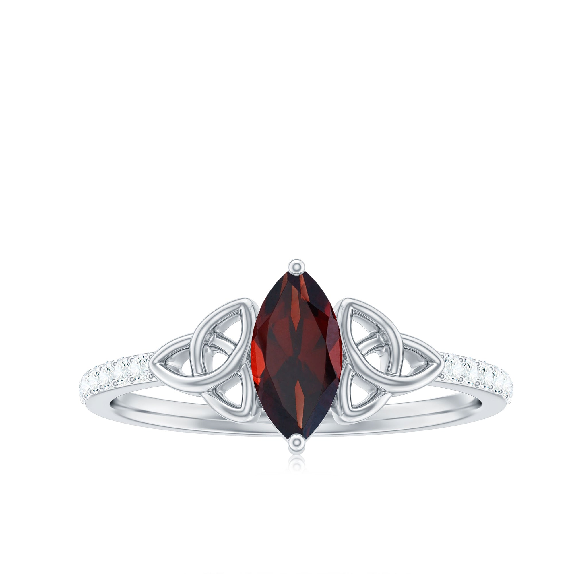 1 CT Marquise Cut Solitaire Garnet Celtic Knot Ring with Diamond