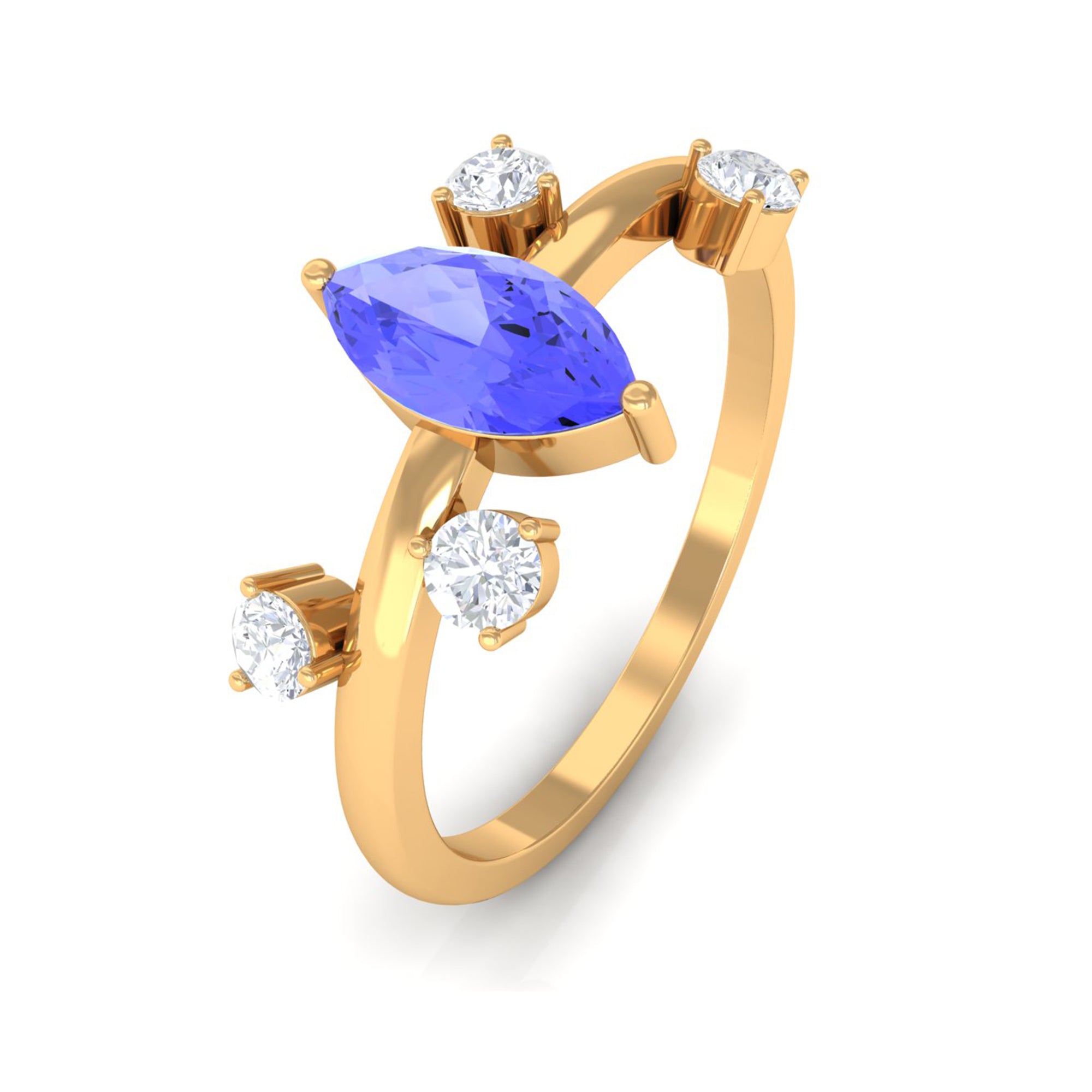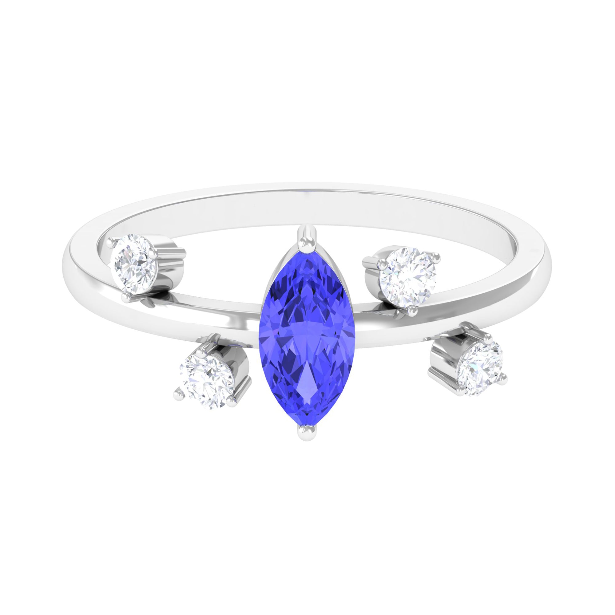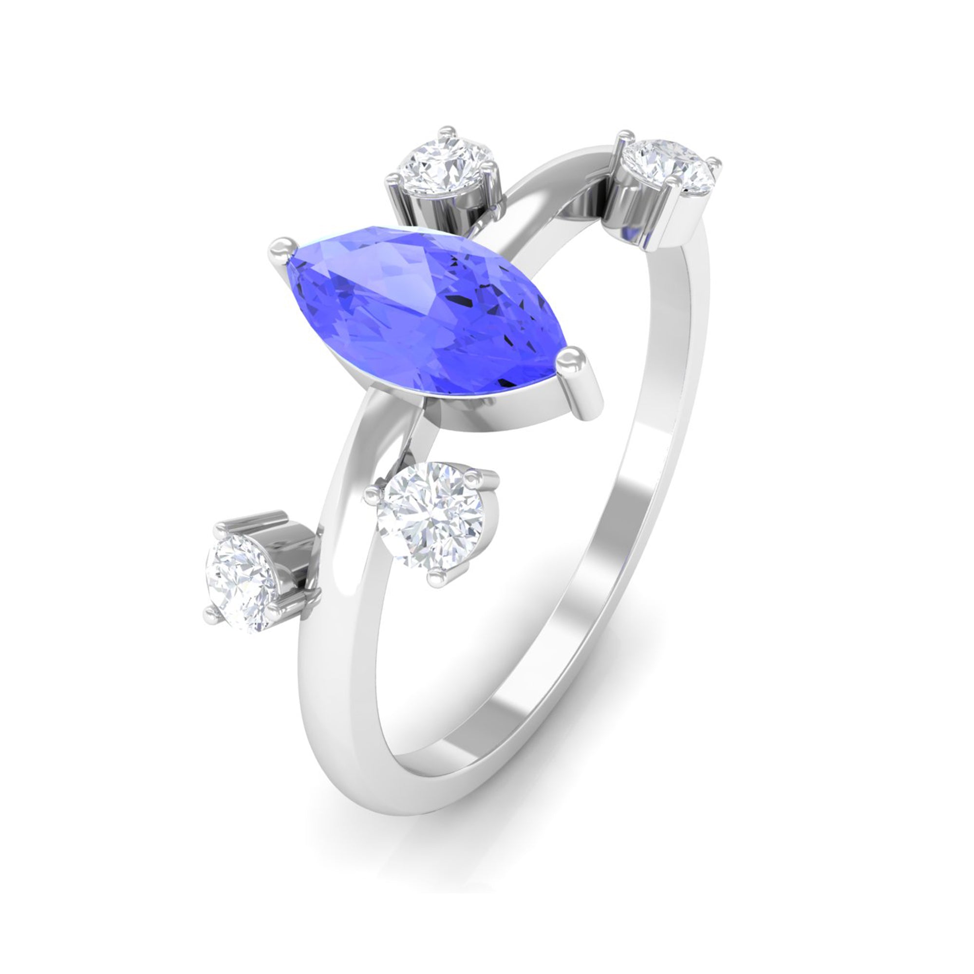 1 CT Marquise Tanzanite Minimal Solitaire Ring with Scatter Diamond