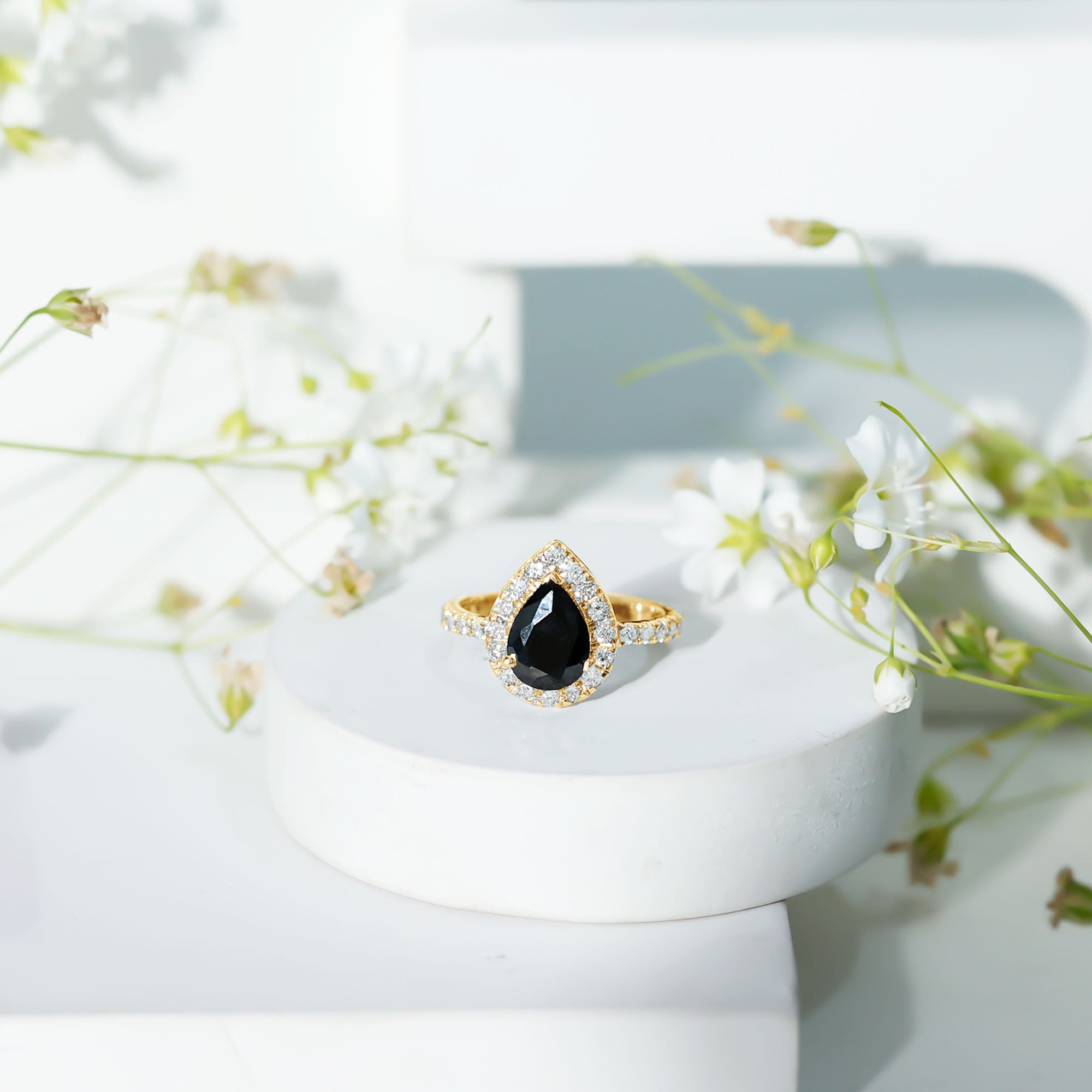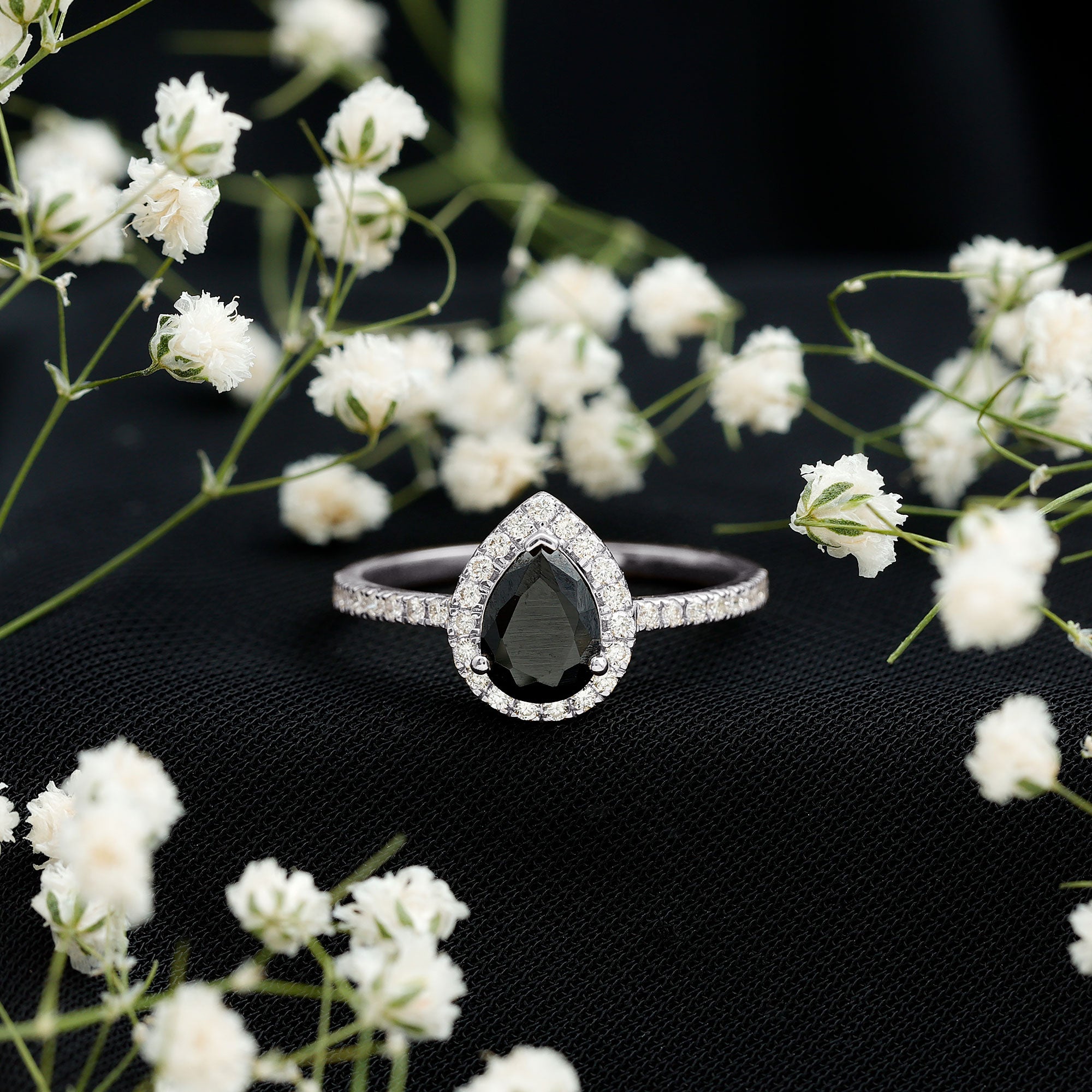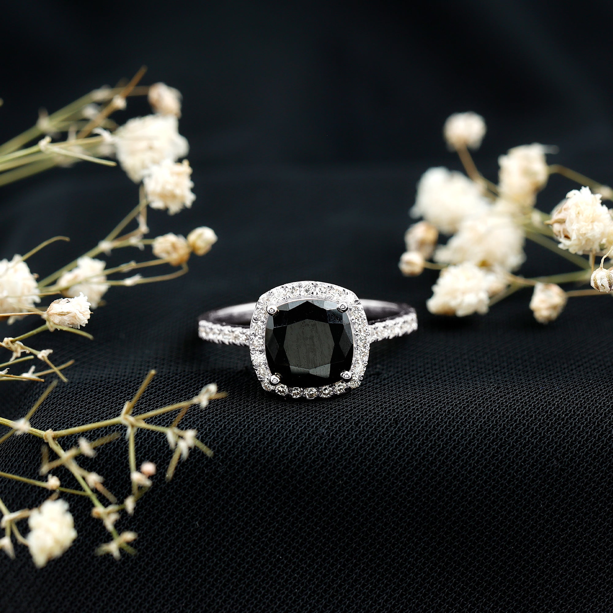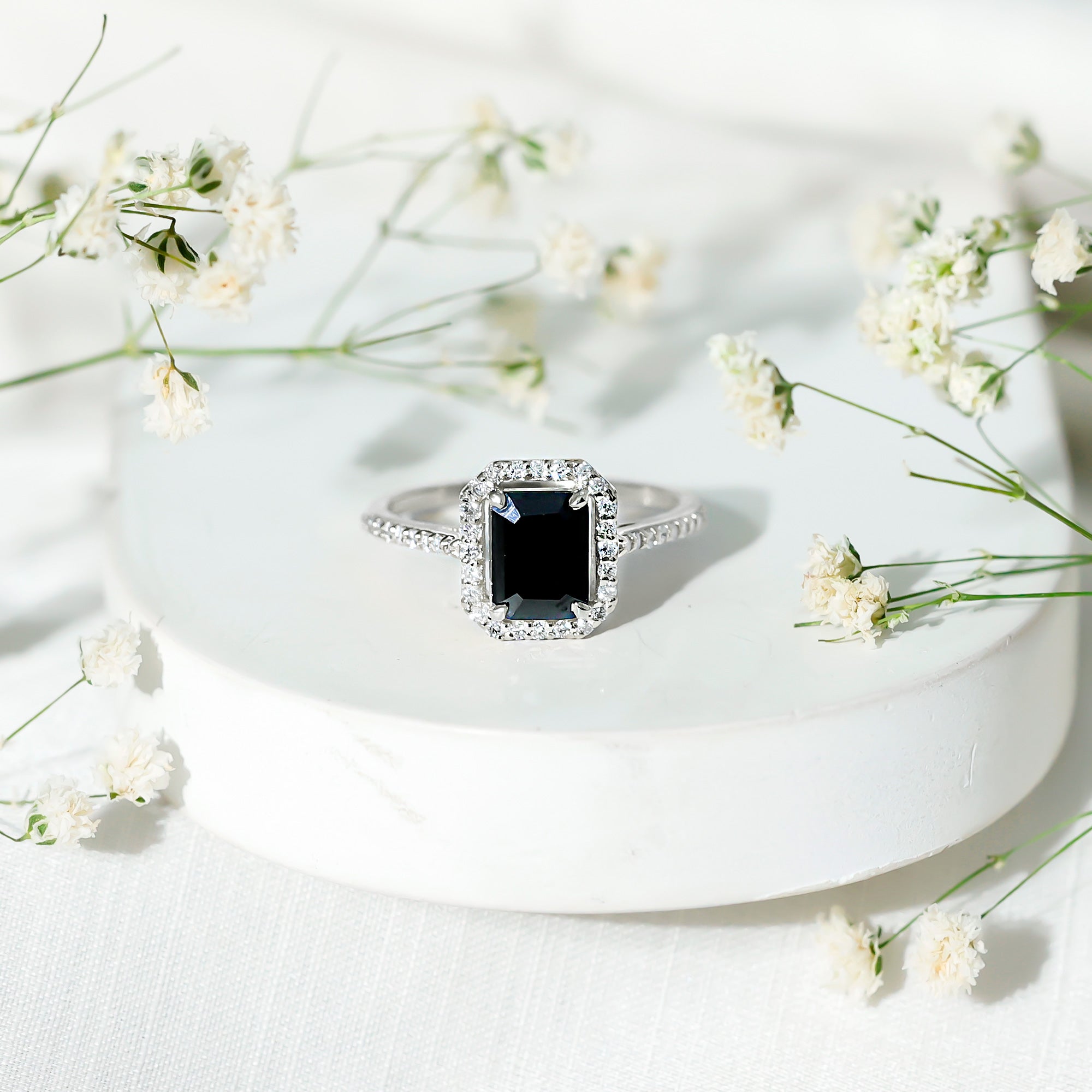 2. Lab Created Black Diamond Halo Engagement rings: Black diamond making the heart of the ring is surrounded by the accent of other shining gemstones, like moissanite or diamonds. The halo around the gemstone not only adds a sparkle, but offers it protection too.