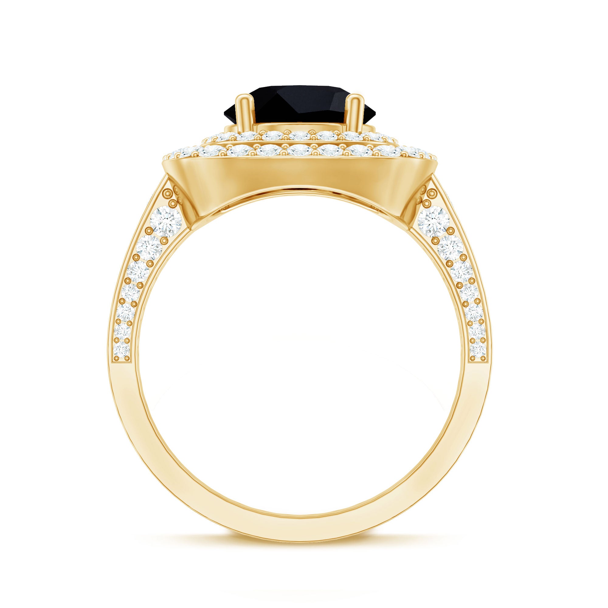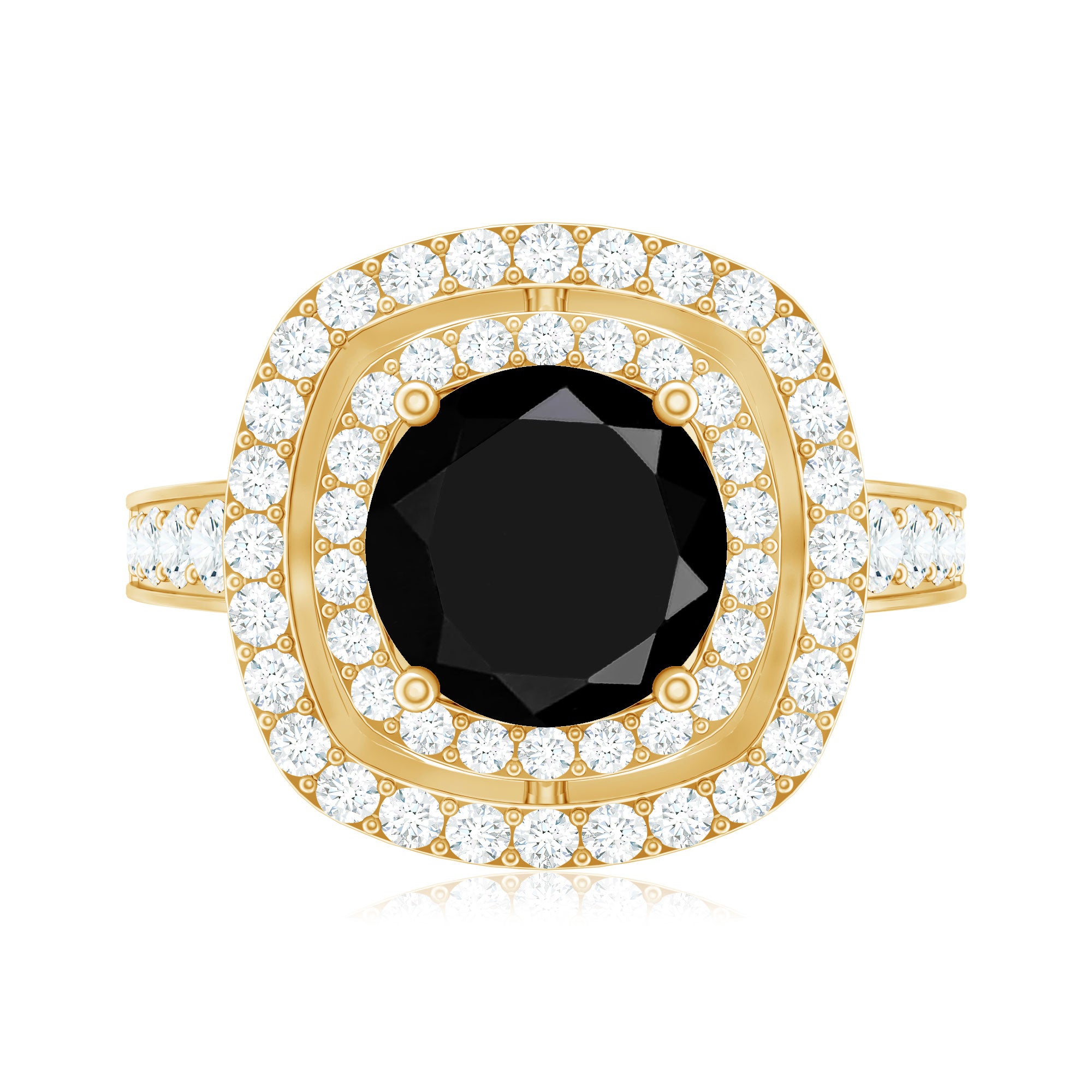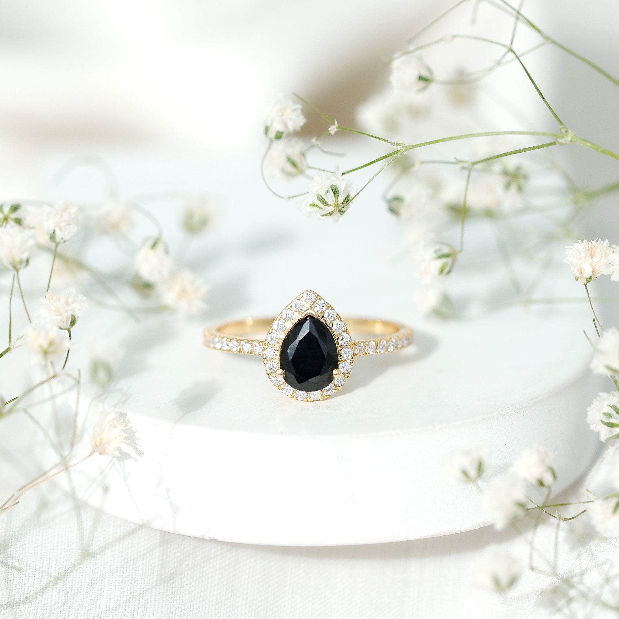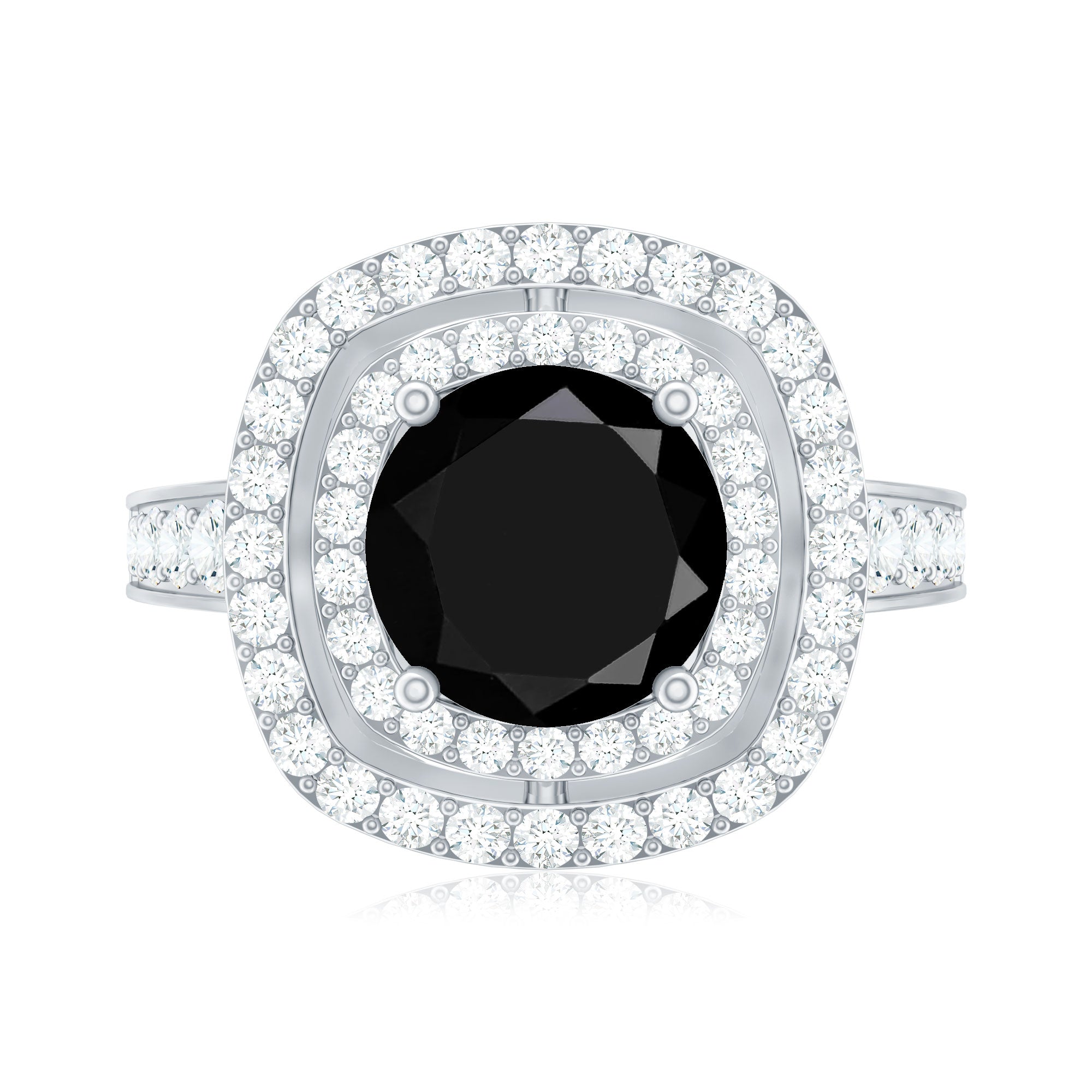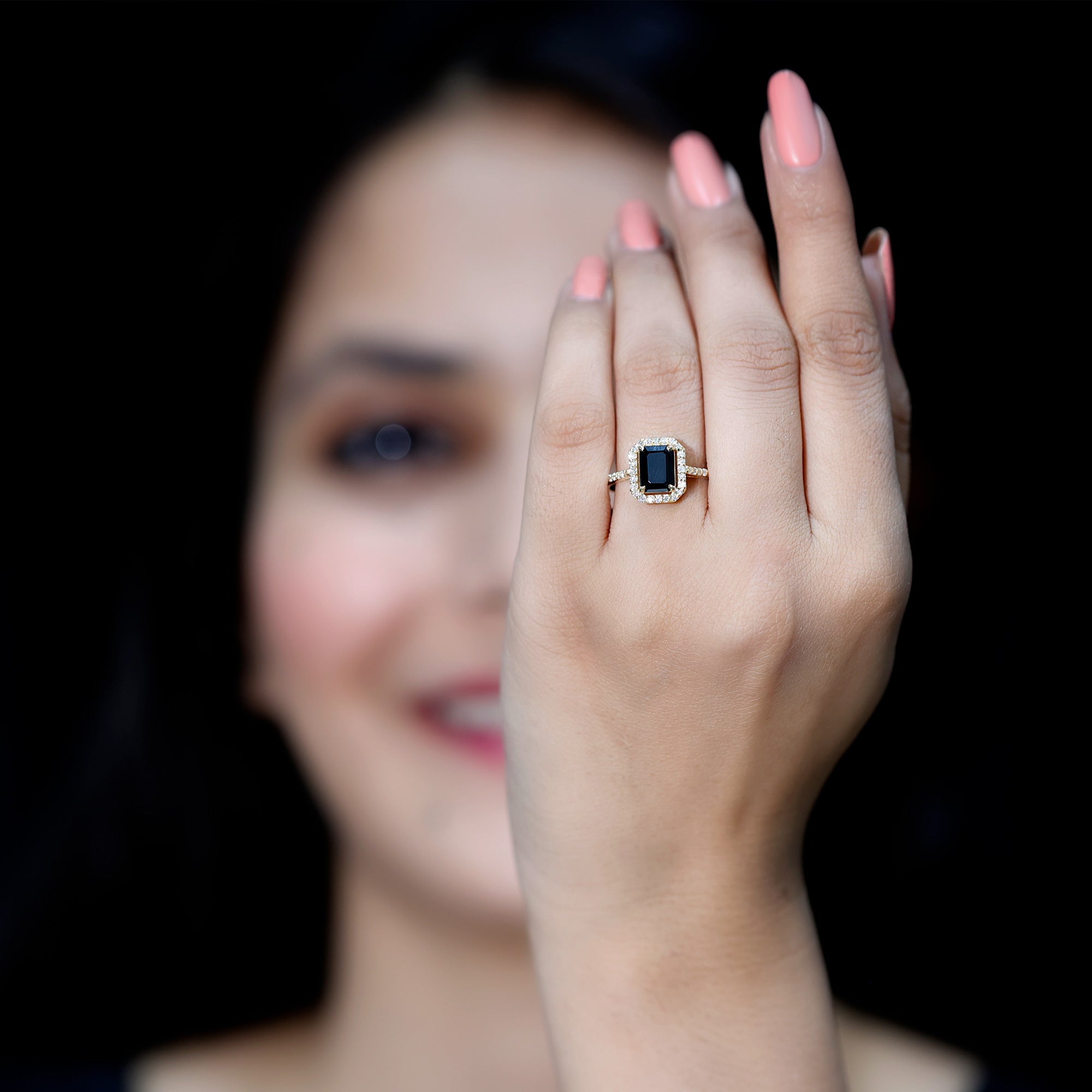 2. Lab Created Black Diamond Halo Engagement rings: Black diamond making the heart of the ring is surrounded by the accent of other shining gemstones, like moissanite or diamonds. The halo around the gemstone not only adds a sparkle, but offers it protection too.