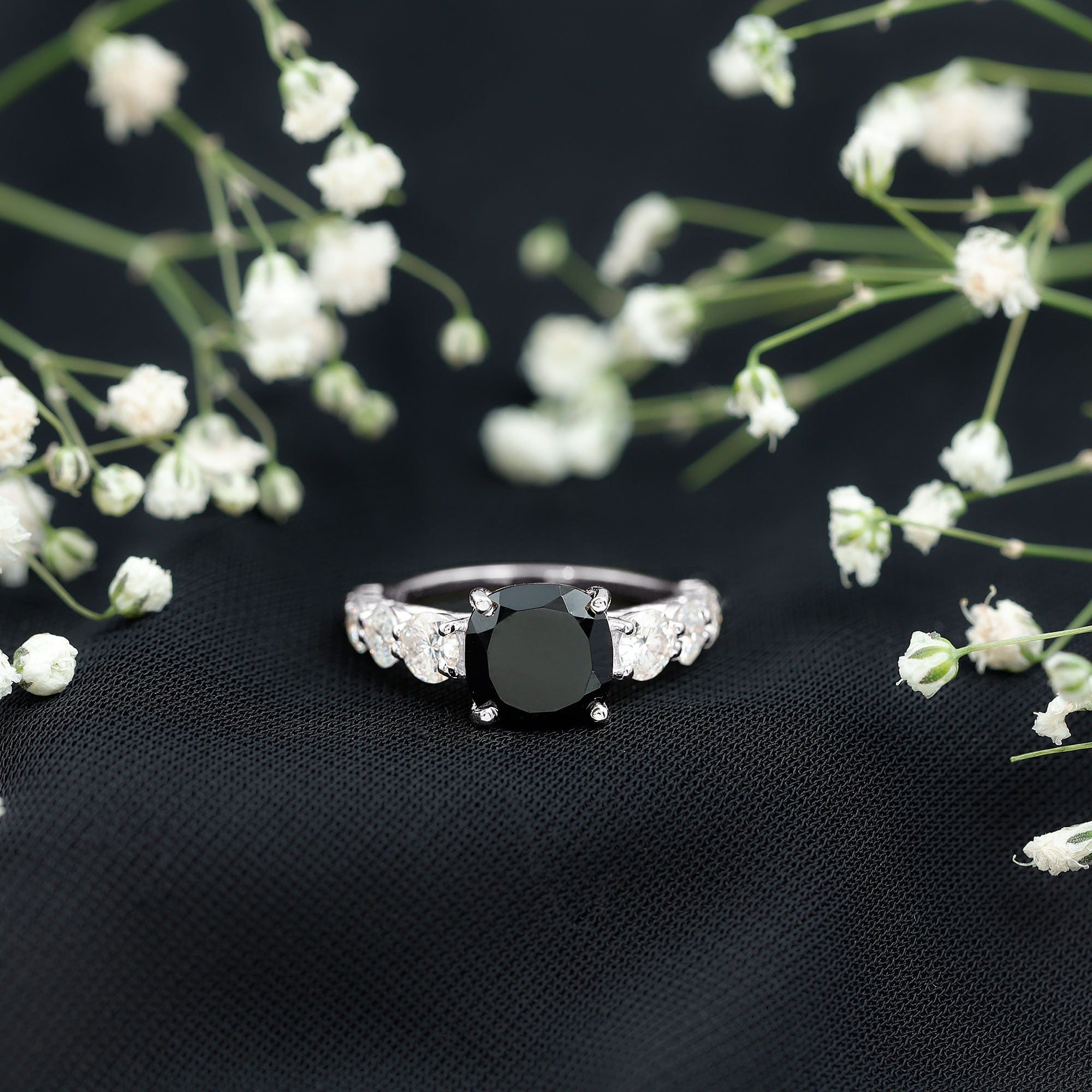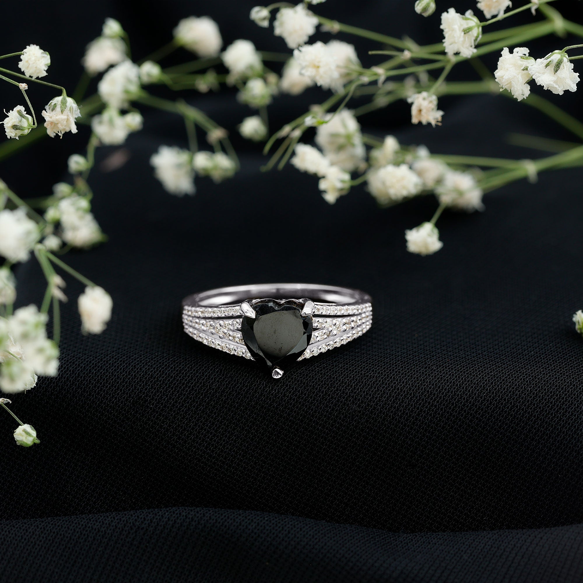 6. Lab Created Black Diamond Engagement Rings in Minimal Style: Cultured black diamond rings with minimal stone, sleek bands, and delicate side stones are for elegant style lovers. The unique charm of the gemstone shines very well in these trending ring styles.