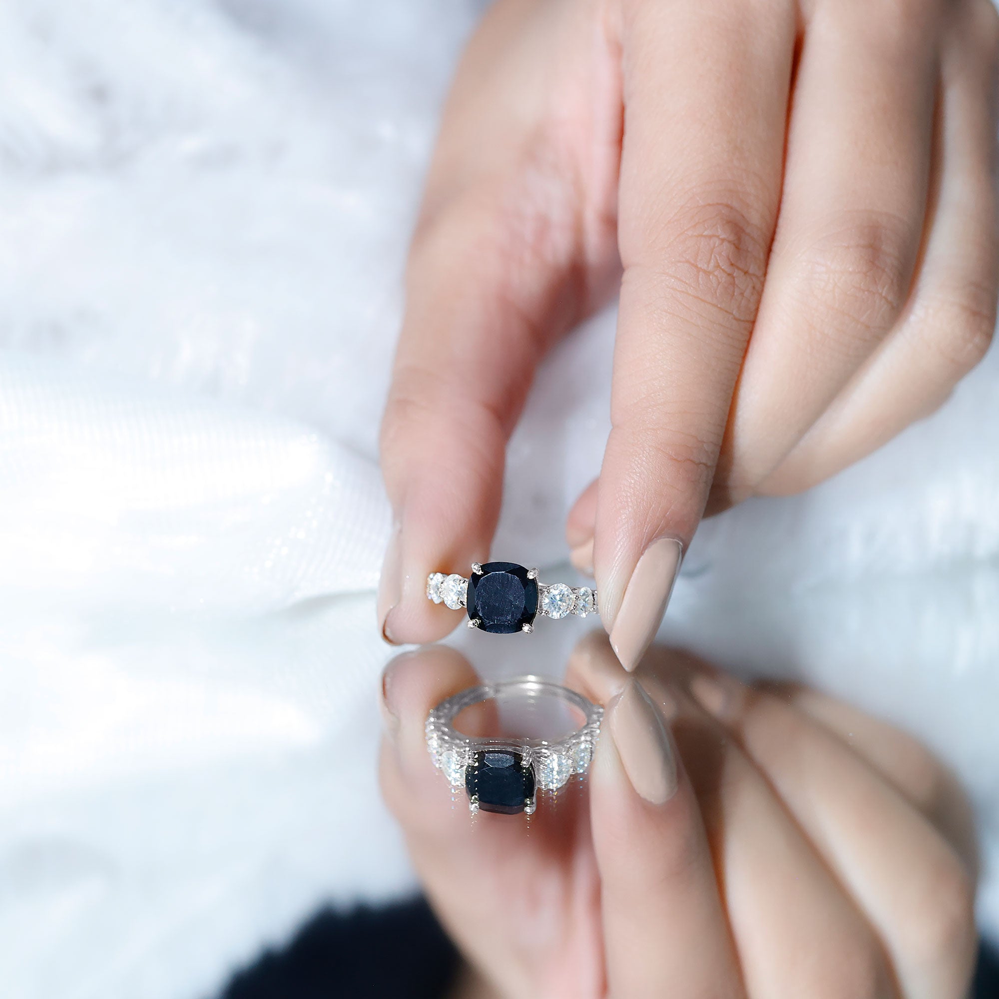 4. Three Stone lab Created Engagement Ring in Black Diamonds: These rings symbolizing past, present and future of couples relationship through three gemstones are beautiful as well as meaningful choices. These similar or different gemstones add a sentimental value, promising a shared future.