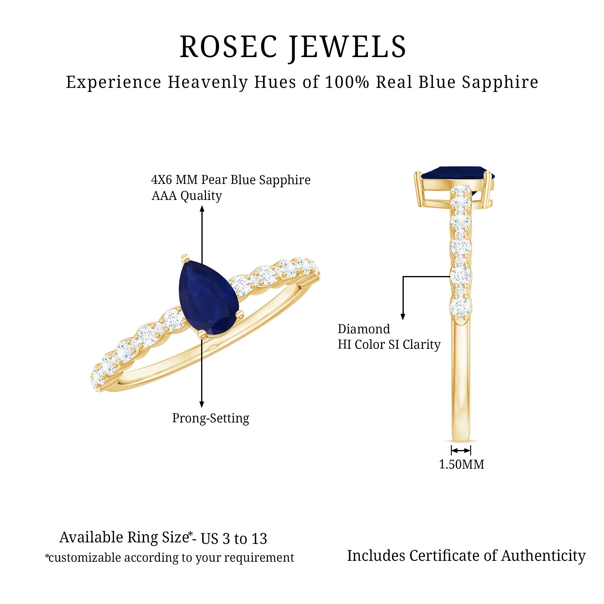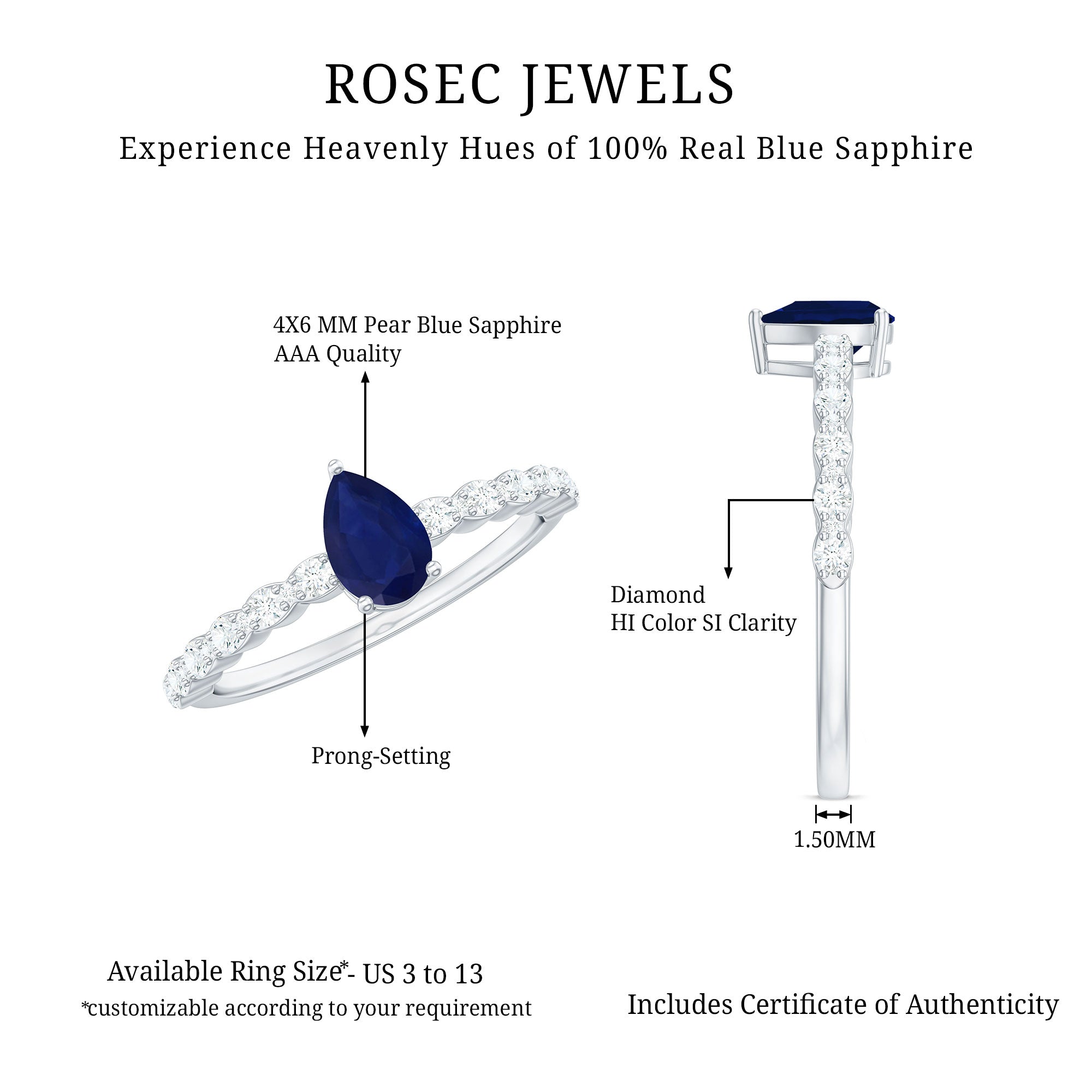 Make her truly yours when you present this Blue Sapphire Ring. It is adorned with Pear Cut Blue Sapphire in 3 Prong Setting and Diamond on Solitaire Ring. This Sapphire Solitaire Ring is a perfect present for the person born in September.