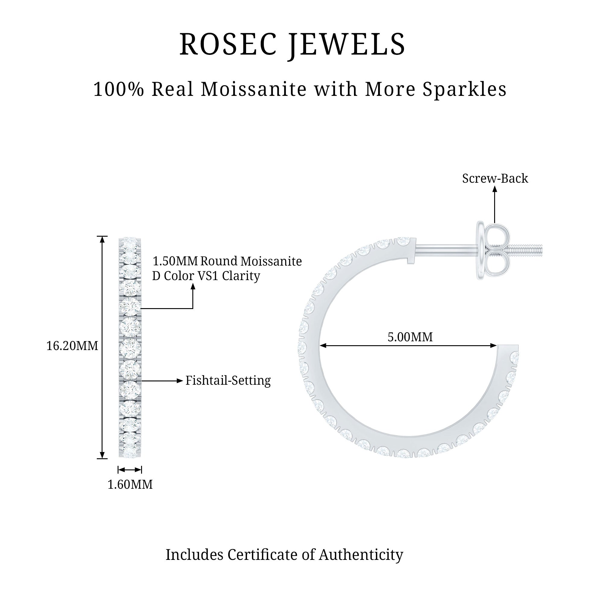 Make an unforgettable impression with these exquisite Hoop Earrings. These Gold Hoop Earrings feature shimmering Round Cut Moissanite stones in Fishtail Setting that sparkle from every angle. The earrings have a secure screw back closure, ensuring that they stay in place comfortably. These Moissanite Earrings are perfect for elevating your casual or party attire. They also make a great anniversary gift for your beloved, who will love styling them with every outfit.
