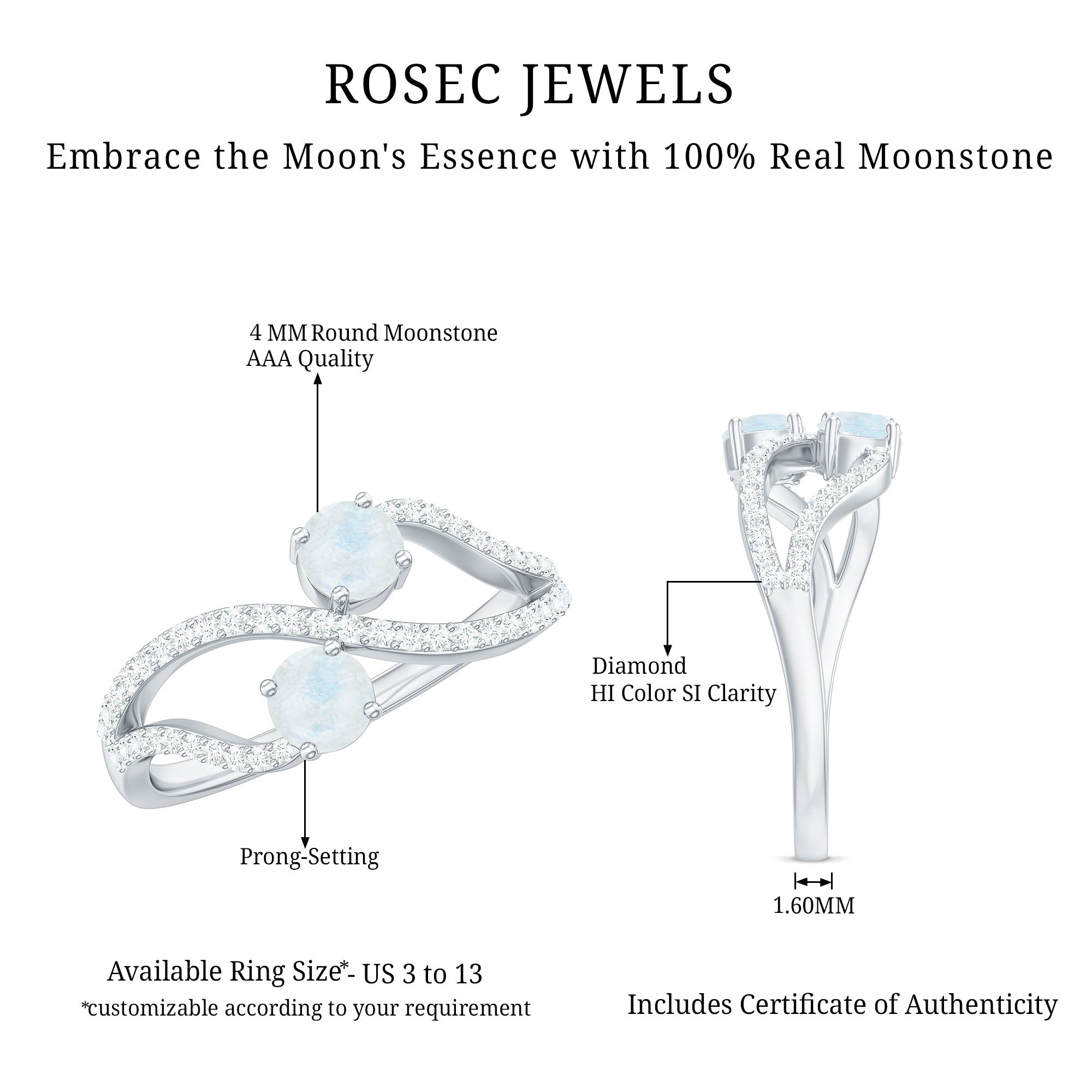 1 CT Minimal Moonstone and Diamond Engagement Ring
