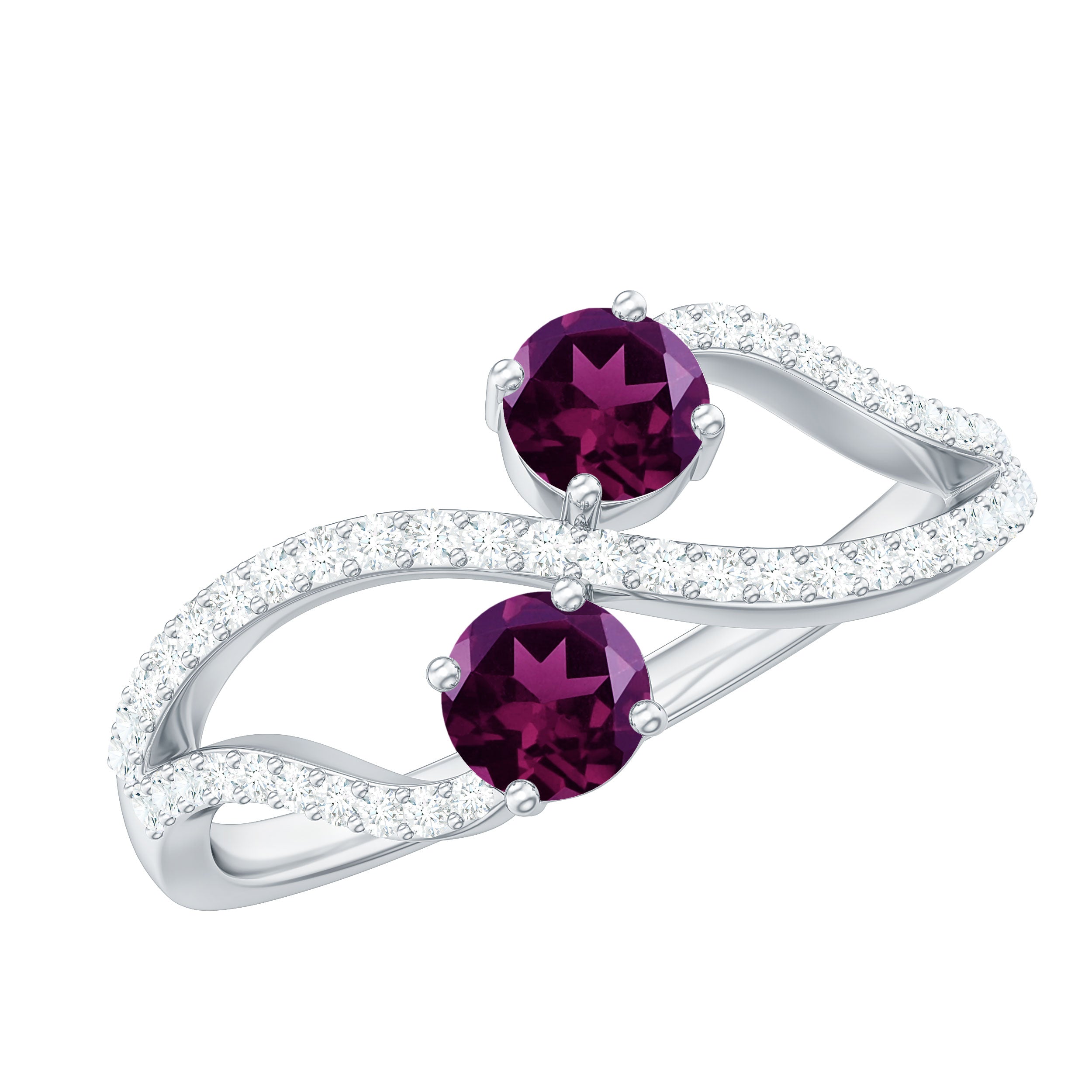 1 CT Minimal Real Rhodolite and Diamond Engagement Ring