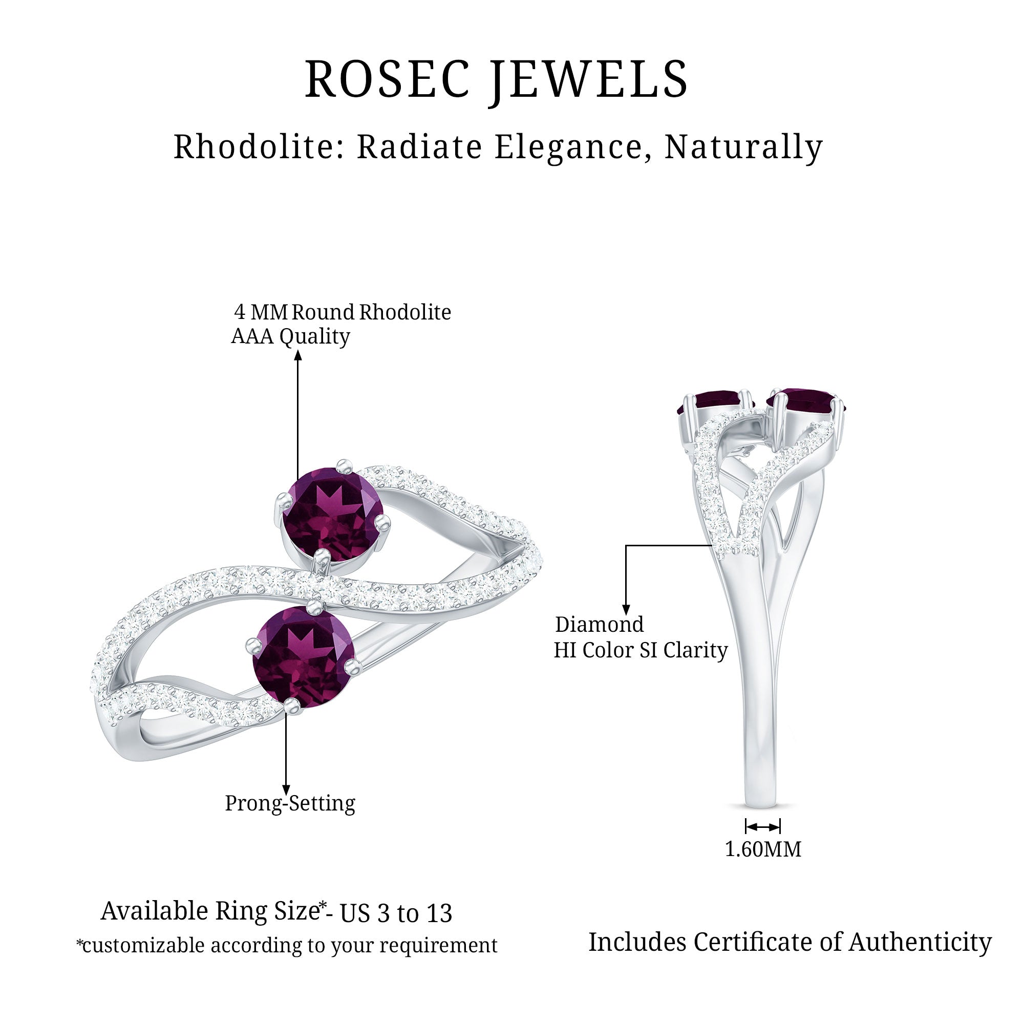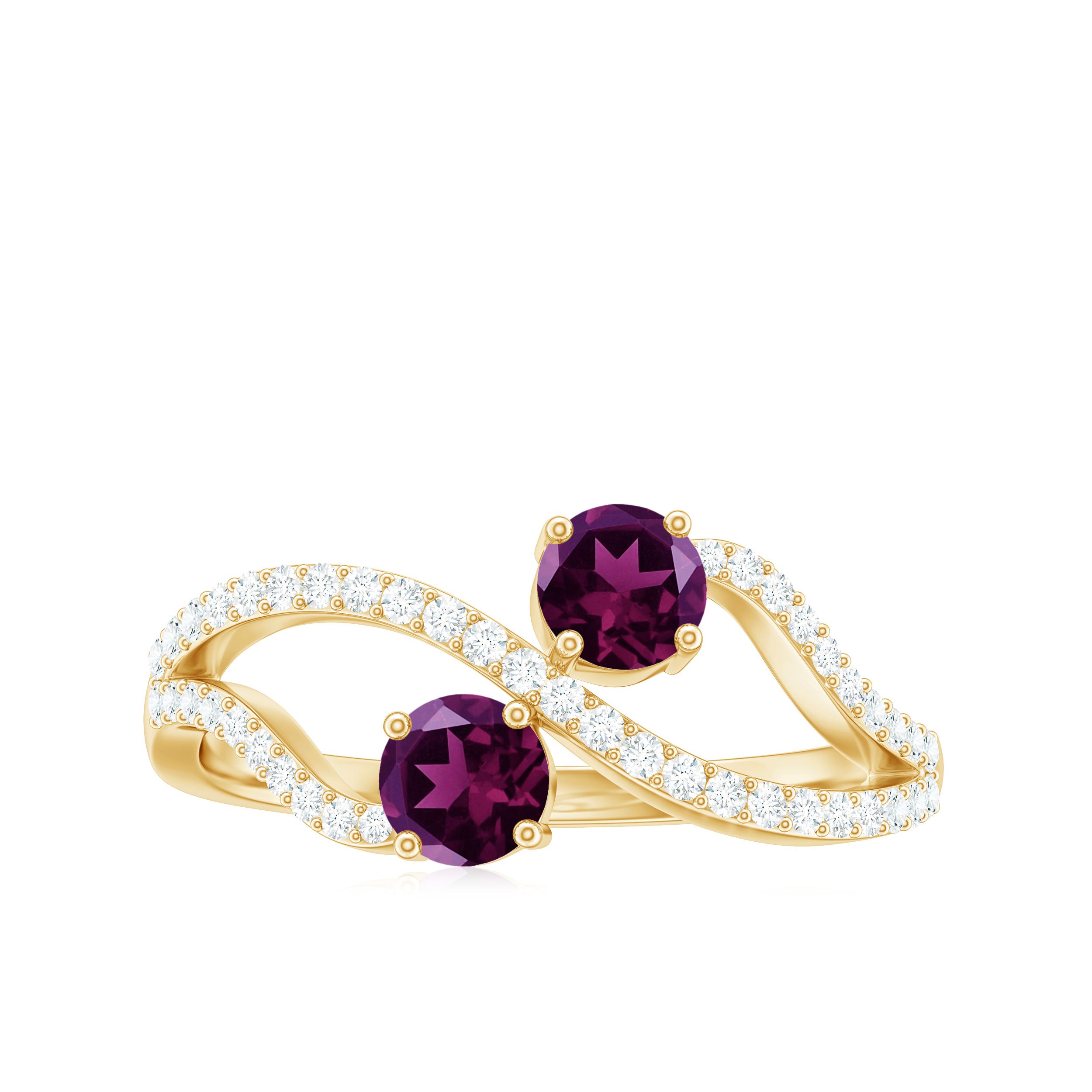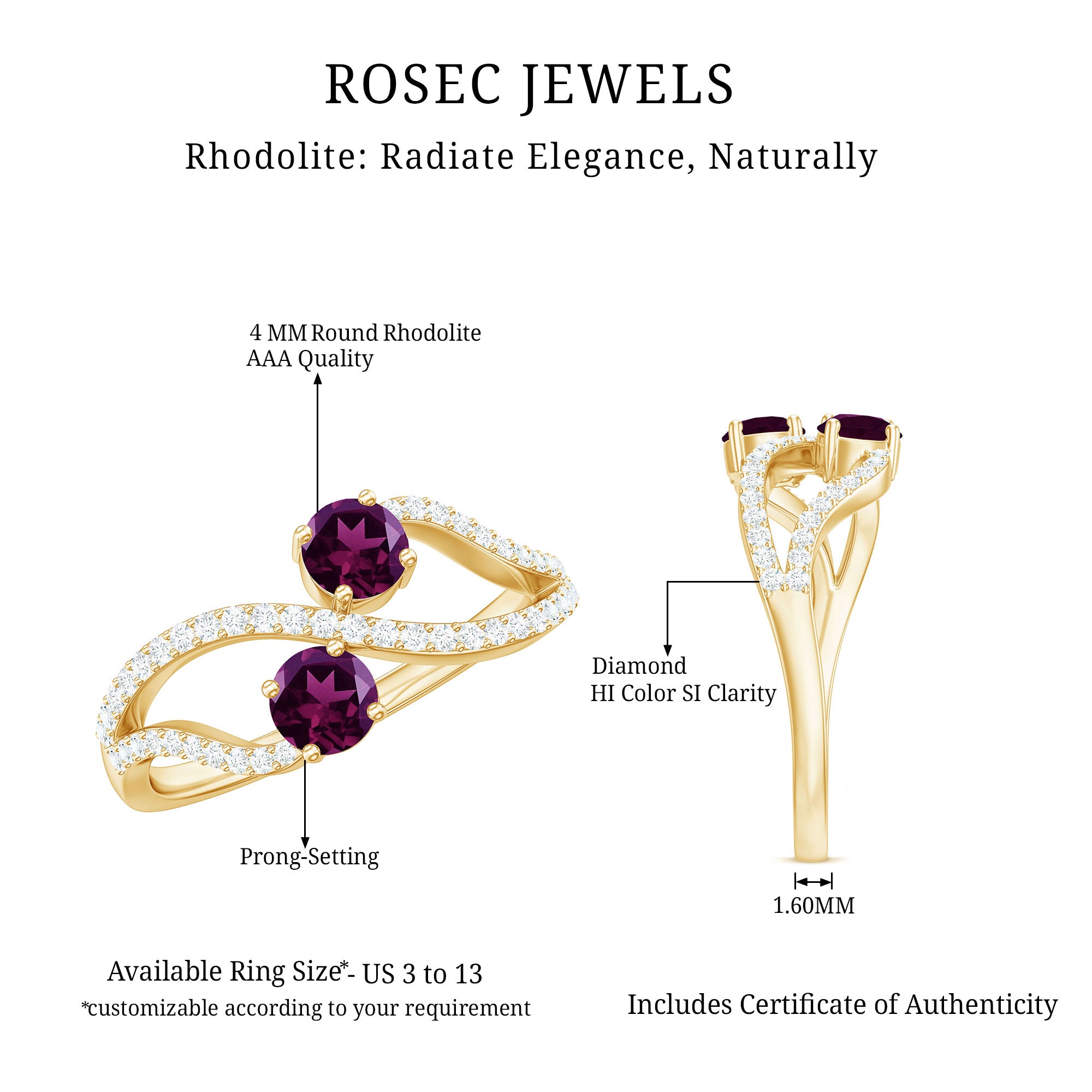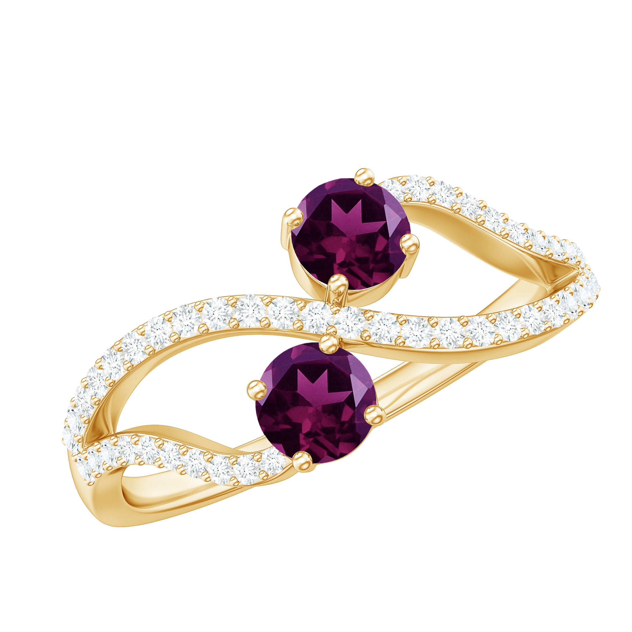 Flaunt Your Style with this Minimal Engagement Ring is crafted in solid gold which is embellished with Round Shape Rhodolite and Diamond in a prong setting. This Gold Engagement Ring is available in solid gold.